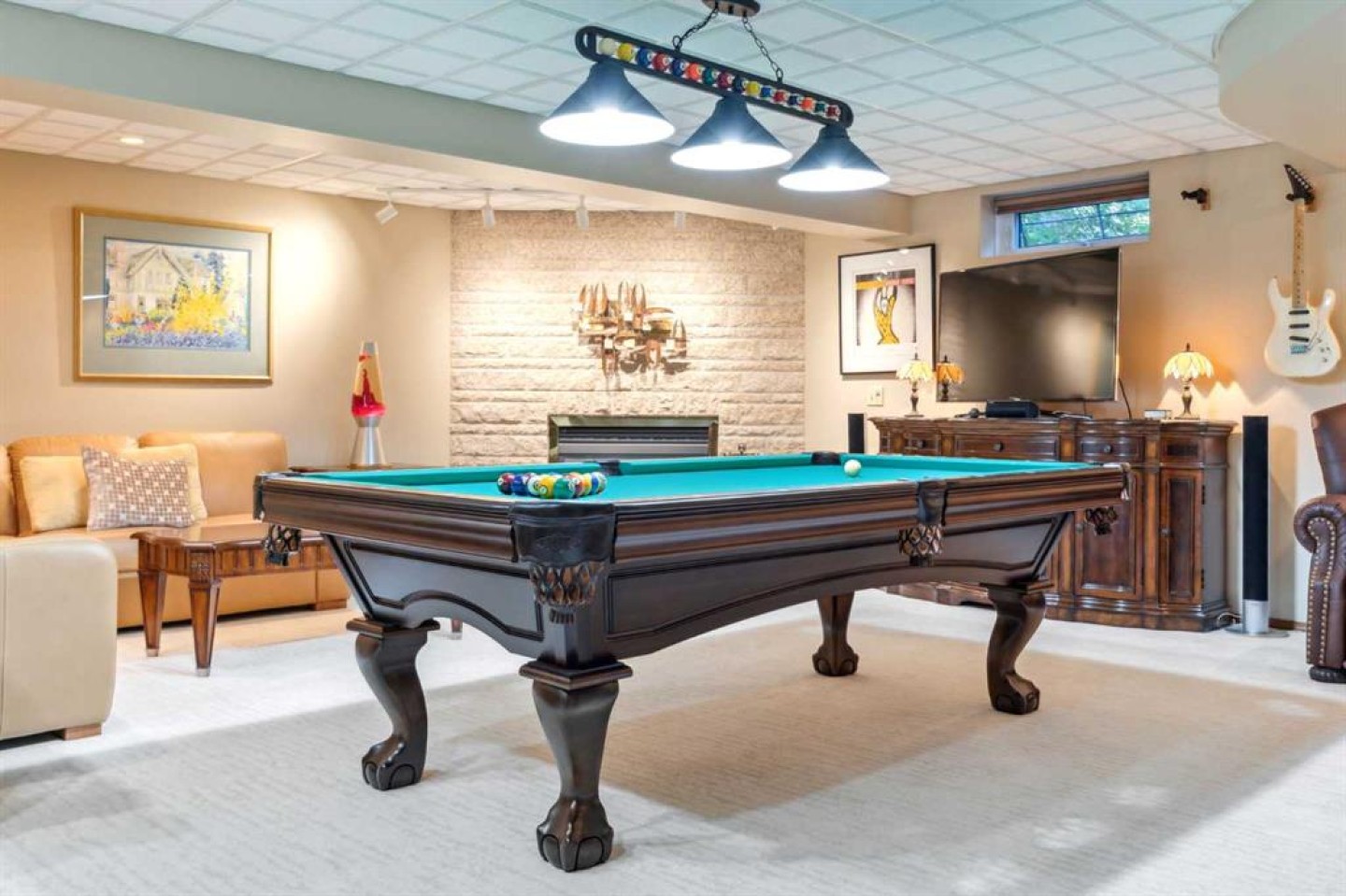 9 Shelving units in the storage in the basement, extra matching floor tiles for foyer and one of the bedroom, pool table in the basement