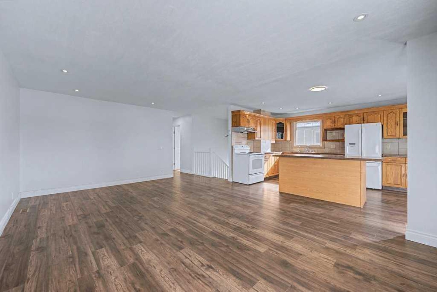 This stylish home will a total of 4 bedrooms and 2 bathrooms is sure to thrill the most discerning buyer! The open-plan concept boasts newer laminate flooring throughout main level and brand new carpet in the lower level. Newly painted throughout, so this home sparkles! The gourmet kitchen features raised panel oak cabinetry, with a central island - perfect for entertaining. Double master bedrooms adjacent to the newer 4 piece bathroom with granite counter. The front "west-facing" deck off the main living area is perfect for relaxing on warm evenings. The lower level features a wood burning fireplace, plus 2 bedrooms and a 3 piece bathroom. There is a separate laundry / kitchen area with large windows, plus a stand-up freezer and full (2nd) fridge included. **Newer windows throughout home, plus a newer roof! New furnace 10 years ago and newer hot water tank. A single oversized garage completes this wonderful property. Quiet cul-de-sac location with excellent neighbours.