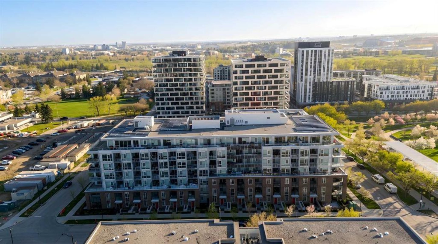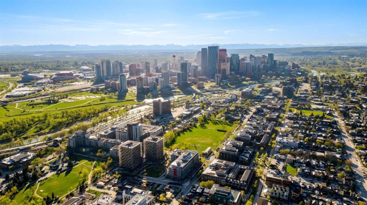 Bridgeland is defined by its rhythm, a unique pocket of Calgary where historic character sits comfortably alongside a modern, high energy main street. Life here means having Murdoch Park across the street and the Bow River pathways just a short walk away. This 2019 built residence offers a front row seat to the best of the community, with immediate proximity to local staples like Una Pizza, Village Ice Cream, and the upcoming Native Tongues Taqueria. For those looking to see the space in detail, a virtual tour is available to view online. The interior is shaped by light, efficient geometry and has central AC. Concrete construction ensures a quiet environment, while floor to ceiling windows and high ceilings create a sense of volume that belies the square footage. The kitchen is anchored by a Bosch GAS RANGE and a Fisher & Paykel refrigerator, finished with beautiful quartz countertops. The layout transitions seamlessly into the living area, where a built-in Murphy bed offers clever flexibility for guests or a home office setup. The primary suite is a private retreat, highlighted by a modern, spa inspired ensuite featuring a double vanity with quartz countertops, sleek wood cabinetry, and a glass enclosed shower with marble style tile. Beyond the unit, the building prioritizes convenience; storage is located just down the hall on the same floor, and the LEED Platinum certification reflects a high standard for air quality and energy efficiency. Residents of Radius Bridgeland by Bucci enjoy a wide range of thoughtfully designed amenities throughout the building. The 7th floor features a rooftop patio with impressive views, while the 5th floor includes storage units, and the Spin Bike Room. The 4th floor offers a dedicated yoga room, and the 2nd floor includes the convenient Spud Room for parcel deliveries. On the main floor, residents have access to a fully equipped fitness centre and a concierge. The amenities within the building act as an extension of the home, providing professional grade fitness spaces, spin and yoga studios, and a concierge service. The rooftop patio serves as a central gathering point with clear views of the downtown skyline. When it is time to commute, the Bridgeland/Memorial CTrain station is nearby, connecting you to the downtown core in minutes without the need for a car. There’s no wasted space in this wonderful open concept layout. Featuring two bedrooms and two bathrooms across approximately 693 square feet of well maintained living space, the home is filled with natural light thanks to large windows and also offers a spacious balcony. The underground parking stall is conveniently located close to the elevator lobby, and residents can enjoy added amenities including a dog wash and car wash station. This is a great opportunity to own in one of the best buildings in Bridgeland. The property is vacant and move-in ready. Book your showing today!