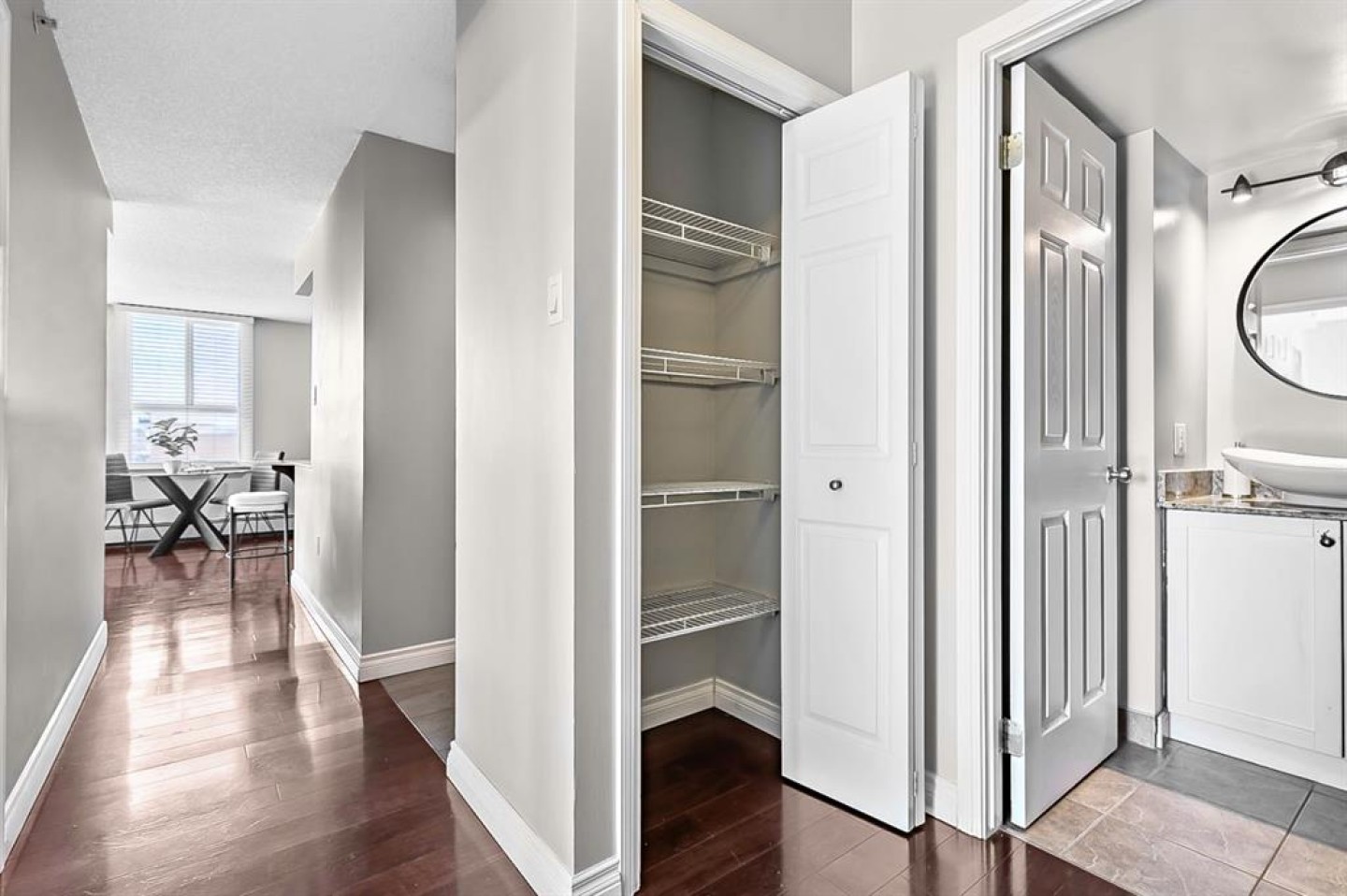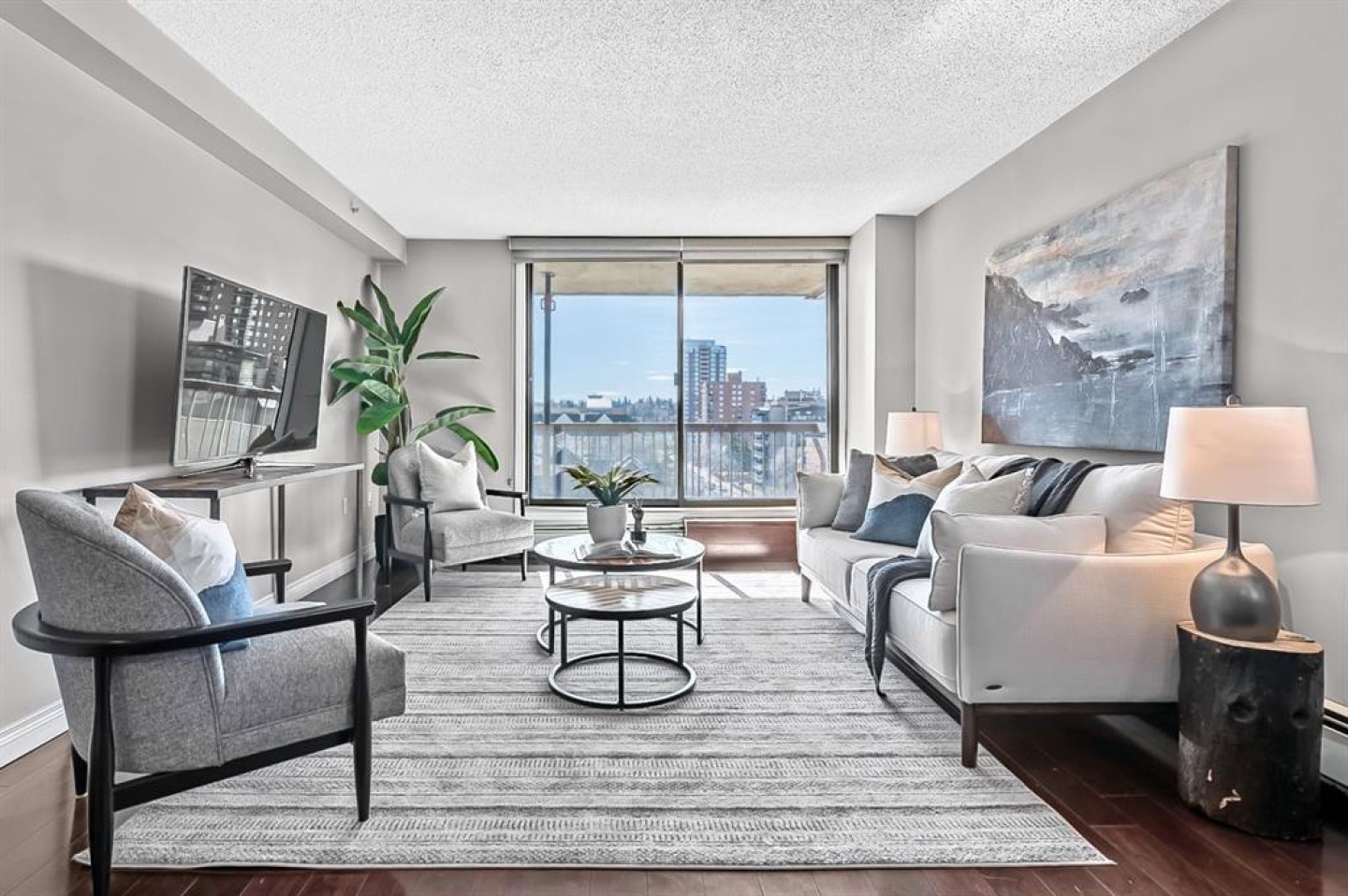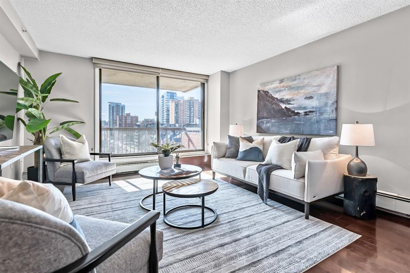 Inner city convenience meets budget friendly value at the Grosvenor House in the Beltline. This CORNER unit offers South and West exposures drawing in the natural light! As you enter this well-maintained UPDATED residence you will notice the functional layout and gleaming hardwood floors. The kitchen is a focal point with dark maple cabinets that reach to the ceiling, a tile backsplash, upgraded stainless steel appliances, gorgeous granite counter, and a cabinet pantry with pull outs for additional storage. This looks onto the dining room and a well sized living room. The expansive patio is off the living room creating a great indoor-outdoor space for entertaining. Offering over 150 sq ft of outdoor living space, and UNOBSTRUCTED VIEWS. This sun-drenched patio is ideal for BBQing, gatherings, relaxing and enjoying the outdoors. The main bath is tucked away for privacy, has stone counters, and a deep soaker tub/shower combo. There is a well sized secondary room along with a spacious primary offering plenty of room for a king-sized bed. In addition to this enjoy a large in-suite storage room with a euro washer & dryer, plenty of room for a freezer or seasonal items. This home also comes with one titled, underground heated parking stall, as well as a communal rooftop patio on the 2nd floor. This pet friendly building has new windows and a walk score of 97 along with a bike score of 98. Enjoy walking distance to the Co-op Grocery store, community foods, boutique stores, parks and playgrounds, the excellent culinary scene on 17th Ave. View the virtual tour or call to book your private showing today!