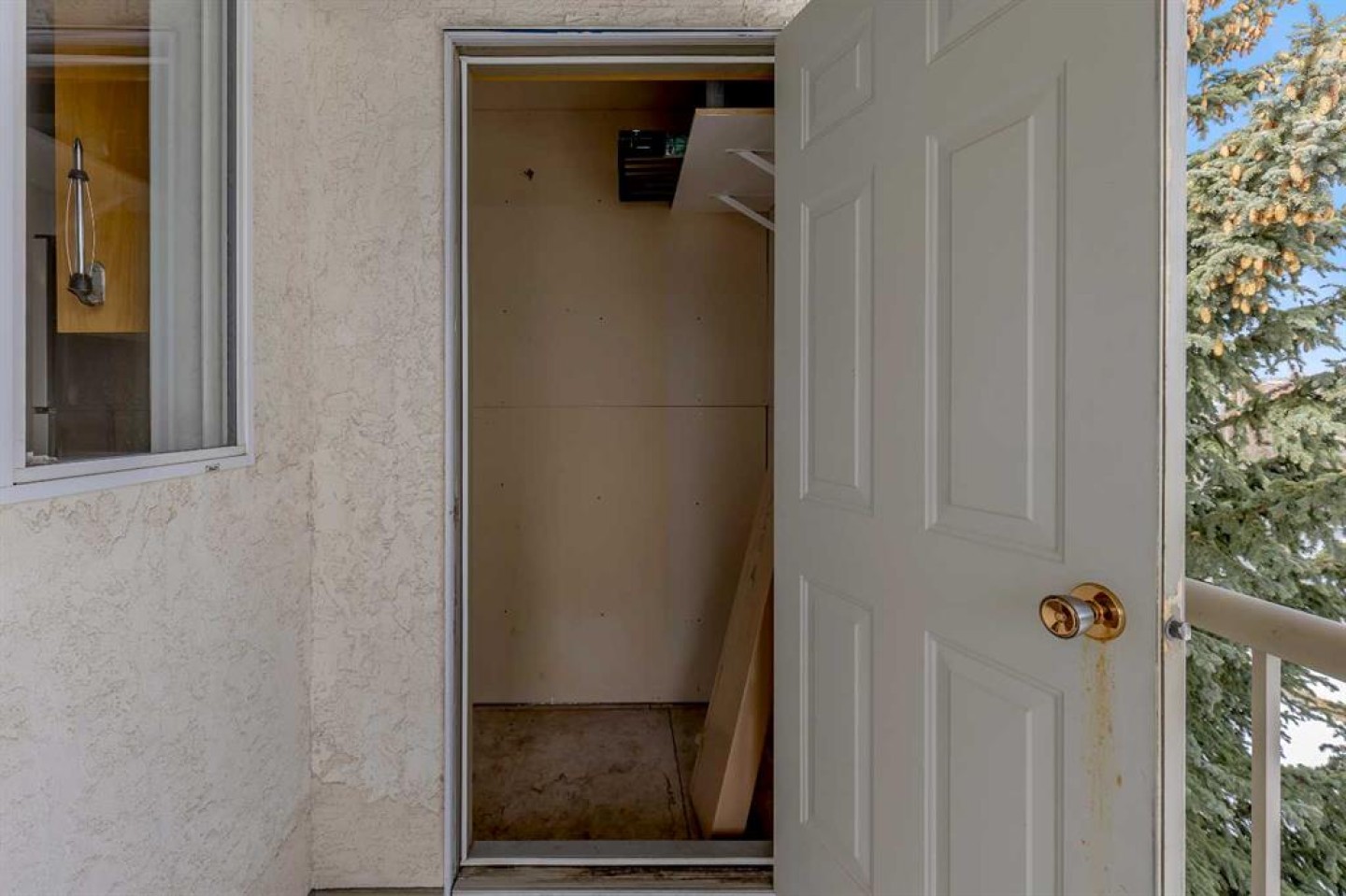 TV bracket in living room & closet in dining area