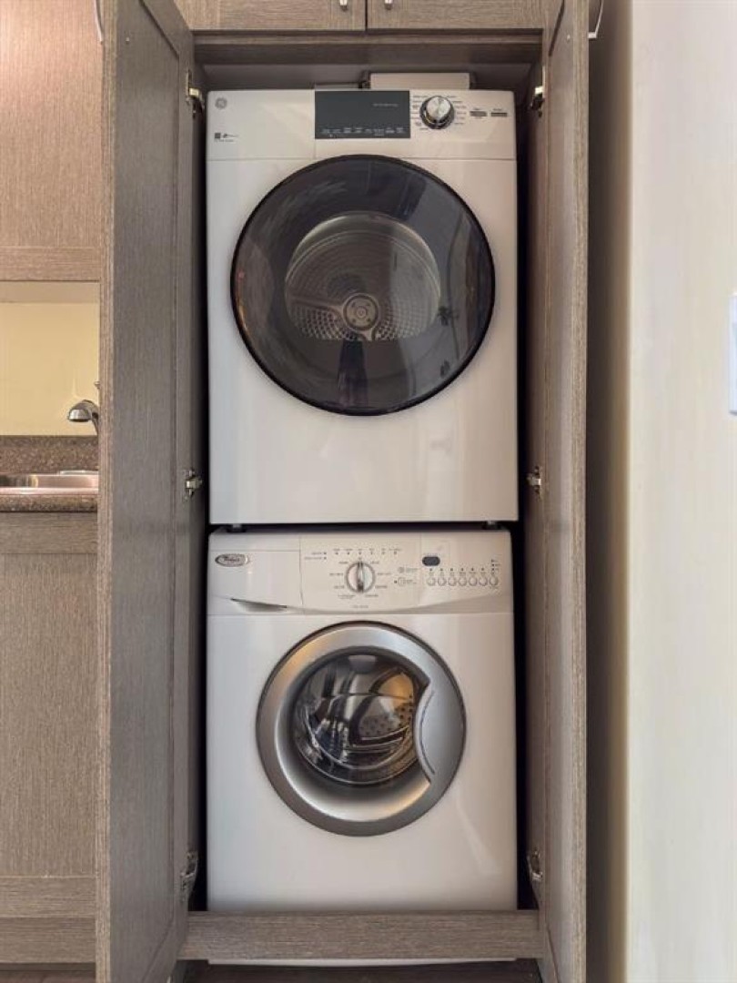 Dishwasher, Electric Stove, Microwave Hood Fan, Refrigerator, Washer/Dryer Stacked