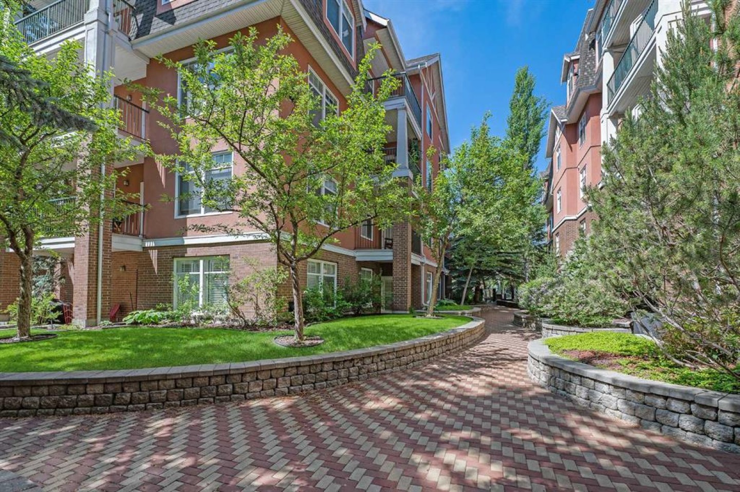 OPEN HOUSE SATURDAY, MARCH 14TH & SUNDAY, MARCH 15TH FROM 2-4 PM BOTH DAYS. Immaculate residence offering comfort, and modern updates throughout. Nine foot internal ceilings, hardwood floors, new bedroom carpet and abundant natural light from twelve windows, including one above the kitchen sink. The gourmet kitchen features granite counters, stainless steel appliances, a large walk-in pantry, ample kitchen cupboard storage. Patio doors leading out to deck from dining room overlooking the internal courtyard with gas BBQ connection. The bright living room is surrounded by windows, and a gas fireplace is open to both the dining and living spaces. The floor plan incorporates a large space suitable for an office or TV room. There is a very large in-suite storage room off the main entrance room which doubles up as a boot room. The large primary retreat comfortably fits a king bed and offers a private balcony overlooking the courtyard, a spacious California built-in walk-through closet, and a five-piece ensuite. The second bedroom comfortably fits a queen bed and also features a California built-in walk-through closet and has direct access to the main bath, which serves both the bedroom and guests. A very large entry with a double closet, a separate laundry room, and central vacuum with attachments complete the layout. Pets are welcome (dogs must not exceed 30 lbs at full adult size) and air conditioning can be installed, both with board approval. Underground heated parking, an underground secure storage locker, bike storage for just $10 per year (subject to availability), and 35 underground visitor stalls. Additional building amenities include a billiards room, library, and meeting rooms. West-facing orientation, abundant natural light, and exceptional amenities. This residence is ideally situated in Erlton, one of Calgary’s most walkable inner-city communities. Enjoy easy access to 4th Street’s shops and restaurants, the Erlton Stampede C-Train station and the BMO center and all its activities, and the MNP (Repsol) Recreation Centre with pools and fitness facilities.