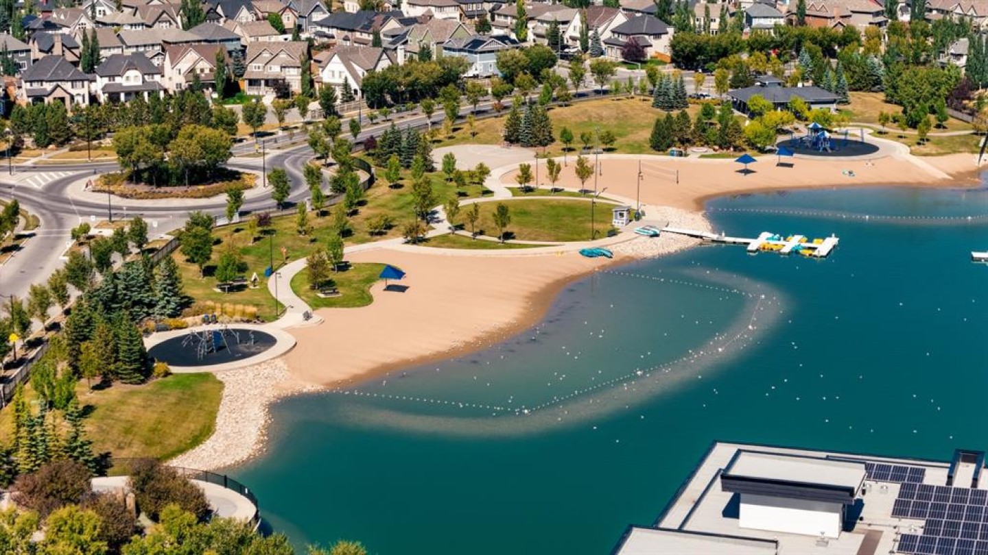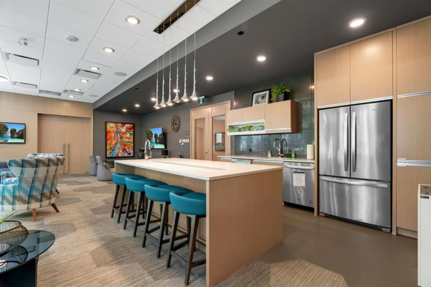 Welcome to Calligraphy with resort style living at Westman Village on Mahogany Lake. This fabulous corner unit has two bedrooms, 2 full bathrooms and two parking stalls, one with private storage. The former show suite updates add character in this well-appointed unit. The living/dining room combination has west facing windows to allow the sun to shine in. The kitchen features sliding drawers and a breakfast bar with built-in storage. The primary bedroom accommodates a king-sized bed with room for a dresser, and it has two closets and a 3-piece ensuite with a walk-in shower. The second bedroom is located at the other end of the unit and is great space for an additional sleeping, office, den or craft room and has a walk-in closet for additional storage. There is a 4-piece main bathroom adjacent to the second bedroom. Sliding doors off the dining room lead to a wrap-around, west-facing balcony overlooking the courtyard with a water feature. The unit has additional storage with a pantry and a laundry area. This unit also has two underground titled parking stalls; one has a private storage room. Now let’s talk about the 40,000SF Village Centre and its many amenities, it is a must see, ask the concierge for your tour. In the amenity center, you will be able to enjoy the lane pool, activity pool, hot tub, steam room, exercise room, full gymnasium, theatre, industrial kitchen, virtual golf, party room, billiards and darts, craft room, woodworking shop, library, green thumb room, walking track, wine room, fire pit, playground, car wash, dog wash and there are electric vehicle charging stations. Also located in the complex are your favourite retailers, award winning Chairman’s Steakhouse and Alvin’s Jazz Club, more restaurants, amenities. A 5-minute walk to Sobeys and more shops. The complex is located on Mahogany Lake with its unique pathways. You will be able to enjoy the Mahogany Beach Club and all it has to offer. Call today and come view this fabulous unit…. don’t just move to a condo, move to a lifestyle! Welcome Home!