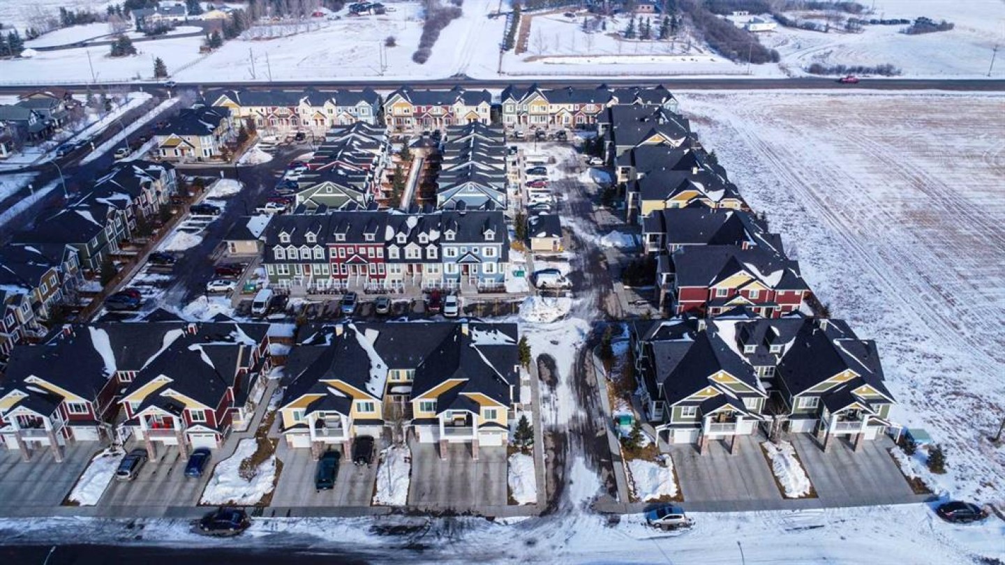 Welcome to this beautifully designed 2-bedroom, 1-bathroom townhouse in the sought-after Zen of Ravenswood complex in the vibrant city of Airdrie. From the moment you step inside, you’ll appreciate the bright and airy open-concept main living area, highlighted by soaring vaulted ceilings and a stunning wall of south-facing windows that flood the space with natural light. The seamless flow between the kitchen, dining, and living areas creates the perfect setting for both everyday living and entertaining. Step out onto your private south-facing balcony an ideal spot to enjoy your morning coffee, soak up the sun, or unwind at the end of the day. The thoughtfully designed layout offers two well-proportioned bedrooms and a full bathroom, providing comfortable space for first-time buyers, downsizers, or investors. The attached single- car garage adds everyday convenience, extra storage, and protection from the elements year- round. Located in the family-friendly community of Ravenswood, you’ll enjoy nearby parks, schools, walking paths, and quick access to shopping and major commuter routes. Stylish, functional, and filled with natural light this is low-maintenance living at its best.