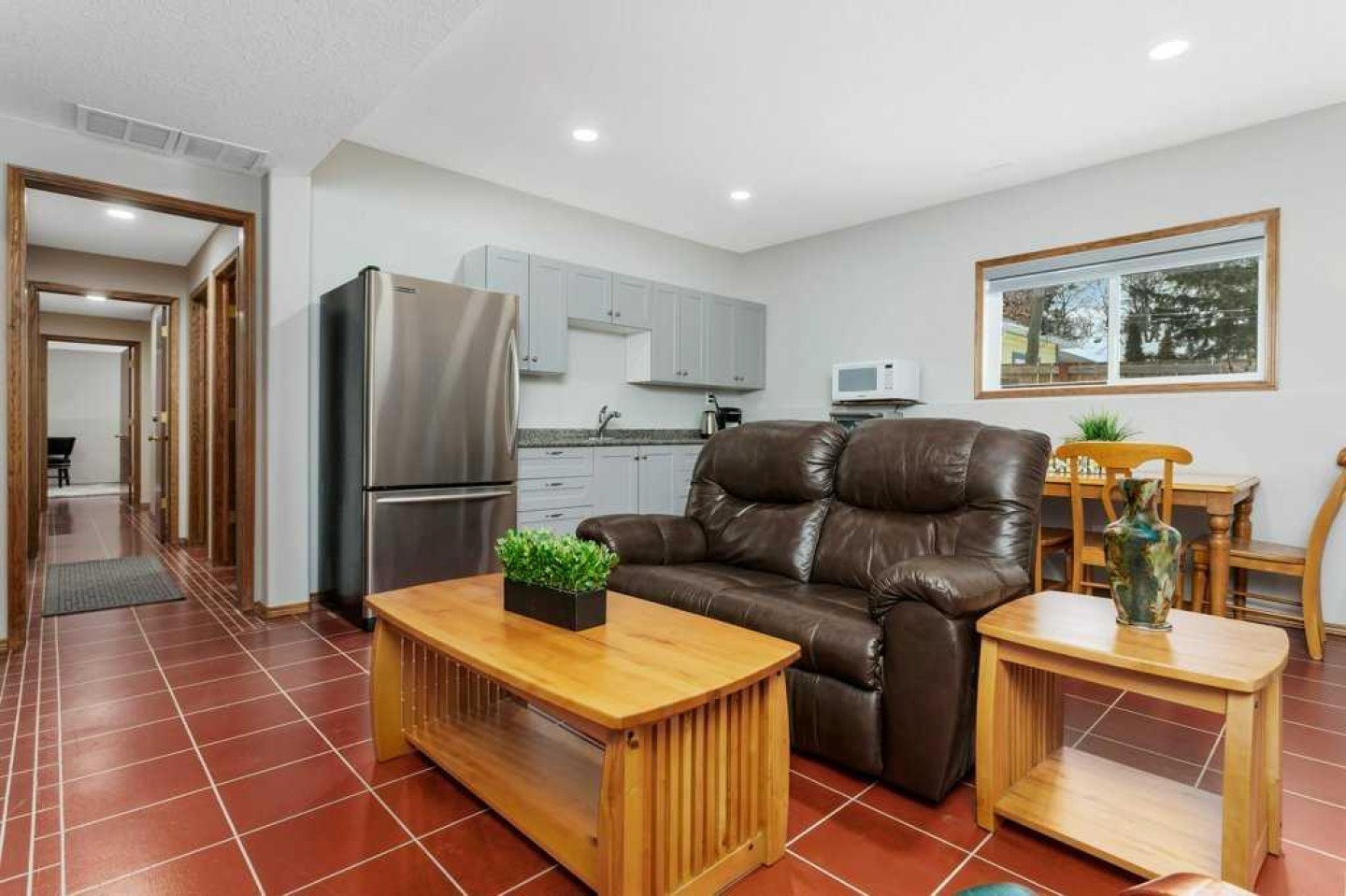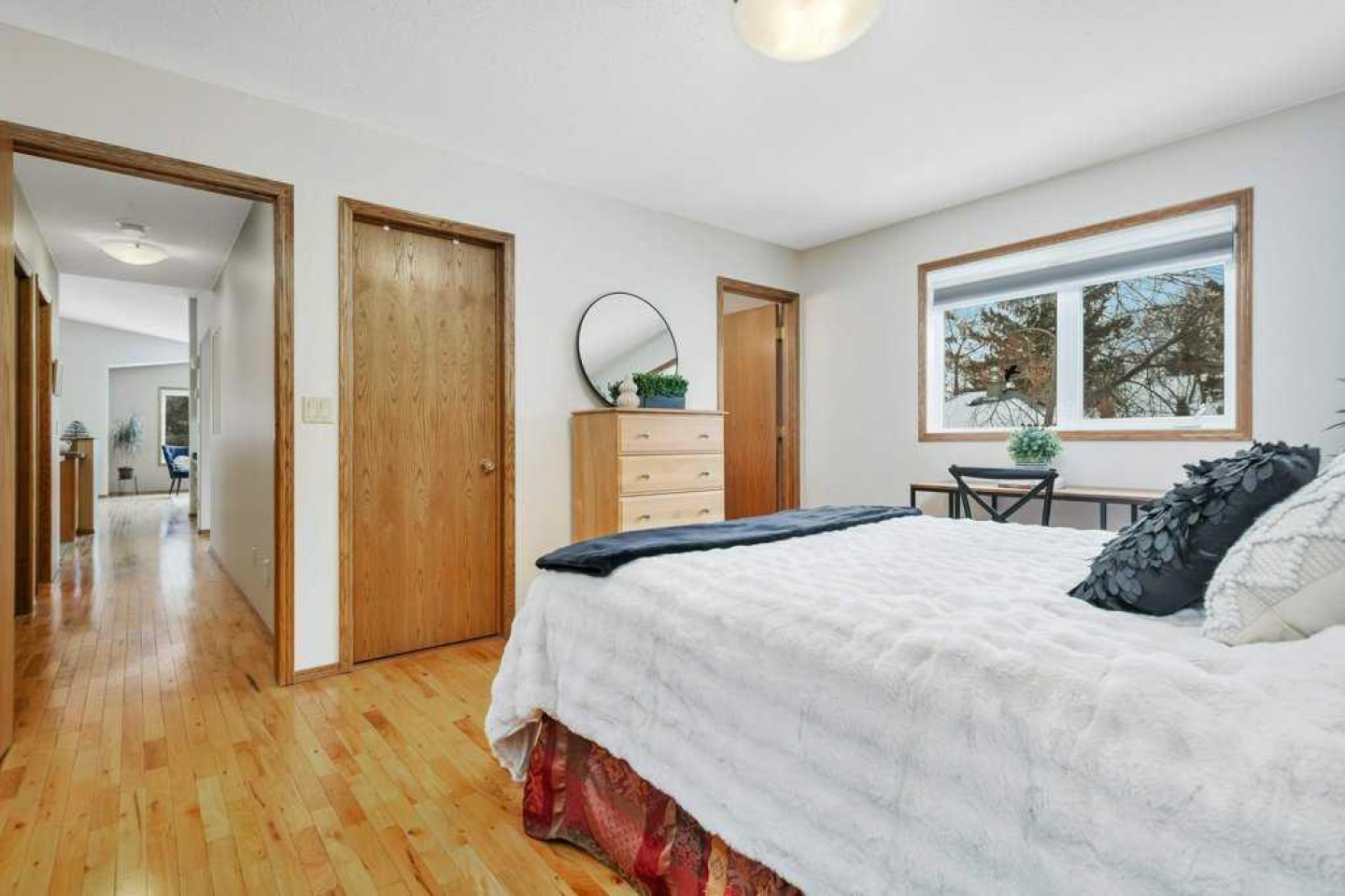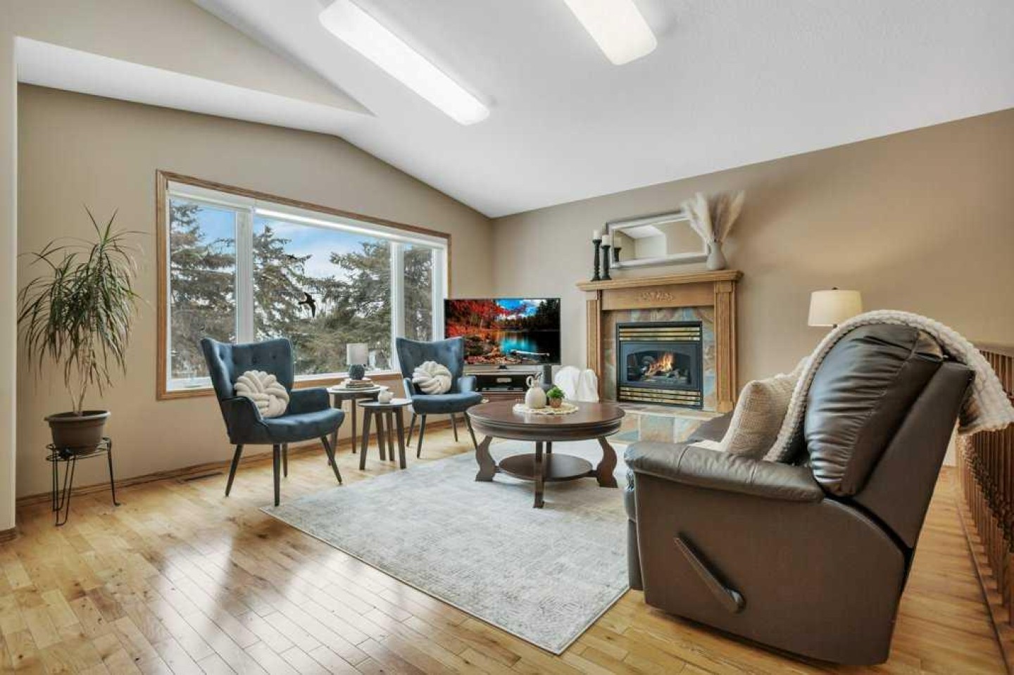 ** Open House Sat March 7, 2-4pm - Perfect for Downsizers! ** REAR ATTACHED GARAGE | MAIN FLOOR LAUNDRY | NEW KITCHENETTE FOR GUESTS ~ This beautifully developed home offers comfortable main floor living with the primary bedroom, den, laundry, and a bright vaulted living room featuring a cozy gas fireplace. The fully finished basement provides excellent additional space for visiting family, hobbies, or extended stays. ~ Curb appeal shines with mature landscaping and a covered front entry welcoming you inside. The main floor has been freshly painted, giving the home a bright, refreshed feel. Hardwood flooring, vaulted ceilings, and large windows create an airy feel throughout the main level. The dining room opens onto a covered front deck overlooking the tree-lined street. ~ The kitchen features rich oak cabinetry, a walk-in corner pantry, stainless appliances, a large island, and a skylight for added natural light. A den just off the kitchen (with a closet) works well as a home office or could easily convert to a fourth bedroom. ~ The spacious primary bedroom includes a walk-in closet with built-ins and a private 3-piece ensuite with walk-in shower. The main floor bathrooms have been refreshed with new toilets, and the 4-piece bath also offers an oversized vanity and jetted tub. Main floor laundry is conveniently located off the mudroom with direct access to the rear attached garage. ~ The fully finished basement features large windows, in-floor heat, two additional bedrooms (one with an attached den), a family room, 4-piece bath, and a new kitchenette—perfect for extended family, guests, or hobby space. ~ Outside, enjoy a mature yet manageable backyard with perennials, shrubs, trees, a stone patio, and a storage shed. An extra-wide driveway provides additional off-street parking. ~ Located just steps to parks, walking trails, the Recreation Centre, and other amenities, this home offers comfortable living in one of Red Deer’s most walkable and historic neighbourhoods.