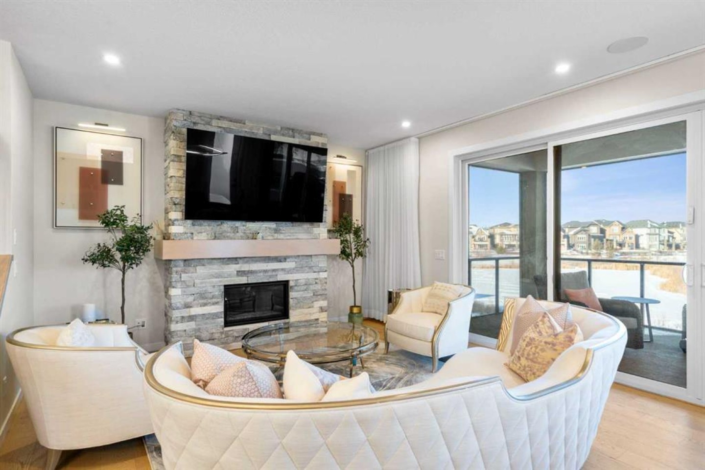 Experience an exceptional standard of living in this architecturally refined 2,973 sq. ft. executive residence. Perfectly positioned on a fully landscaped walkout lot backing directly onto a tranquil pond, the community pathway system, and a natural reserve, this home offers a serene setting with effortless access to the Bow River escarpment. Thoughtfully designed and executed without compromise by Baywest Homes the home delivers a rare blend of luxury, versatility, and income potential. From the moment you arive, the quality is immediately evident. Premium wide-plank engineered hardwood flooring spans both the main and upper levels, complemented by 9-foot ceilings and 8-foot doors throughout. The result is a cohesive, light-filled interior that feels both refined and expansive. The main floor is an entertainer’s showcase, anchored by a professional-grade kitchen and complemented by a private office and elegant powder room. Culinary highlights include a full-size double-door refrigerator and freezer, gas range with hood fan, built-in microwave, bar fridge, and LG dishwasher. A Kinetico K5 reverse-osmosis drinking water system feeds directly into the refrigerator dispenser, ensuring pure, filtered water at all times. Expansive windows flood the space with natural light while framing uninterrupted pond views. Step outside to the signature all-season Dura Deck, designed for year-round enjoyment. Glass railings preserve the view, while a sheltered breeze-in area with remote-controlled screens, two oversized infrared heating panels, and remote blinds creates a seamless indoor-outdoor living experience. Even functional elements have been thoughtfully addressed, with a custom outdoor metal storage enclosure discreetly housing waste bins to maintain the home’s clean, polished exterior aesthetic. The upper level is perfectly suited for modern family living. The expansive primary suite offers a true retreat, complete with a spa-inspired ensuite and oversized walk-in closet. Secondary bedrooms are equally impressive, including a rare junior suite with private ensuite and an exceptionally large third bedroom—ideal as a premium children’s retreat or flexible living space. A convenient upper-level LG laundry pair completes the floor. The professionally developed walkout basement functions as a fully self-contained legal suite, offering outstanding flexibility for extended family, executive guests, or a high-performing Airbnb. Featuring a private aggregate stone entrance, two bedrooms, a four-piece bathroom, comfortable sitting area with television, kitchenette (microwave, hot plate, fridge/freezer), stacked washer and dryer, and access to a large private patio, this space delivers privacy, comfort, and exceptional utility. Located just steps from the Bow River pathway system and surrounded by nature, yet only minutes from premier schools, shopping, and major commuter routes, this residence offers executive living without compromise. This is not simply a home—it is a lifestyle
