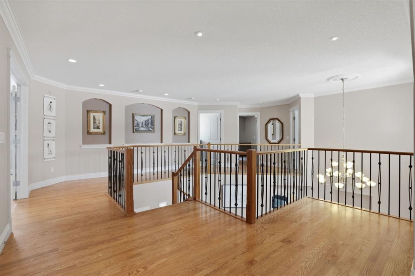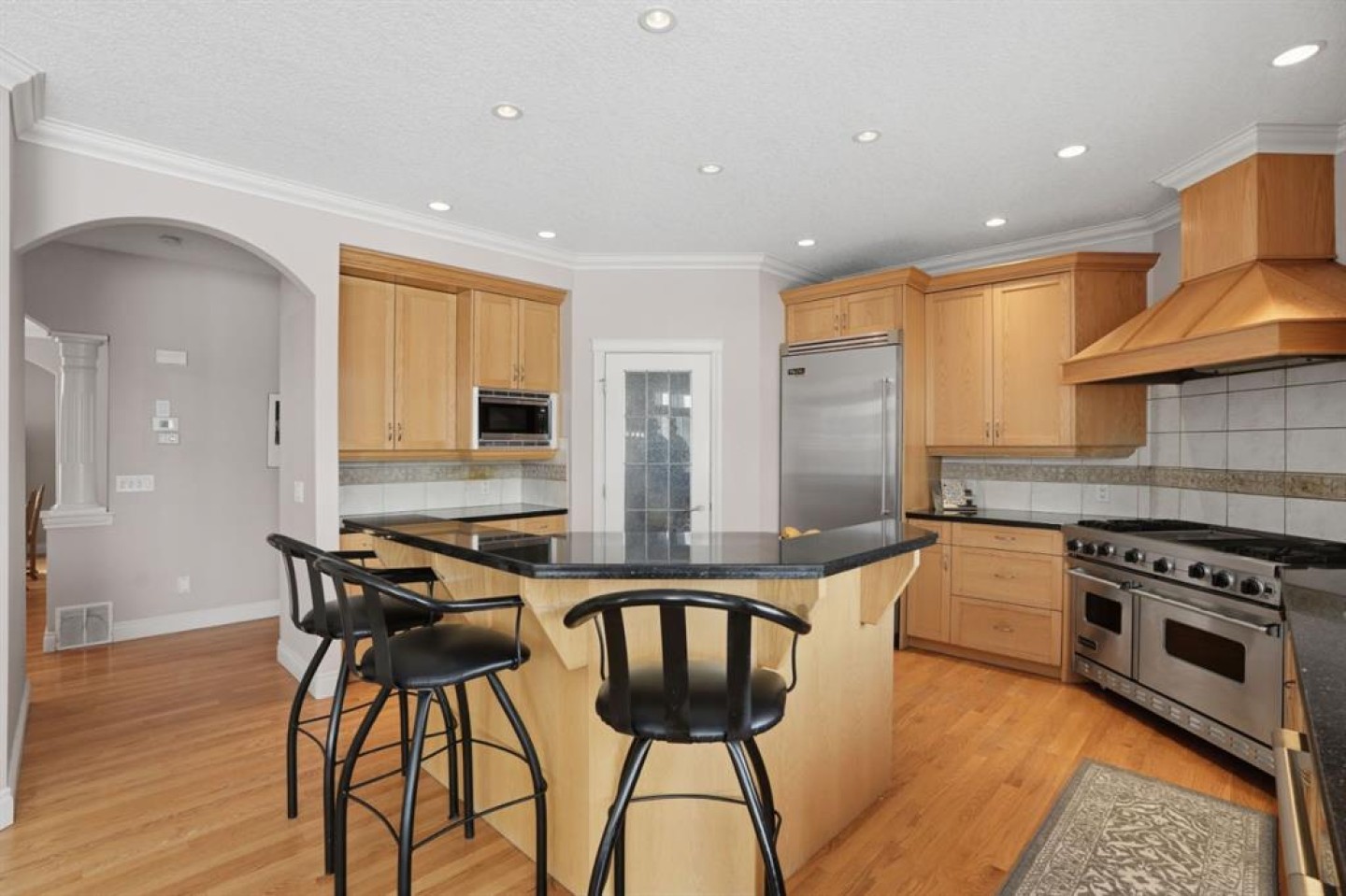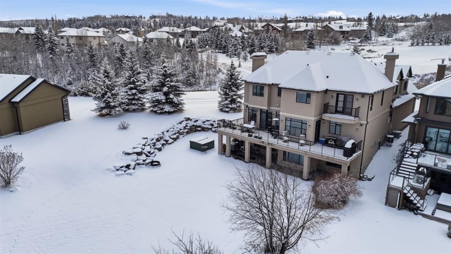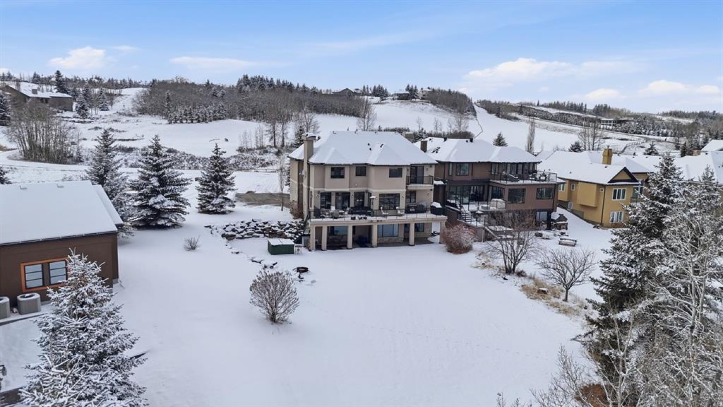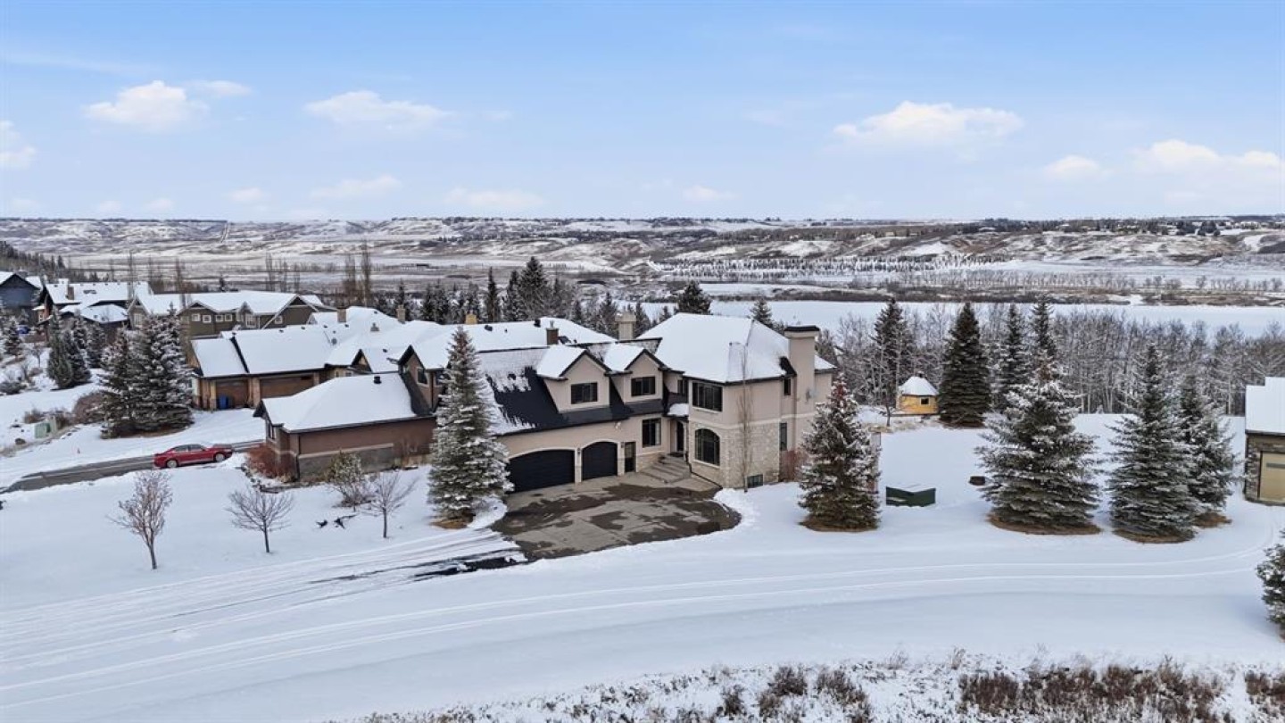 Welcome to 327 Rodeo Ridge in the prestigious golf course community of Springbank Links. This spectacular 7-bedroom estate home is nestled on a stunning private, treed lot, offering the rare combination of acreage-style privacy with significantly less upkeep, just minutes from Calgary. Thoughtfully designed across three fully finished levels, this exceptional home offers expansive and refined living space ideal for growing families and multi-generational living. The bright open-concept layout showcases rich hardwood flooring, elegant wrought iron railings, two gas fireplaces with stately mantles, and an abundance of natural light throughout. At the heart of the home is a beautifully situated gourmet kitchen featuring granite countertops, warm wood cabinetry, upgraded stainless steel appliances, and numerous built-ins. A convenient walk-through pantry connects seamlessly to the main living areas, while the bright breakfast nook overlooks the peaceful, private backyard. Entertain effortlessly in the formal dining room, gather in the inviting living spaces, or host guests at the main-floor wet bar. A main floor den provides the perfect setting for a private home office. Upstairs, the home offers four spacious bedrooms, including a luxurious primary retreat complete with a spa-inspired 4-piece ensuite featuring a jetted tub. Dual laundry areas on the upper and lower levels provide added everyday convenience. The fully developed walkout basement further enhances the home’s versatility, featuring a complete mother-in-law suite (illegal), two additional bedrooms, and generous living space—perfect for extended family, guests, or independent living arrangements. Additional highlights include a heated triple-car garage, quality craftsmanship throughout, and a mature, beautifully treed setting that offers exceptional privacy, fully landscaped with Hot Tub and Fire pit. Located in the highly sought-after Springbank Links community, residents enjoy championship golf, a pickleball court, year-round dining, and winter trail networks for walking, jogging, and cross-country skiing, all within the neighborhood. Families will appreciate the close proximity to Springbank Schools (K–12) with bus service available. Springbank High School was ranked in the top 5% of Alberta high schools by the Fraser Institute in 2024, making this an outstanding location for families focused on academic and athletic excellence. Just minutes away, Bingham Crossing offers convenient shopping, dining, and everyday services, while downtown Calgary remains an easy commute, allowing you to enjoy peaceful estate living without sacrificing city accessibility. Utilities and services include Emerald Bay Water Co-op, and the Rodeo Ridge Condo Association ($250/year) covers garbage and recycling services. This is a rare opportunity to own an elegant estate home in one of Springbank’s most prestigious golf course communities—where privacy, lifestyle, and convenience come together beautifully.