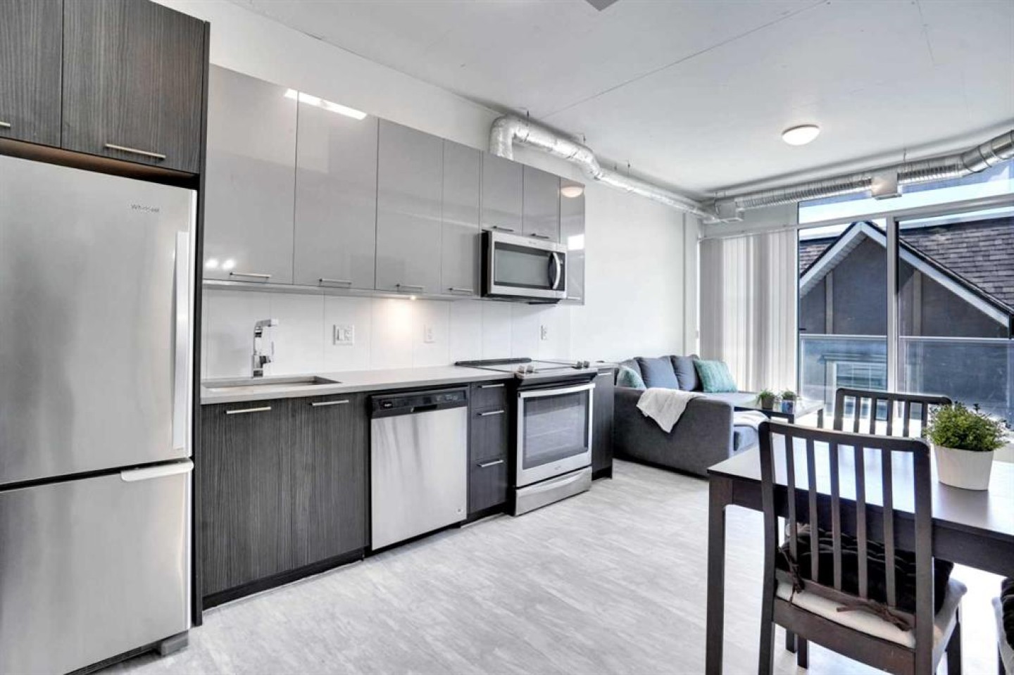 Ever dreamed of living just minutes away from the downtown, in a 1 bedroom (not studio) apartment, in trendy East Village, with the civic heart of the city, City Hall, only 1500 sq ft away, and the Bow River under 1000 ft, and be witness to the transformation of the Stampede grounds into Calgary's foremost entertainment district? Welcome HOME. The INK has been crafted to offer amazing experiences. The kitchen, the heart of any home, will be host to your culinary creations and features quartz kitchen countertops, undermount sink, stainless steel appliances, space-saving over-the-range microwave, easy-to-clean glass top oven. The kitchen / dining and living room all form 1 larger open living space, perfect for either individuals, couples, entertaining or an AirBnb. You'll appreciate the insuite laundry (stacked) and the 4 piece ensuite. The generous balcony allows you to relax outside after a long day, or go up to the rooftop patio. Calgary has an extensive bike network that INK was designed to utilize, including bike storage and bike maintenance. In the same room, there is a pet grooming station. Low condo fees help ensure the affordability. Evenings and weekends, your entertainment options are unlimited with Cowboys Casino and the Stampede grounds on your doorstep. This condo could make an amazing long or shorter term (believe 31 day min) and we can include bed, table, couch, and TV to make it easy. Between the affordable price, the amazing location for both work and play, rental potential, the full laundry, there is LOT to impress. Call today for your private viewing.