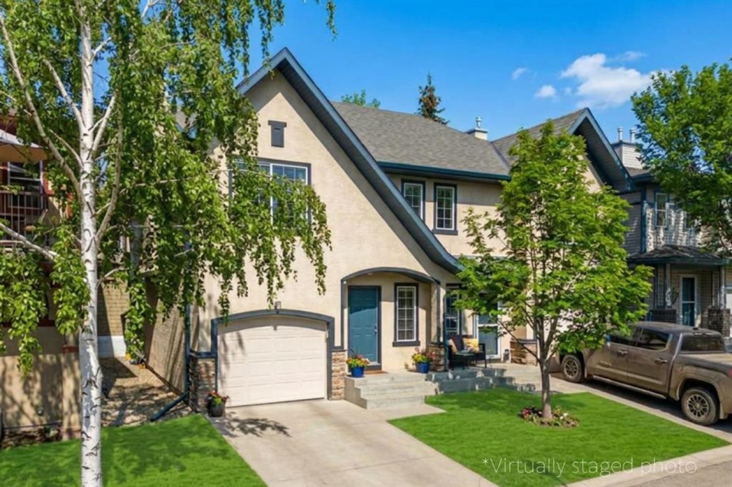 Some homes simply feel right the moment you walk in, and this beautifully maintained duplex in Hidden Valley is one of them. Tucked into a quiet complex in Hidden Valley, this bright and welcoming home offers a layout that works beautifully for everyday living. The moment you step inside, the updated hardwood flooring across the main level creates a warm, polished feel that immediately sets the tone for the rest of the home. The kitchen is where this home truly stands out. Unlike many units in the complex, this home features an extended peninsula that adds valuable counter space and extra storage, making meal prep, entertaining, and busy mornings far more functional. The kitchen flows easily into the dining area, where patio doors open to the deck and yard - perfect for summer evenings outside or enjoying your morning coffee. The living room is bright and inviting, anchored by a cozy corner fireplace that makes the space feel comfortable year-round. Upstairs you’ll find three well-sized bedrooms, including a spacious primary retreat with a walk-in closet and private ensuite. A versatile loft area provides the perfect space for a home office, study area, or reading nook. The unfinished basement offers excellent potential for future development, while the attached single car garage adds everyday convenience. This home has been exceptionally well cared for and is in fantastic move-in-ready condition, allowing the next owner to simply unpack and start enjoying it. Book your showing and come see why this one stands out from the rest.