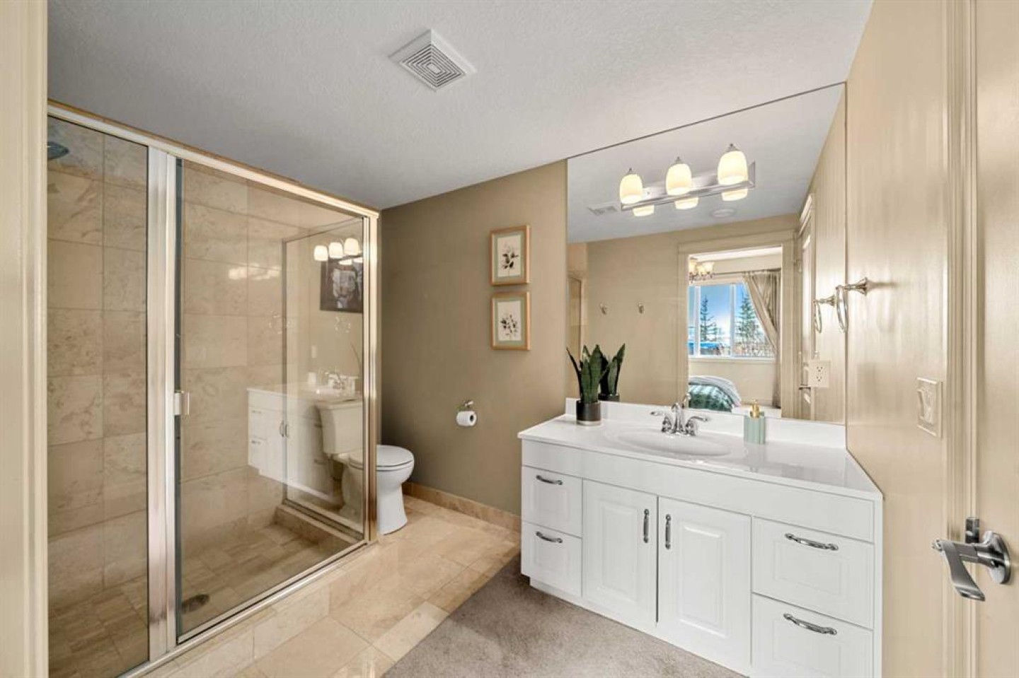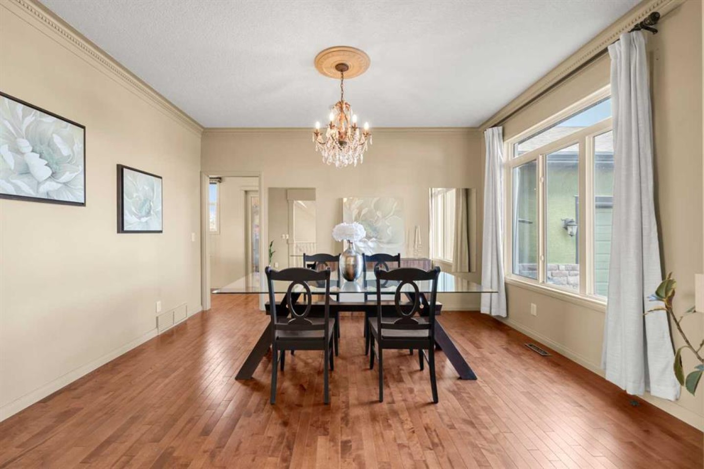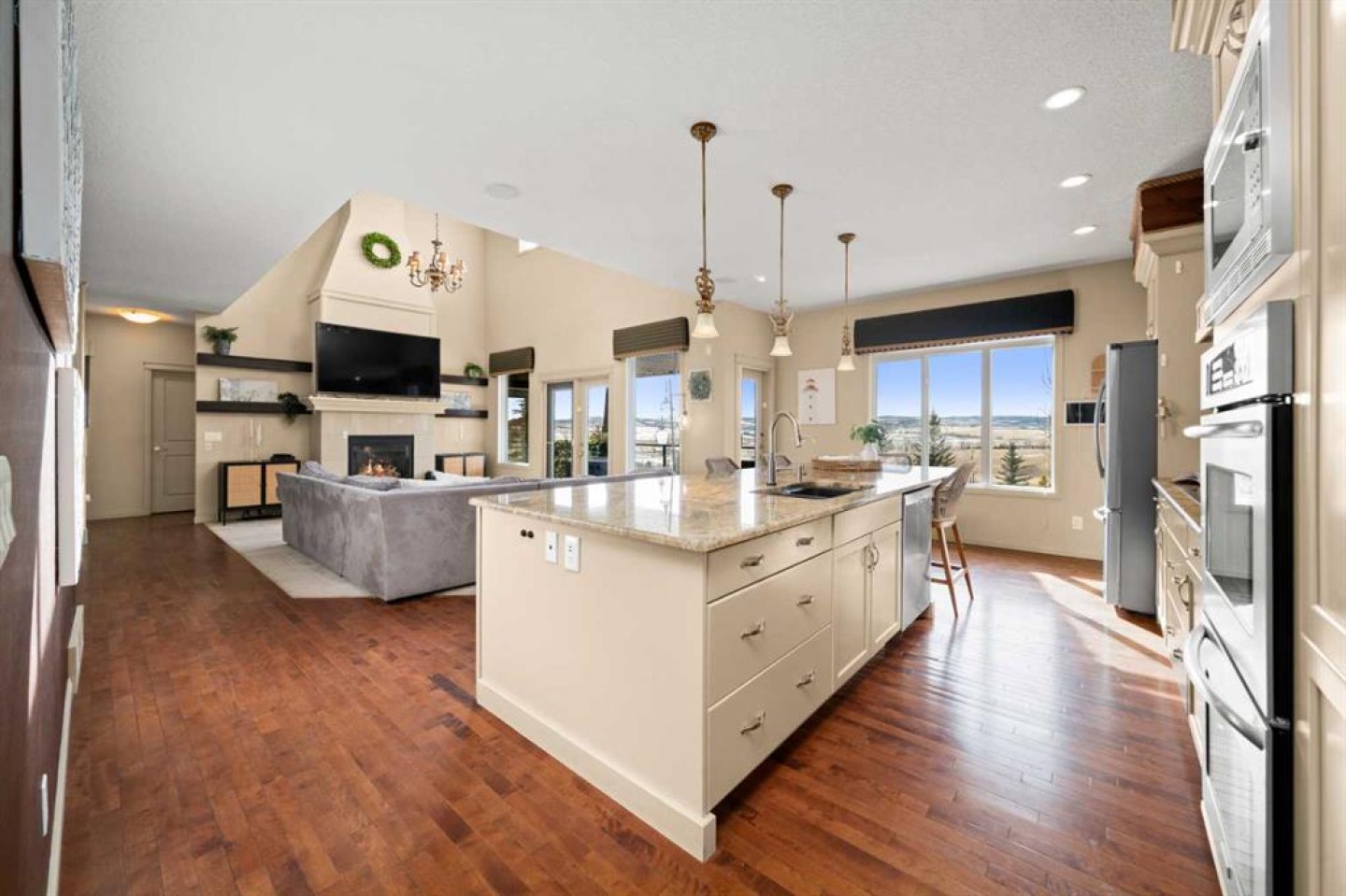 Set atop a private, gated lot, this custom-designed home takes full advantage of its unobstructed, far-reaching views. A winding drive leads you through the property, gradually revealing a home thoughtfully positioned to capture both privacy and landscape. Mornings here begin quietly—coffee in hand while watching horses train nearby—and on clear days the Rocky Mountains rise in the distance, a reminder of how remarkable this setting truly is. Inside, three levels of carefully designed living space offer room to gather, entertain, and retreat. The home opens to a generous foyer where a graceful staircase anchors the space. A bright flex room currently serves as a home office, while across the hall a well-proportioned dining room connects seamlessly to the kitchen and pantry—an easy layout for hosting family dinners or larger celebrations. The main level is filled with natural light, thanks to soaring ceilings and expansive windows. At the center of the home, the kitchen is designed for both everyday use and cooking with purpose, offering extensive cabinetry, a large island, built-in appliances, and a nearby pantry. The main-floor laundry room provides a cheerful, practical workspace. Tucked away for privacy, the primary suite offers a quiet retreat with a spacious walk-in closet and a beautifully appointed ensuite. A richly finished powder room completes the level. Upstairs, two equally sized bedrooms each feature their own full ensuite bath and elevated views across the surrounding landscape. The lower level introduces a generous amount of additional living space. Here you’ll find a large bedroom with a cheater ensuite, a gym, family room, games area—with pool table included—and a kitchenette with secondary laundry. This level adapts easily for entertaining, extended family, or a private living area for guests or a nanny. Outdoor living is equally inviting. Warm days can be spent swimming in the above-ground pool, while evenings might end with a soak in the hot tub. When temperatures rise, the home’s air conditioning keeps the interior comfortably cool. A triple attached garage and expansive driveway provide ample parking for residents and visitors alike. Set on 2.99 acres, the property feels wonderfully open, with no homes directly in front or behind—allowing the surrounding views and quiet of the landscape to take centre stage.