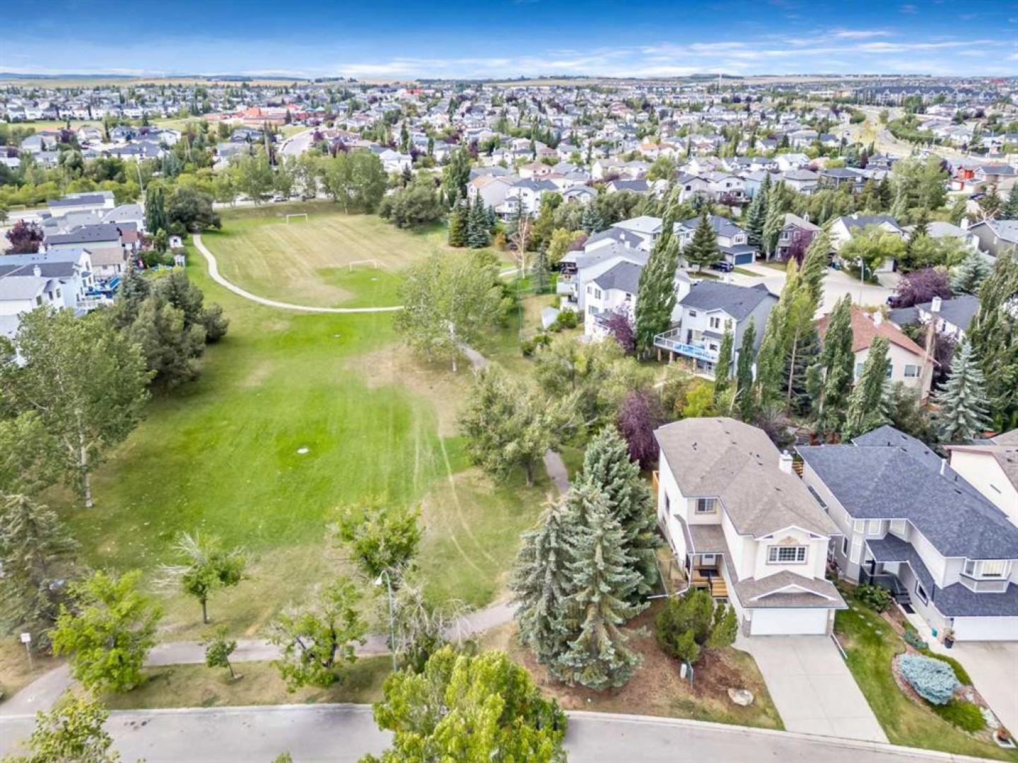 Looking for a WALK-OUT basement and a home with siding onto a park? This is the one! This beautiful home offers rare park-side living. The seller has completed numerous upgrades in recent years, including new PEX water lines, dishwasher, hot water tank, deck, front porch, toilets, and faucets. The main floor features 10 ft ceilings and high ceilings in the bonus room, makes these area very airy and bright for your family to enjoy for many years to come. 3 washrooms. Good-sized double attached garage plus many more parking spaces on the street when needed for your visitors. A total of 1900sqft above grade plus the unfinished walk-out basement. You will like this peaceful, quiet neighbourhood close to schools, shopping, and everyday amenities, with quick and easy access to Stoney Trail for convenient commuting. Flexible possession. This is a perfect time make your move and enjoy your summer in this spacious home.