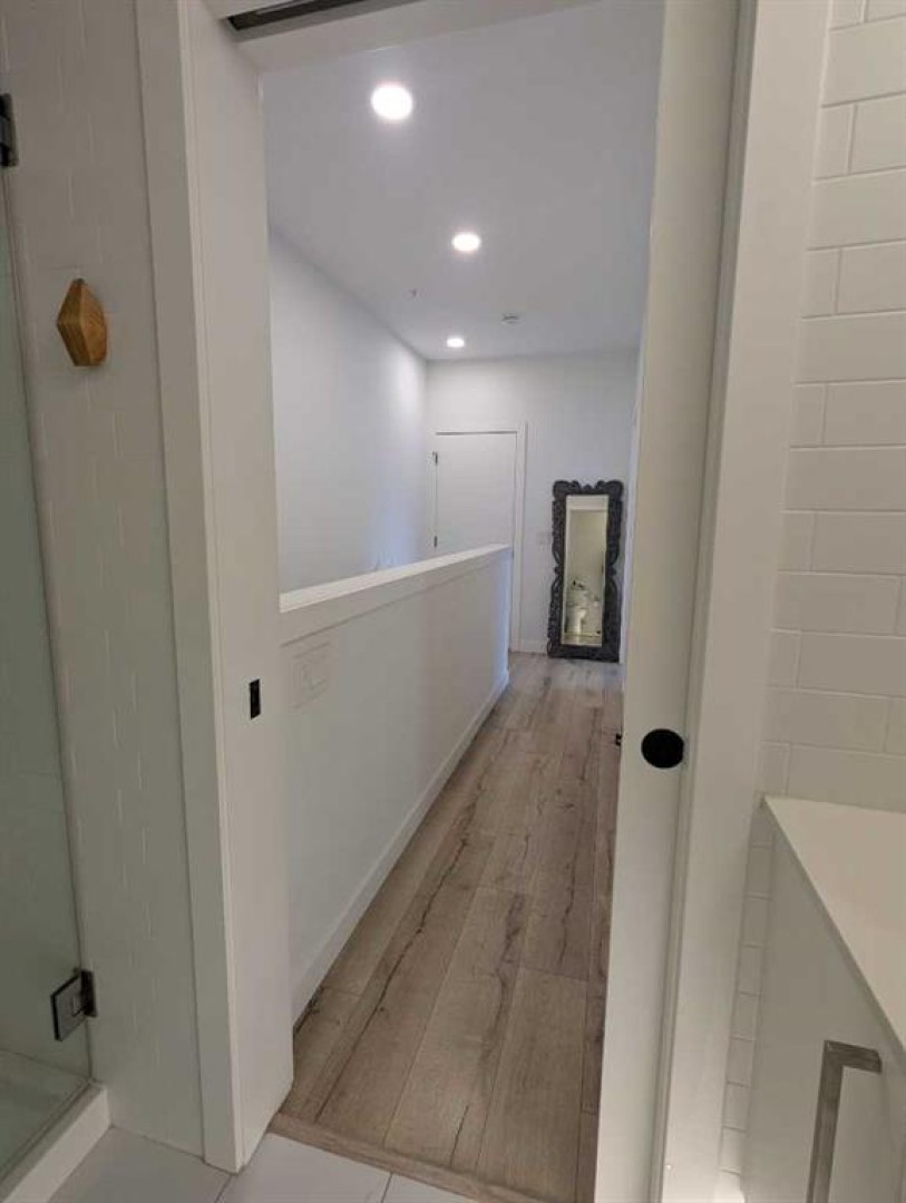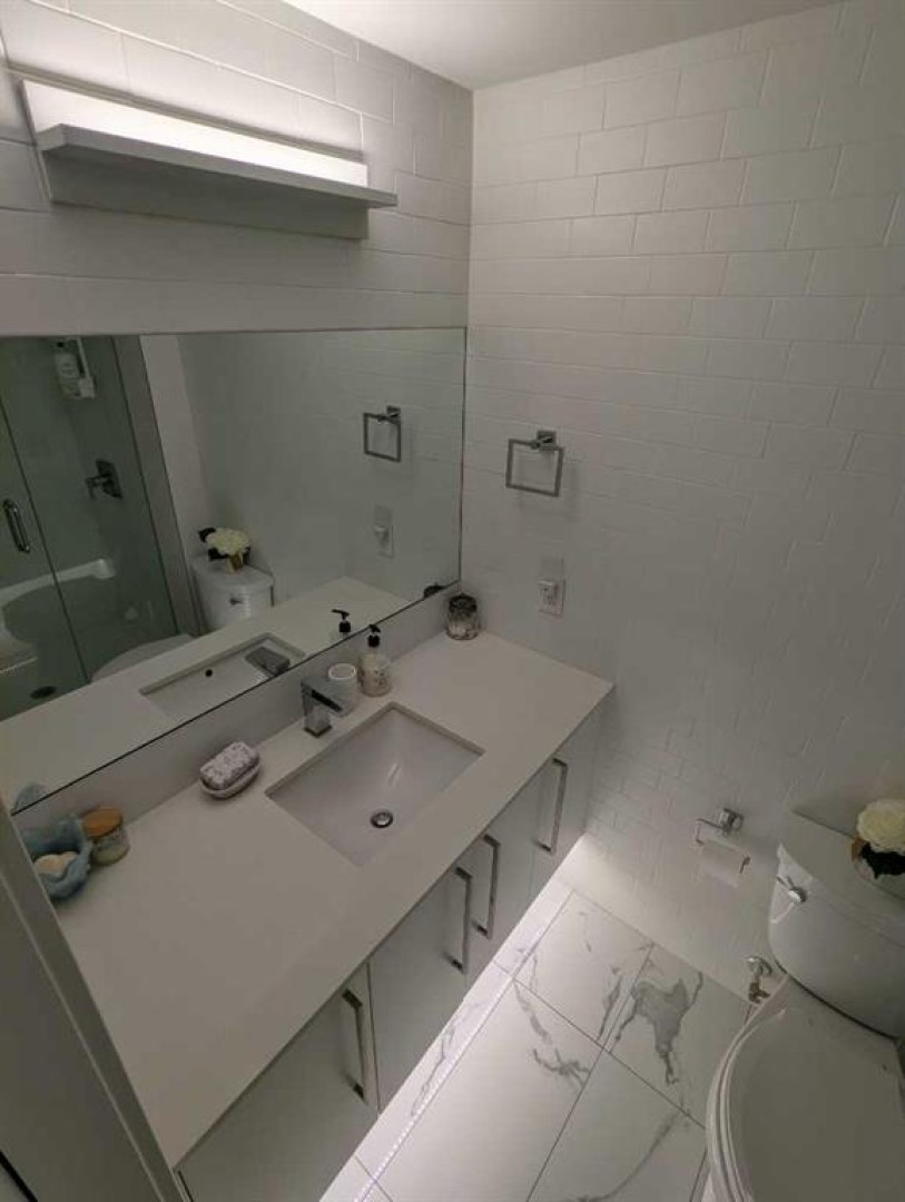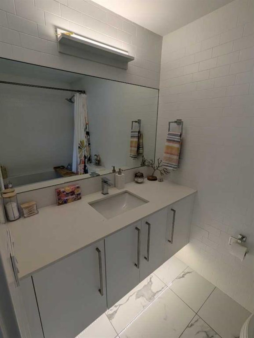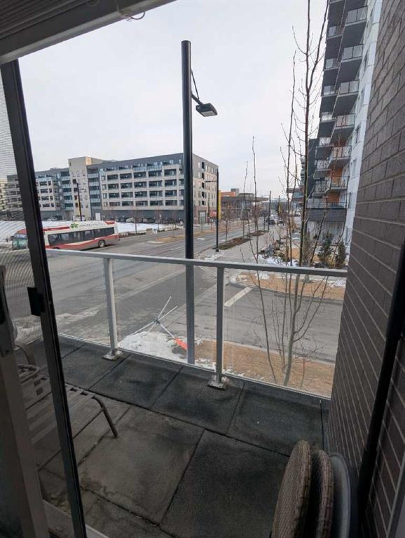 Possibly the best location on the block. A rare opportunity to own a two-level end unit apartment in Calgary’s award-winning University District. As a coveted end unit, this home enjoys more sunlight with extra windows on the main and upper floors. Surrounded by trees and offering partial unobstructed views of University Ave, this residence puts you in the heart of the action while still a block away from main street for privacy and outdoor relaxation. Enjoy two distinct south-facing outdoor spaces, including a main-floor patio with a gas line for barbecue season, and an upper balcony for soaking in the sun. The benefit of being on the main floor is your own private exterior entrance—perfect for pet owners, cyclists, and welcoming guests who can park right out front—alongside secure interior access through the building lobby. The thoughtful floor plan separates your social and private spaces, with living and eating areas plus a convenient powder room on the main, while the bedrooms are tucked away upstairs with two full spa-like bathrooms. This family-occupied home has been kept in pristine condition and features high-end custom additions that set it apart such as a ceiling fan, a patio screen door, built-in shelves for a desk area and two TV mounts for maximizing floor space. Luxury finishings include wide-plank flooring, marbled tile, stylish barn-door closets, a gourmet kitchen with sleek built-in appliances, quartz countertops, full-height cabinetry, island seating, and undermount lighting. All drawers and cabinets are soft-close! This unit includes one titled stall in the heated underground parking, a dedicated storage locker, and use of the building's bike room. Experience the best of the University District—where sustainable design meets vibrant urban energy. Boasting a Walk Score of 90, this unit is steps away from Cineplex, Shoppers Drug Mart, and a curated selection of restaurants and exercise facilities. Close to the University of Calgary, Alberta Children’s Hospital, and Foothills Medical Centre. Call your favorite agent today, as this won’t last long!