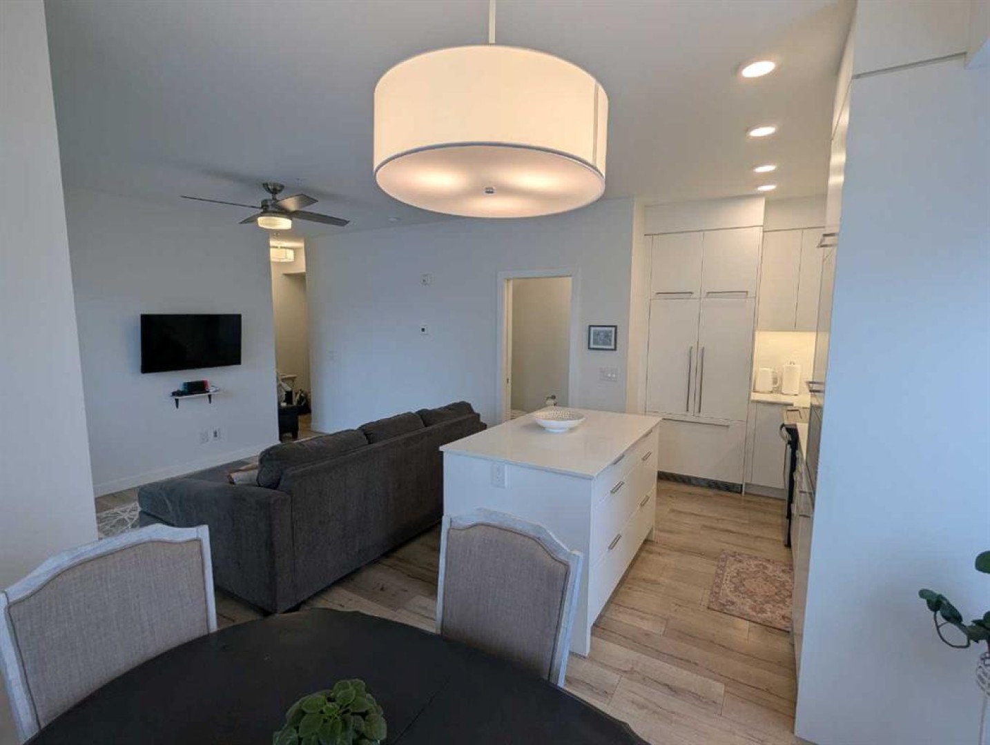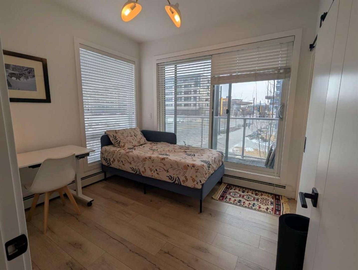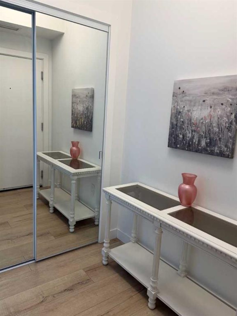 Possibly the best location on the block. A rare opportunity to own a two-level end unit apartment in Calgary’s award-winning University District. As a coveted end unit, this home enjoys more sunlight with extra windows on the main and upper floors. Surrounded by trees and offering partial unobstructed views of University Ave, this residence puts you in the heart of the action while still a block away from main street for privacy and outdoor relaxation. Enjoy two distinct south-facing outdoor spaces, including a main-floor patio with a gas line for barbecue season, and an upper balcony for soaking in the sun. The benefit of being on the main floor is your own private exterior entrance—perfect for pet owners, cyclists, and welcoming guests who can park right out front—alongside secure interior access through the building lobby. The thoughtful floor plan separates your social and private spaces, with living and eating areas plus a convenient powder room on the main, while the bedrooms are tucked away upstairs with two full spa-like bathrooms. This family-occupied home has been kept in pristine condition and features high-end custom additions that set it apart such as a ceiling fan, a patio screen door, built-in shelves for a desk area and two TV mounts for maximizing floor space. Luxury finishings include wide-plank flooring, marbled tile, stylish barn-door closets, a gourmet kitchen with sleek built-in appliances, quartz countertops, full-height cabinetry, island seating, and undermount lighting. All drawers and cabinets are soft-close! This unit includes one titled stall in the heated underground parking, a dedicated storage locker, and use of the building's bike room. Experience the best of the University District—where sustainable design meets vibrant urban energy. Boasting a Walk Score of 90, this unit is steps away from Cineplex, Shoppers Drug Mart, and a curated selection of restaurants and exercise facilities. Close to the University of Calgary, Alberta Children’s Hospital, and Foothills Medical Centre. Call your favorite agent today, as this won’t last long!
