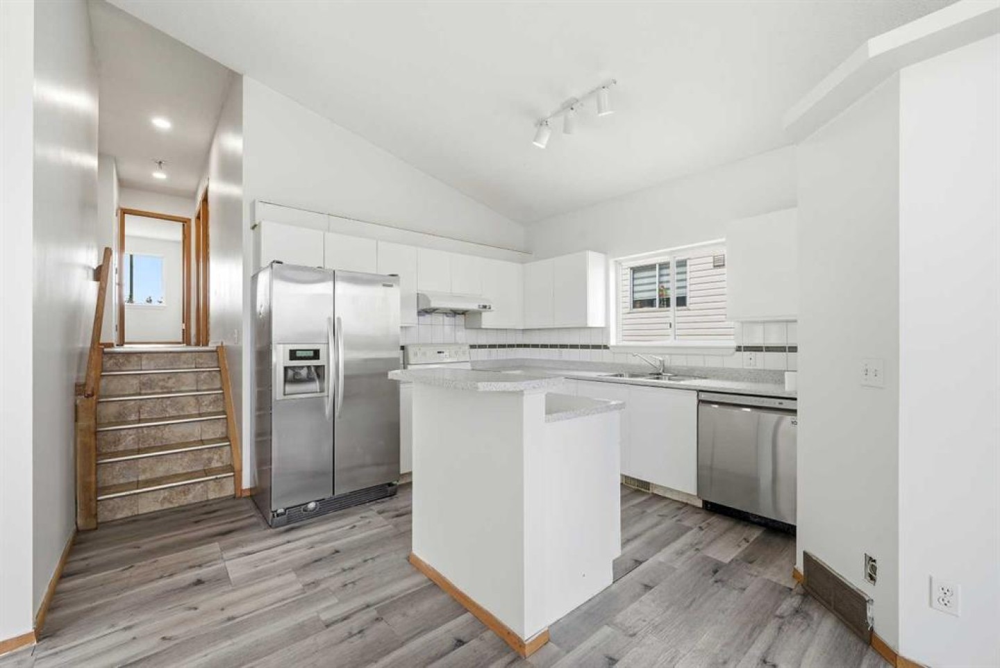 Dishwasher, Dryer, Electric Stove, Range Hood, Refrigerator, Washer, Window Coverings