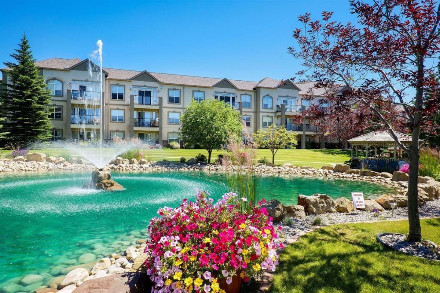 Wow, wow, wow! Such a rare offering! Welcome to this extra large 1240 sq ft , 2 bedroom, 2 bathroom corner unit with two private patios, titled underground parking, fantastic amenities and located in NW Calgary’s only lake community, Arbour Lake. The kitchen is an entertainer’s dream with an abundance of cabinetry and counter space, a walk in pantry, stainless steel appliances and a large island with breakfast bar seating. The open concept layout flows beautifully into the bright and inviting living space featuring a cozy soothing fireplace and sliding glass doors that lead to your private patio, perfect for BBQs and outdoor dining. The spacious primary suite is truly impressive with plenty of room for a king sized bedroom set, a large walk through closet and a generous ensuite complete with ample counter space and a linen closet. Sliding glass doors also lead to a second private patio, the perfect spot to enjoy your morning coffee or an evening cocktail. The second bedroom is also generously sized and conveniently located next to the second full bathroom, making it ideal for guests, family or a home office. Newer Luxury vinyl plank flooring runs throughout the home and the oversized laundry room offers excellent storage space. This exceptionally well managed 18+ complex is known for its peaceful atmosphere and strong sense of community, where listings rarely come to market. Residents enjoy outstanding amenities including a fully equipped fitness centre with sauna and change rooms, a recreation room with kitchen and games area, a woodworking shop, beautifully landscaped grounds with a pond, gazebo and fountain, and plenty of visitor parking. Located just steps from transit, pathways, parks and the private Arbour Lake beach, you will enjoy year round lake access including swimming, skating, tennis courts and a clubhouse. Shopping, restaurants and schools are all nearby with quick access to major routes for an easy commute downtown or a weekend escape to the mountains. This is more than just a condo, it’s a lifestyle! Mr. and Mrs. Clean truly live here! This is a home where pride of ownership is unmistakable! Start enjoying lake living this summer in Arbour Lake, Calgary’s award winning four season lake community. This property is the ultimate combination of beauty, comfort, and long term value. A forever home designed for you and memories on the water. Do not miss it! Call today!.A must to see!