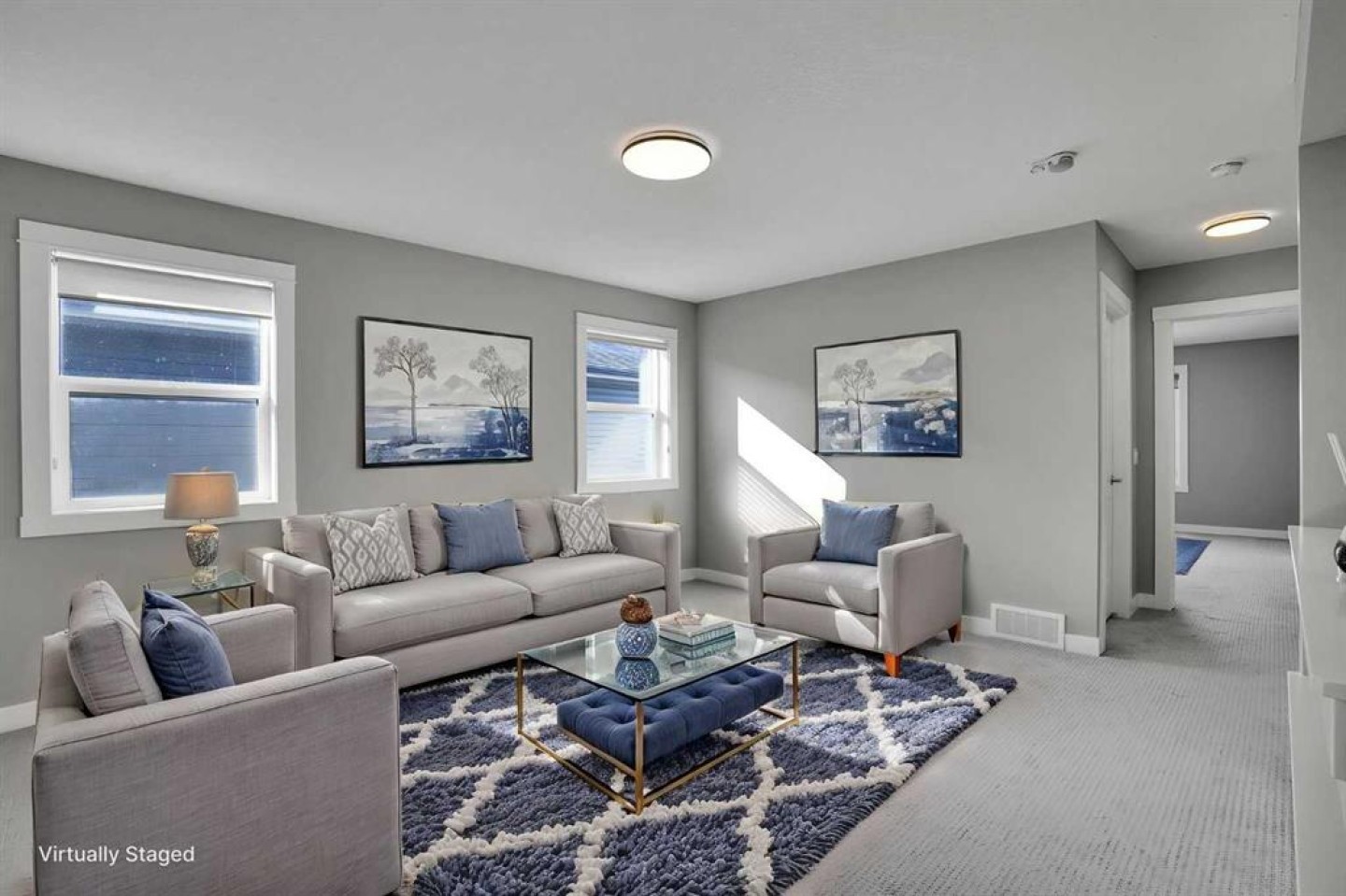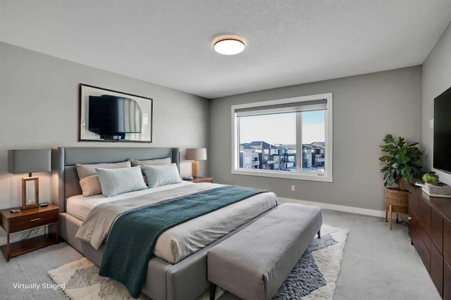 Two-story house BACKS ONTO A POND AND WALKWAYS. WALK OUT BASEMENT. SIX bedrooms. THREE kitchens. NEW SHINGLES AND SIDINGS! On the main floor, you’ll find a spacious living room complete with an electric fireplace. The living and dining areas offer tranquil views of the pond and green space at the rear. The open kitchen is equipped with a large breakfast countertop, an electric cooktop, a built-in oven and microwave, as well as cabinets that extend to the ceiling. This level also has a half bath, an office and a NICE ADDITIONAL SPICE kitchen. On the upper floor, the master bedroom boasts a five-piece ensuite bathroom, along with three additional bedrooms and another full bath. A study area with a long table is conveniently located between two of the bedrooms. Laundry facilities are also on this level. For family gatherings, there is a generously sized bonus room that with built-in shelves for entertainment equipment. The walk-out basement has an ENCLOSED SUITE (illegal) which includes two bedrooms, a full bath, a BRAND NEW KITCHEN, a spacious family room and a SEPARATE LAUNDRY area. 9’ CEILINGS on main floor and basement. Outside, there is a patio located underneath the deck, and concrete steps on both sides of the house. The pond at the rear offers walking paths where you can enjoy peaceful strolls. This home is also equipped with CENTRAL AIR, KINETICO water softener & water filters. Easy access to Stony Trail and Deerfoot Trail, being just eight minutes from the airport. Spacious, well designed with nature behind, this property offers a convenient and relaxing home for the next owners! NOTES: Roof shingles and sidings were new (Nov 2024).