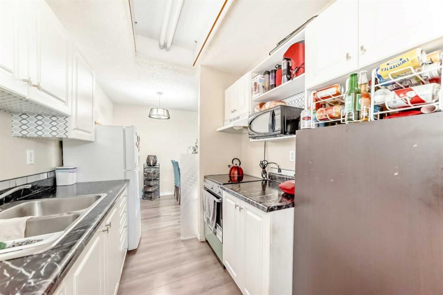 Welcome to Hilltop House! This spacious 750 sq. ft. one-bedroom unit in a quiet 25+ adult living complex offers the perfect blend of convenience and comfort in a prime central location. Situated on the main level for easy access, this unit features modern laminate flooring throughout and a bright, expansive living room that opens through massive patio doors to a large private patio—perfect for outdoor relaxation. The functional layout includes a well-equipped kitchen, Electric cooktop is replaced last year, a dedicated dining area, and a generously sized master bedroom with ample space for a king-size set, complemented by a bathroom featuring a deep soaker tub. Practicality is built-in with a large in-suite storage room, an assigned outdoor parking stall conveniently located right out front, and the common laundry room situated just next door. This property is a dream for investors or first-time buyers, as it is currently tenant-occupied at $1,600/month with a reliable tenant who is willing to stay, ensuring immediate and stable rental income. With low condo fees of $440.96 covering everything except electricity, and a location within walking distance to the LRT station, shopping, and downtown, this centrally located gem is a must-see opportunity.