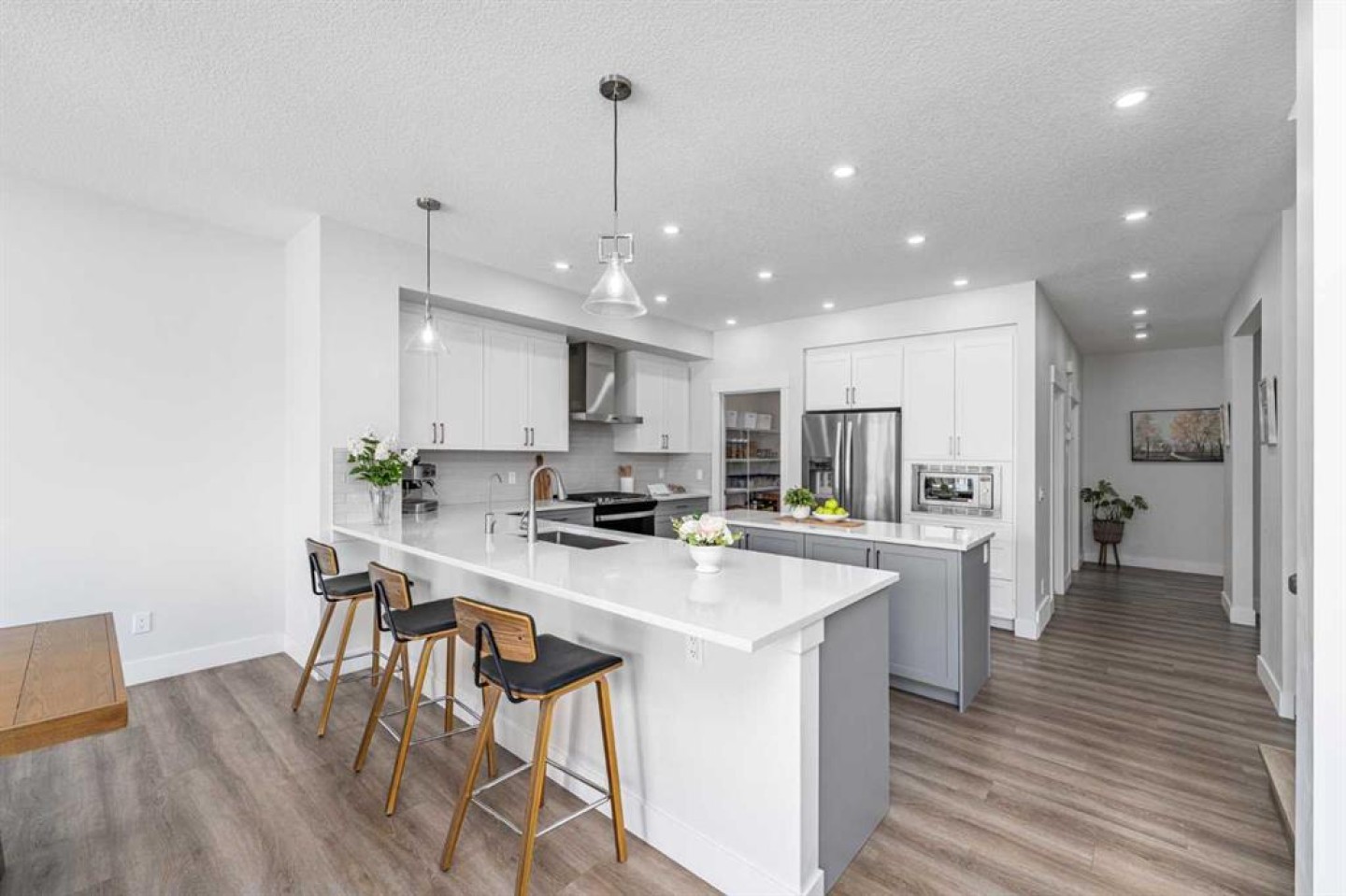 *Open House: 2-4pm Saturday Mar 14th & 1-4pm Sunday March 15th* Rare find! A stunning 2-year-new detached home in the only lake community in NW Calgary — Arbour Lake. Backing directly onto green space with beautiful mountain views, this exceptional property offers 4 bedrooms upstairs and a fully finished walkout basement, combining modern comfort with an unbeatable location. The main floor features a bright and spacious office, perfect for working from home. The modern kitchen is designed for both everyday living and entertaining, featuring a huge island, gas stove, and a large walk-through pantry conveniently connected to the garage. The south-facing living area is filled with natural light and centered around a sleek electric fireplace. The spacious dining room opens onto a large balcony overlooking the mountains, green space, pond, and playground — the perfect spot to enjoy your morning coffee while keeping an eye on the kids playing nearby. Upstairs features luxury vinyl plank flooring throughout — a completely carpet-free home. You will find four generous bedrooms, including a primary retreat with stunning mountain views, a spacious walk-in closet, and a large ensuite. The additional three well-sized bedrooms share a spacious bathroom, and the upper-level laundry room adds everyday convenience. The walkout basement offers incredible flexibility with a modern wet bar, a large recreation area ready for your imagination, a versatile flex room perfect for an office or study, and a full bathroom. Step outside to a backyard that opens directly onto the playground and green space, leading to a scenic pond — an ideal setting for families and outdoor enjoyment. Living in Arbour Lake means enjoying one of Calgary’s most desirable four-season lake communities. Residents have access to the private lake for swimming, fishing, boating in the summer, and skating in the winter, along with tennis courts and community amenities at the Arbour Lake clubhouse. The location is incredibly convenient, within walking distance to Crowfoot LRT and Crowfoot Crossing Shopping Centre, and close to Crowfoot Library, YMCA, and excellent schools. To top it off, the home features durable cement fibre siding, offering better resistance to hail damage — an important advantage in Calgary.