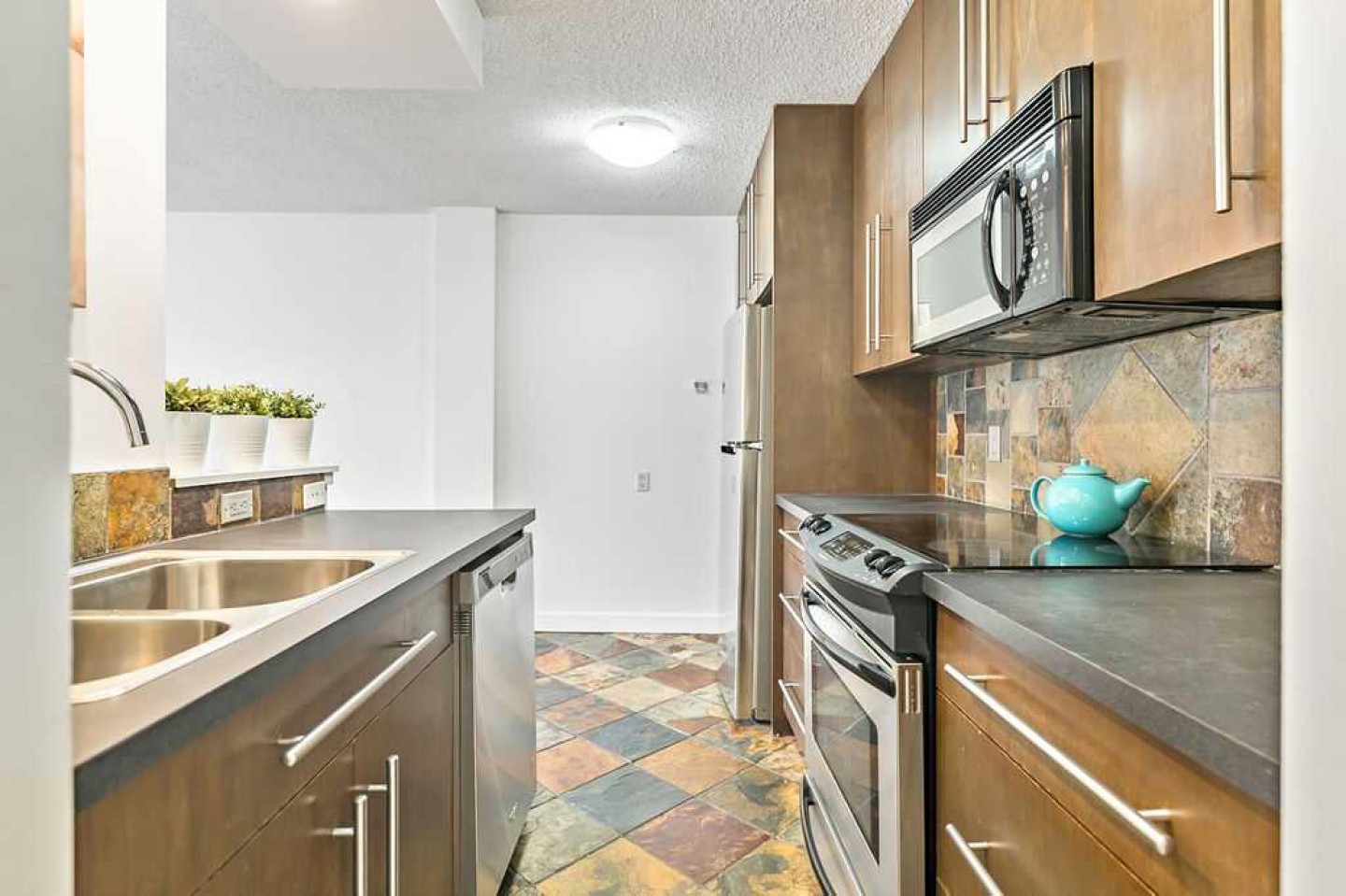 Dishwasher, Electric Stove, European Washer/Dryer Combination, Microwave, Refrigerator, Window Coverings