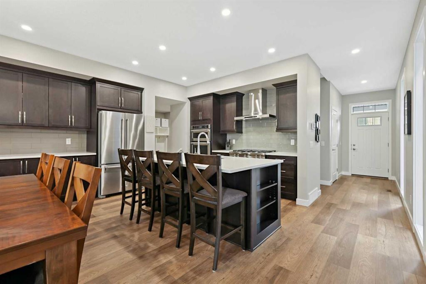 ** Quick Possession - Move in ready ** Custom Jayman BUILT home - Award Winning Madeline 24 Model ** Family Approved ** SOUTH BACKYARD ** Extensive upgrades and superior quality, with over 2338+ square feet of luxurious Air-Conditioned living space. You will be impressed with the privacy of an oversized homesite featuring a private, south-west-facing backyard with a bespoke 10' x 10' upper deck and a lower 18' x 11' concrete patio and gazebo. Enjoy this convenient Seton Location - steps away from ponds, parks, pathways, schools, shopping, soccer fields, bike paths, transit, a clubhouse, 212 Avenue, and expressways. Rich curb appeal with architectural features - dramatic rooflines, an attached garage, and a full-sized concrete driveway, along with covered entry and columns, complete this spectacular elevation. There are extensive upgrades throughout, and the details are superb. This is a must-see home! Chef’s kitchen includes quartz countertops, custom light & dark wood style cabinets/doors, extension trims, KitchenAid stainless steel fridge/dishwasher/microwave/wall oven, six burner gas cooktop, recessed lighting, oversized central island, island with a flush eating bar & brown Silgranit undermount sink, walk-in 7.5' x 5' butlers pantry with storage & a large central breakfast nook. The main floor layout features an office/den, a family room with an electric fireplace and stone detailing, a family-sized open foyer with a side window, and rich, wide-plank LVP floors that run from the front entrance through the main floor, stairs, and the upper level. The large mud room provides additional storage lockers and offers easy access to the garage. Upstairs, you'll find the upper three bedrooms, a bonus room, and a laundry room. The primary bedroom suite includes his-and-hers vanity sinks, a massive walk-in closet, an easy connection to the upper laundry room, an oversized shower with a glass door, and a gorgeous soaker tub to complete this stunning spa-like en-suite. BONUS: The unfinished basement provides ample space for all your plans. Plus, smart home technology, 6 solar panels, Navien tankless water heater, 9' main floor & high basement ceilings, generously sized bedrooms with large windows, future radon basement piping rough-in, plumbing/lighting, and electrical fixtures upgraded! Don’t miss this opportunity. Call your friendly REALTOR(R) to book your viewing right away!