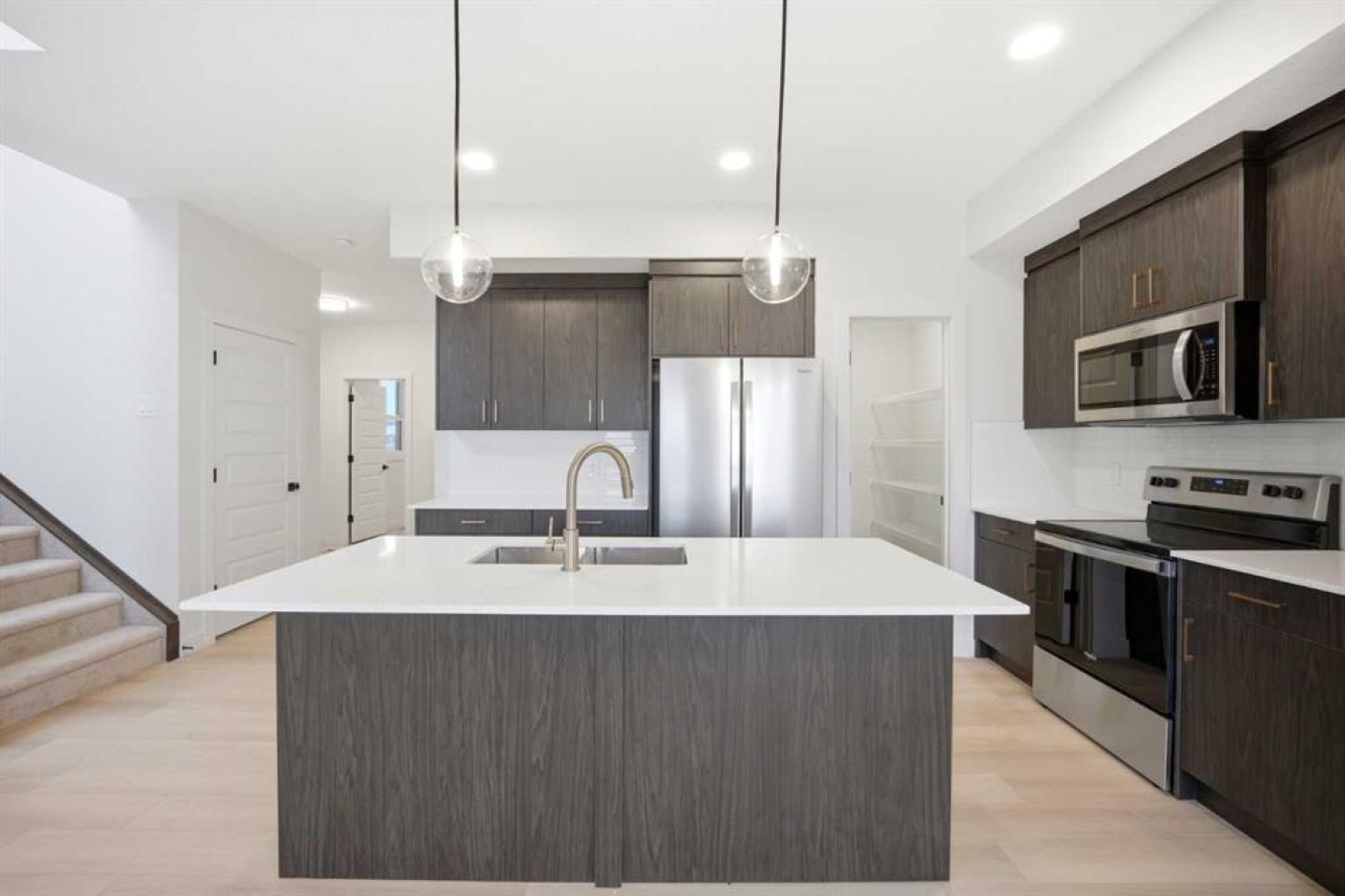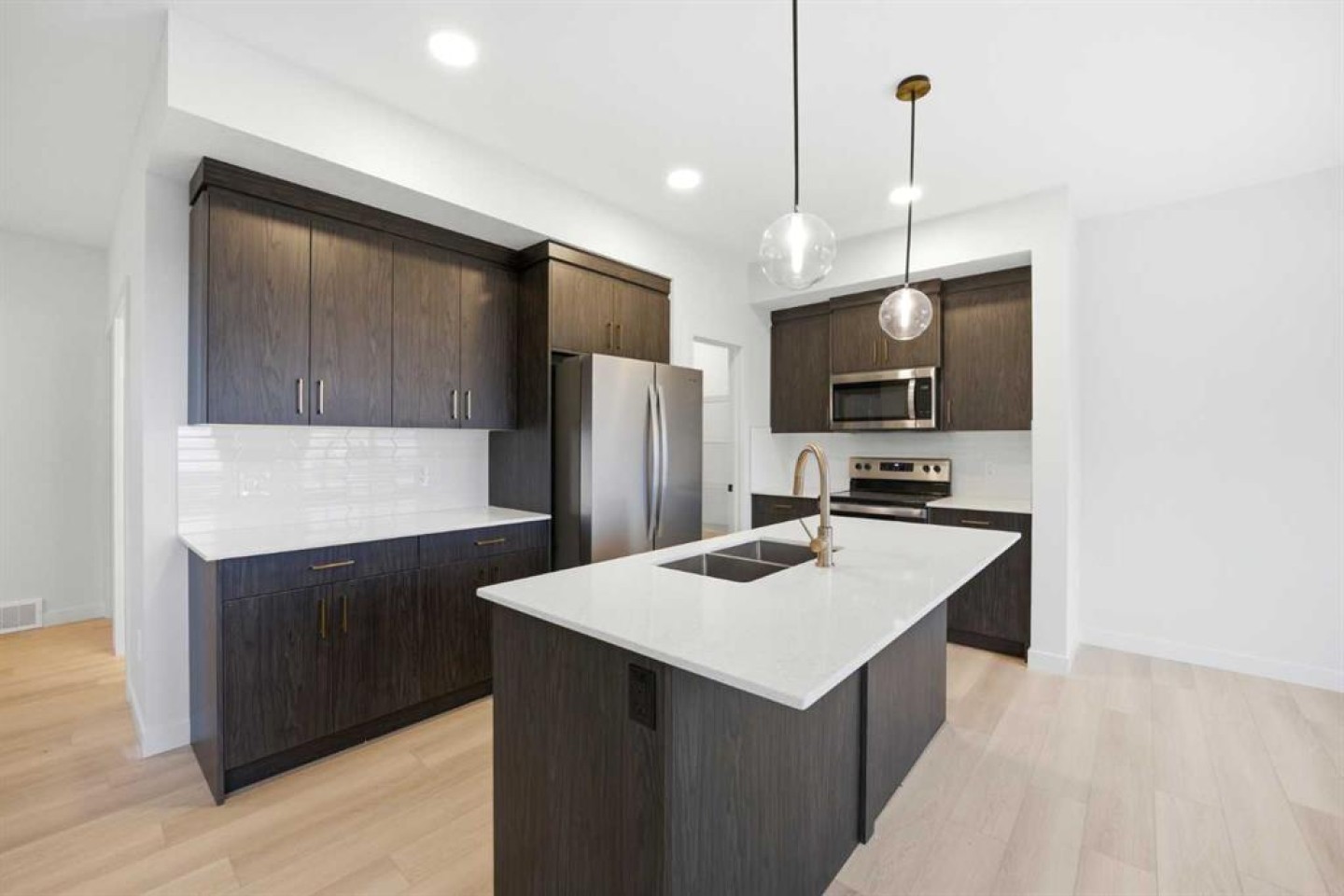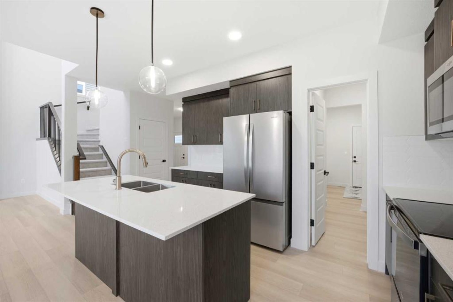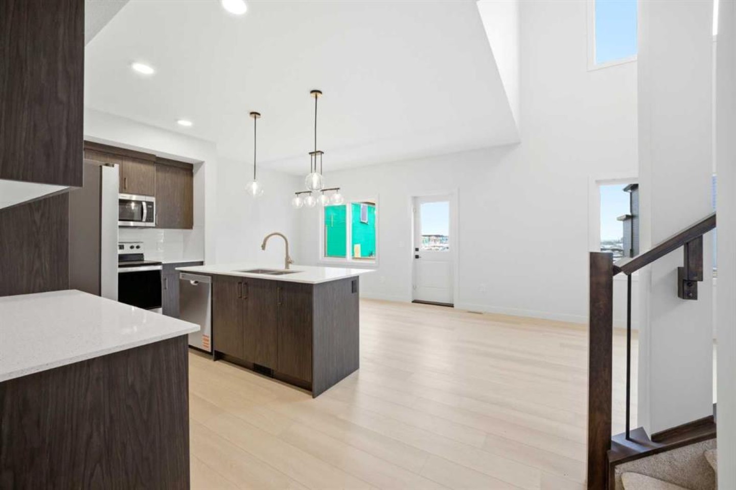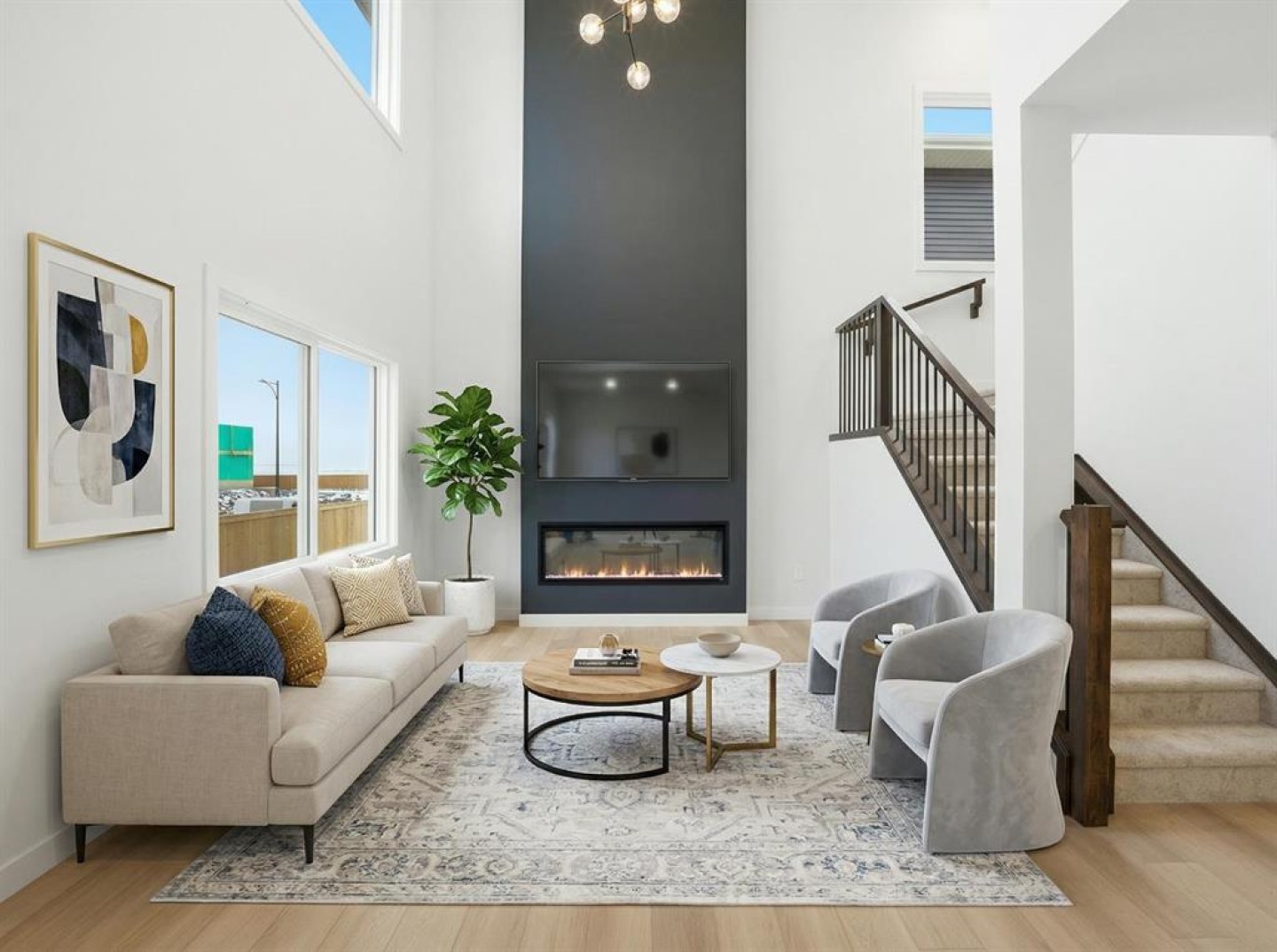 Welcome to your new home in Waterford, Chestermere! Experience modern elegance in this sprawling 2,075 SQ. FT. FRONT-DRIVE SEMI-DETACHED HOME, thoughtfully designed with the modern family in mind. The main floor invites you in with a seamless open layout, highlighted by a STUNNING "OPEN TO ABOVE" LIVING ROOM featuring a custom accent wall and a sleek electric fireplace. Designed for ultimate versatility, the main level includes a RARELY FOUND FULL BEDROOM AND BATHROOM WITH A STANDING SHOWER—perfect for elderly parents, guests, or a quiet home office. The chef-inspired L-SHAPED KITCHEN BOASTS A WALKTHROUGH PANTRY leading to a highly functional mudroom. Upstairs, discover a spacious bonus room bathed in natural light from the open-to-above, a convenient laundry room, and three generous bedrooms. The primary retreat features a double vanity ensuite, much needed walk-in shower, and a spacious walk-in closet. The unfinished basement is prepared for future development, FEATURING A SEPARATE SIDE ENTRY, EXTENDED 9 FT. HEIGHT, TWO REAR EGRESS-SIZED WINDOWS, and a mechanical room tucked away to maximize floor space. Situated on the southwest edge of Chestermere, Waterford offers a peaceful "Lake City" lifestyle with a quick commute to Calgary via easy access to Glenmore Trail and 17th Ave. You are a few minutes away from Rainbow Creek Elementary and Chestermere Lake Middle School, as well as local groceries and popular restaurants. Move-in ready and just minutes from the water—your lakeside retreat awaits! View the 3D tour and book your showing today.