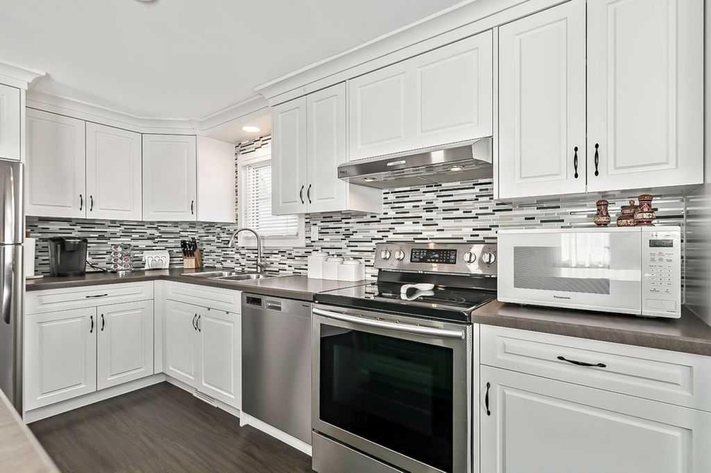 Dishwasher, Dryer, Electric Range, Range Hood, Refrigerator, Washer