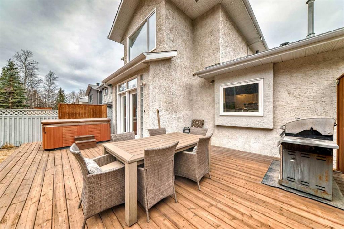 This exceptional home offers a rare combination of luxury, seclusion, and convenience, making it a true gem in an ideal location. Nestled on a tranquil, heavily treed lot that backs onto a forest, this custom-built, contemporary 2-storey home provides privacy and a serene living environment right in your backyard. Spanning over 2,400 sq. ft., this non-smoking, no-pet home showcases an open-concept design with beautiful hardwood flooring and 9-foot ceilings throughout the main floor. The large foyer leads to a well-appointed office that overlooks the manicured front yard, creating a welcoming first impression. The spacious living room features an attractive granite fireplace, adding both warmth and elegance to the space. The kitchen is a true highlight, equipped with a pantry, breakfast bar, and high-end stainless steel appliances. Garden doors from the dining room lead to a massive southwest-facing deck, perfect for entertaining or enjoying peaceful moments in the hot tub while appreciating the natural beauty of the surroundings. You'll love the natural gas hook-up for your bar-b-cue or even patio heater on those chilly evenings. Upstairs, the home boasts three generously-sized bedrooms. The master suite is particularly impressive, offering a walk-in closet, a private balcony, and a deluxe ensuite with modern fixtures. Full-width picture windows in the master bedroom and throughout the home provide stunning views of the lush backyard and forest, ensuring that the beauty of each season is always on display. The upper level also includes a 4-piece main bath with a deep soaker tub. The fully developed lower level adds even more functional living space, featuring a family room, a 4th bedroom, and a bathroom with a shower. The laundry and storage areas are conveniently located on this level as well. The home is completed with a double attached garage, featuring a workbench and ample storage shelves, providing practicality and organization. The location is unbeatable, with a quiet street just a short walk from local schools, bus stops, and bike paths. A few blocks away, you’ll find the scenic Bowness Park, the river, shopping, and the bustling Farmer’s Market. Plus, with quick access to downtown, the University, hospitals, and Banff, this home is perfectly positioned for both convenience and tranquility.