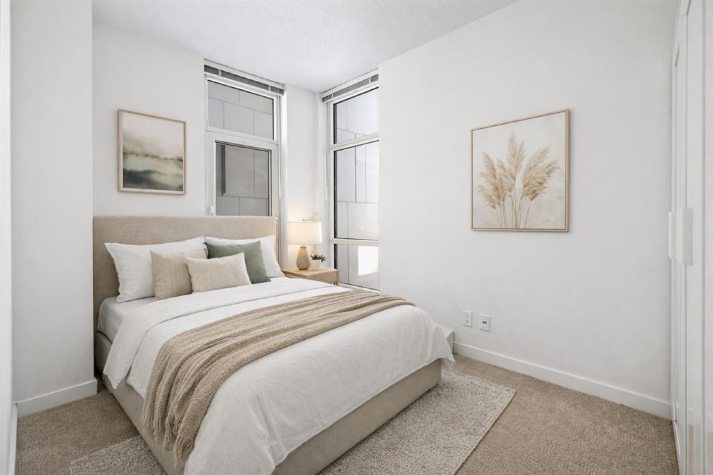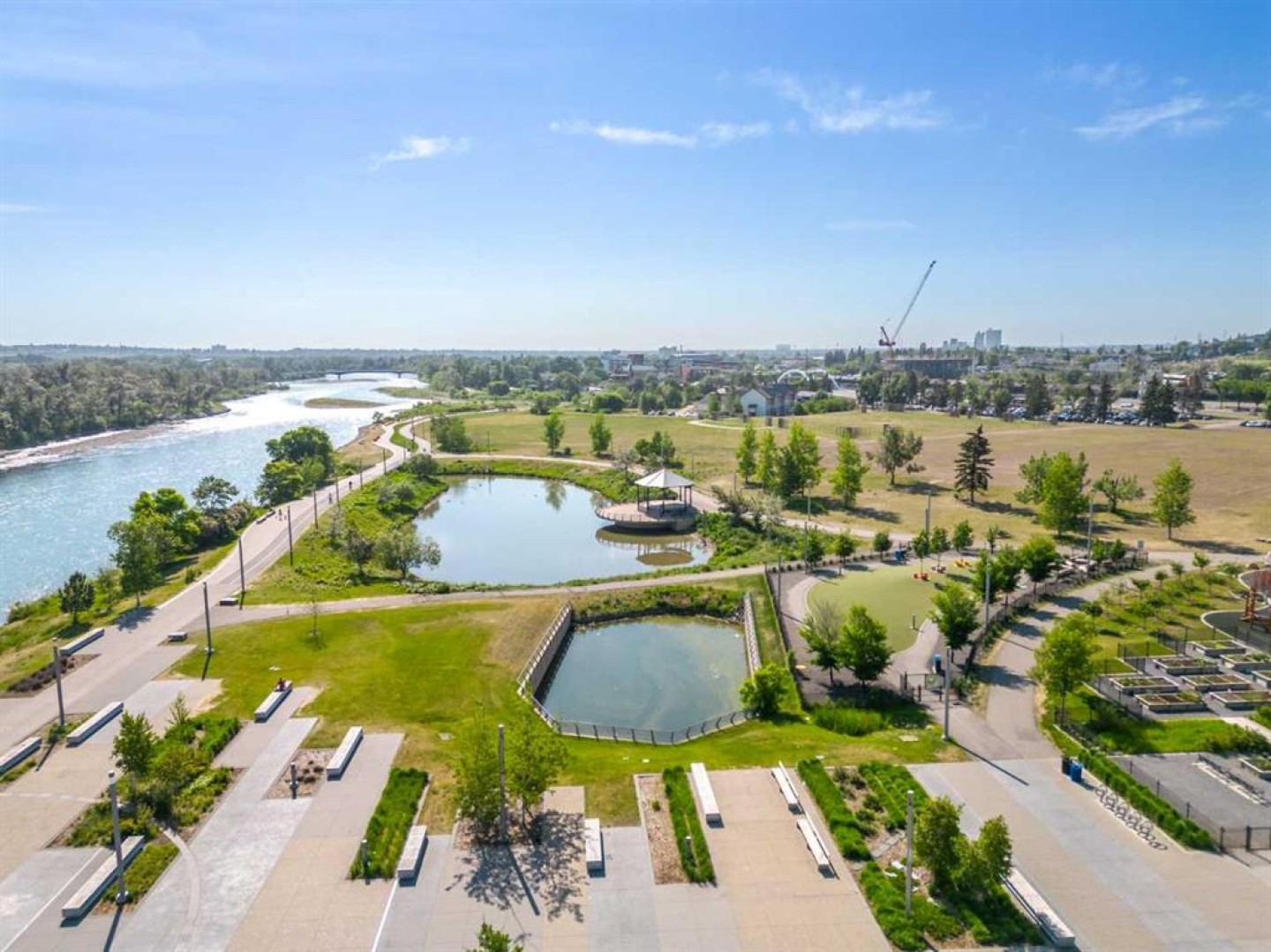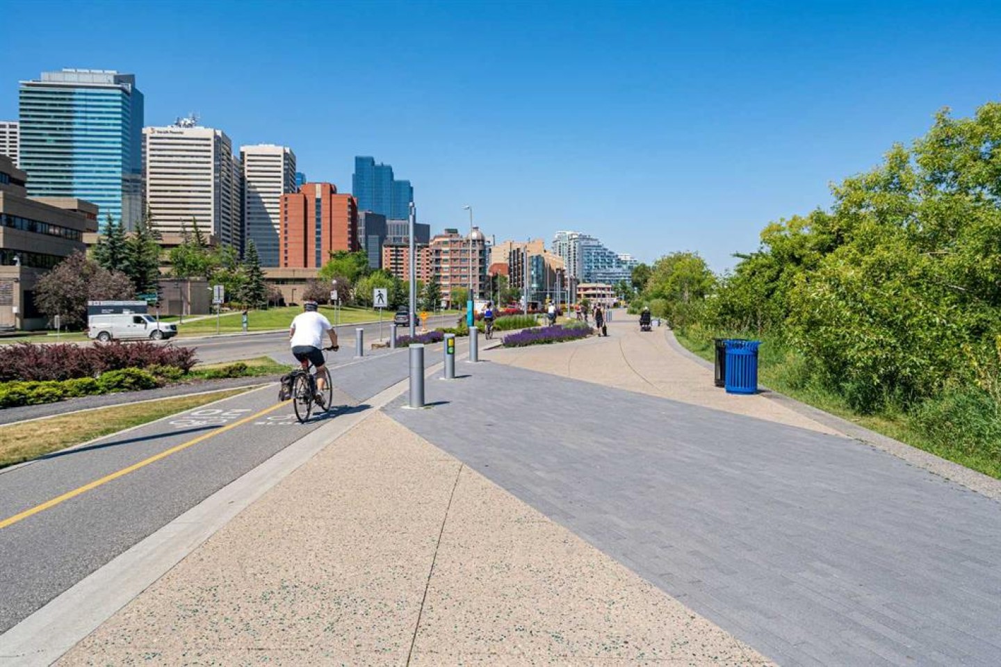 Live car-free, connected and fully plugged in at N3 in East Village - a bright corner unit in one of Calgary’s most successful environmentally conscious buildings. With top Walk, Bike, Transit Scores and the free-fare C-Train zone literally steps away, this is inner-city living done right. East Village is a true social hub: walk or bike to Parlour Ice Cream, CharBar, Rosso Coffee, the Central Library, Studio Bell, Stampede Park and even the new arena. The Bow River pathways, dog park, basketball courts, Olympic Plaza skating, and St. Patrick’s Island are all minutes from your door. Inside, enjoy a flood of natural light through floor-to-ceiling windows and a smart, larger than average 2 bedroom layout with separation - ideal for roommates, couples or investors. N3 elevates daily life with a multi-level fitness centre, bike storage with dedicated ramp and a rooftop patio with BBQs plus sweeping river, mountain and downtown views. Whether you're buying your first home, investing or planting roots downtown, this is how you get immersed into the East Village lifestyle.