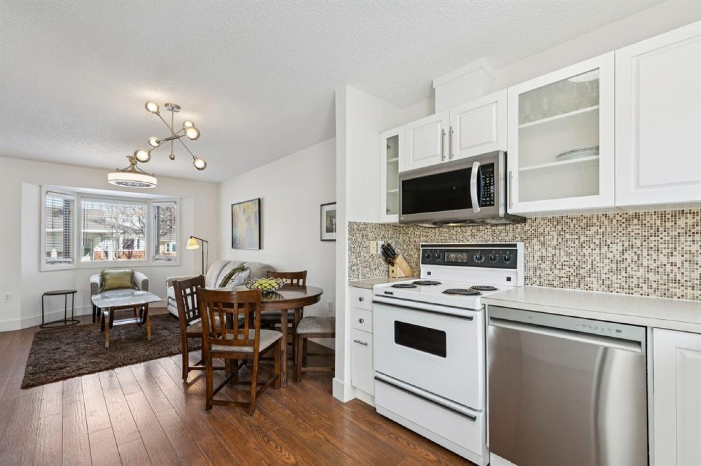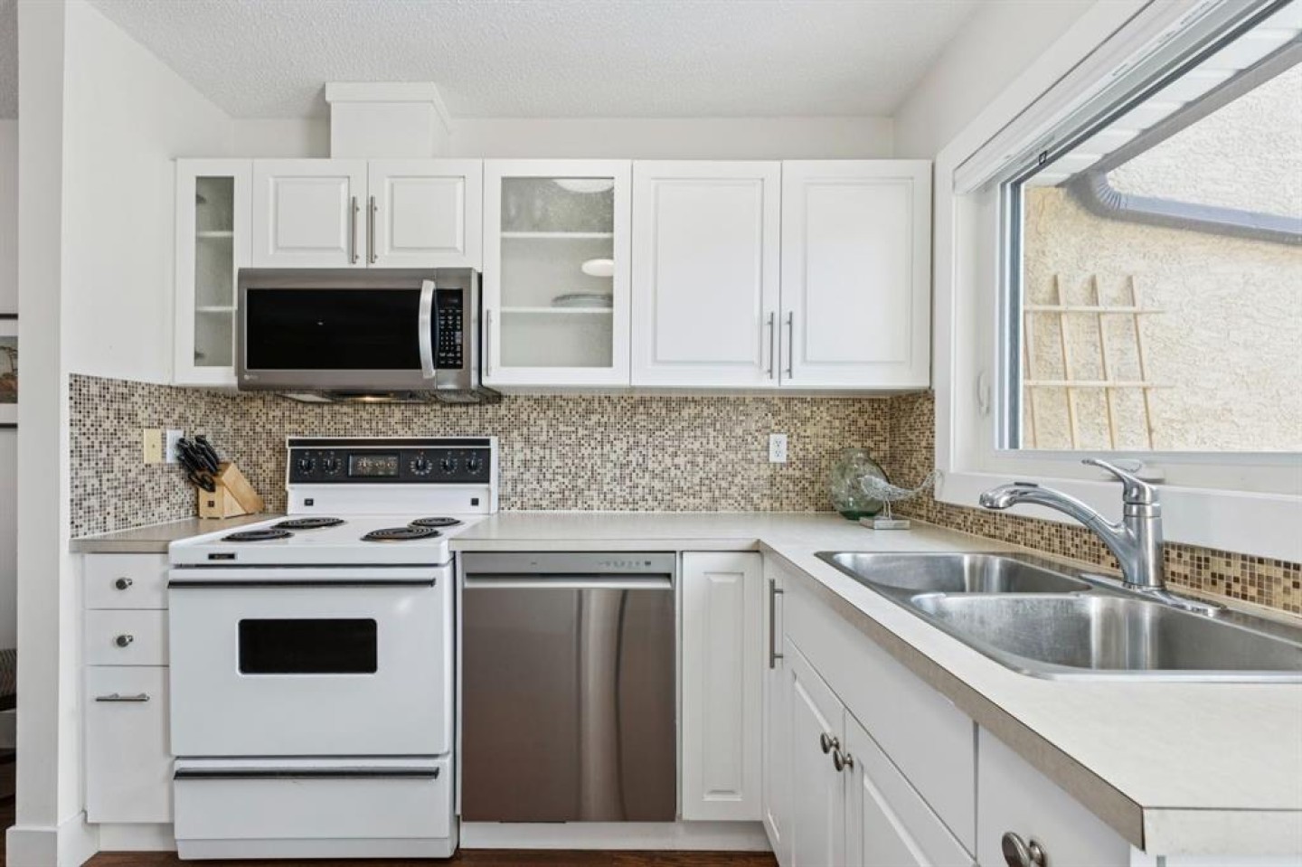 Dishwasher, Dryer, Electric Stove, Microwave Hood Fan, Refrigerator, Washer, Window Coverings