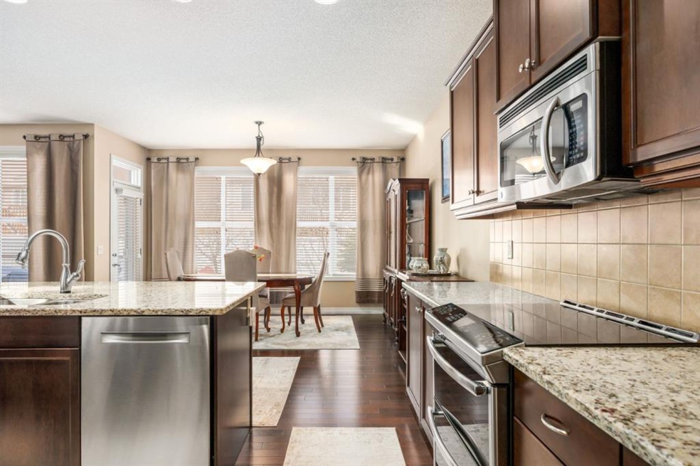 Bar Fridge, Central Air Conditioner, Dishwasher, Dryer, Electric Stove, Garage Control(s), Microwave, Microwave Hood Fan, Refrigerator, Washer, Window Coverings