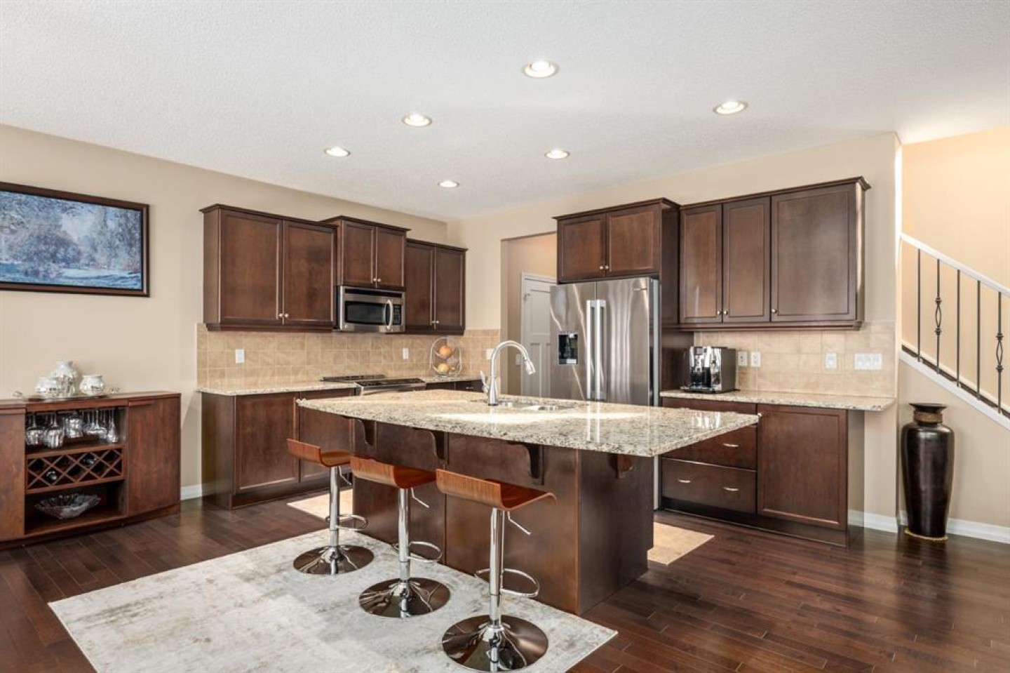 **OPEN HOUSE CANCELLED** Welcome to this beautifully maintained original-owner Jayman-built two-storey home, lovingly cared for since 2009 and ideally located on a quiet street. From the moment you step inside, the home makes a strong first impression with a spacious tiled front entry and a dramatic open-to-above foyer that adds light and a sense of scale. The layout is thoughtful and functional, with a main floor office just off the front entrance featuring a large L-shaped built-in desk, perfect for working from home, managing a busy household, or creating a homework hub. At the back of the home, you’ll find a warm and inviting open-concept living space designed for everyday living and entertaining. The living room is anchored by a centre fireplace, creating a cozy focal point. The kitchen sits at the heart of the home and offers extended dark-stained cabinets, granite countertops, stainless appliances, and a large island with bar seating. Just off the kitchen, the dining area offers plenty of room for a full-sized table and is wrapped in windows, bringing in excellent natural light and providing direct access to the west-facing backyard. A large hallway off the kitchen adds even more practicality, complete with a big dual-door pantry and broom closet. The oversized double attached garage is another standout feature, with room to comfortably accommodate larger vehicles, including a truck. Upstairs, the layout is ideal for families, with a smart separation between the primary suite and the kids’/secondary bedroom wing. The primary bedroom, is generously sized and features a massive walk-in closet and a spacious 5-piece ensuite with dual sinks, a stand-alone tub and shower. To the right of the stairs, a door closes off the secondary bedroom area for added privacy and functionality. Just outside the kids’ rooms is the convenient upper laundry room. Beyond that, you’ll find a cozy bonus room that’s perfect for a TV lounge, gaming area, hobby space, or reading nook. Two good sized bedrooms are perfect for the growing family. The fully finished basement adds even more living space and flexibility, featuring a comfortable TV/recreation area with carpet and a corner gas fireplace, plus a small wet bar, great for entertaining or family movie nights. This level also includes a huge fourth bedroom, another 4-piece bathroom, and plenty of storage space. Outside, the backyard is built for enjoyment and low-maintenance living. The new composite deck with aluminum railing spans approximately half the width of the home, offering lots of room for outdoor seating and entertaining. Add to that the benefit of underground sprinklers and you have the perfect outdoor oasis. The home also features A/C, central vacuum with attachments, and attractive exterior finishes with stucco plus CylaPlast. Other important updates include a new furnace (2023), new hot water tank (2023), new Class 4 impact-resistant shingle roof (2023), four new back windows, and the newer deck.