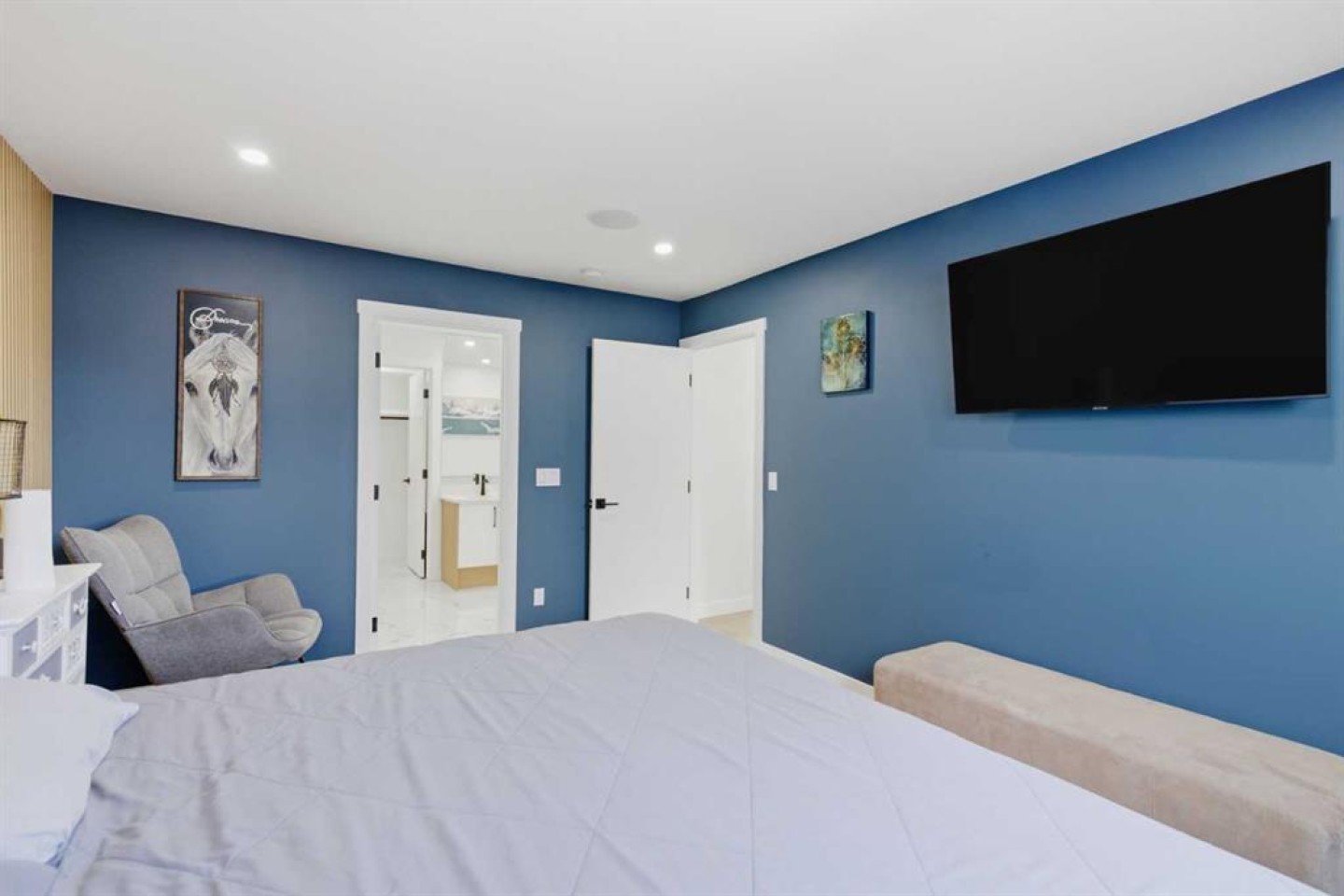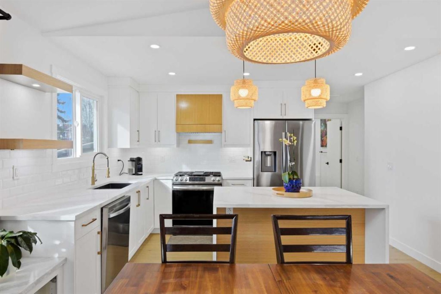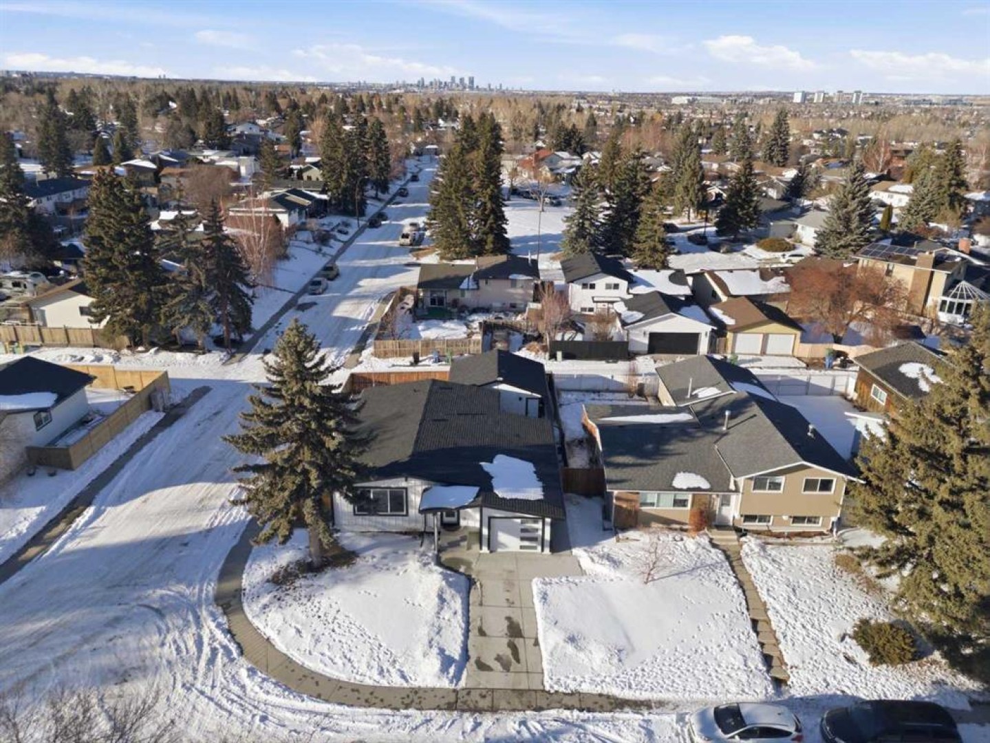 Welcome to this exceptionally renovated 4-bedroom home situated on a premium corner lot in the established community of Queensland, which is framed by mature trees adding a feeling of natural charm. Thoughtfully upgraded throughout, this home blends modern design with timeless comfort. You’ll feel the warm, inviting atmosphere the moment you step inside, highlighted by bright recessed lighting, natural Light, high vaulted ceilings, and custom in-ceiling speakers. On the main floor, the spacious primary retreat with a striking feature wall truly stands out! The spa Inspired ensuite features a walk-in glass shower, deep soaker tub, a double vanity with elegant finishes and a dream walk-in closet. Paired with a second bedroom and a seamless flow from the kitchen to the living room, which is filled with bright south-facing sunlight. The fully developed lower level creates the perfect gathering space, complete with a stylish wet bar and cozy lounge area ideal for hosting family & friends. Finishing off the basement with 2 full bedrooms, laundry and storage. Step outside to your covered outdoor oasis, a peaceful extension of the home- perfect for enjoying Calgary’s summer evenings. The expansive corner lot provides additional yard space for recreation and outdoor living, all enclosed by a brand-new fully fenced backyard with an oversized double gate for easy trailer or small equipment access. The home’s exterior showcases Hardie board siding, providing exceptional durability along with a clean, upscale aesthetics designed to stand the test of .me. Inside, all major appliances, drywall, windows, spray foam insulation, HVAC, hot water tank, plumbing pipes, electrical wiring, and roof have been updated within the past two years offering peace of mind and modern efficiency. Those hot Alberta summers are no match for the recently installed central AC! Families, car enthusiasts and hobbyists will appreciate the rare garage configuration that offer's a double oversized detached garage plus a single attached garage, both featuring durable epoxy floors. The single attached garage offer's the added convenience of a functional boot room entry into the home. With its proximity located just a short walk from a dog park, Fish Creek Provincial Park, schools, pathways and everyday amenities, this home delivers the perfect balance of nature, convenience, and refined living in one of Calgary’s most welcoming communi.es. Beautifully upgraded, perfectly located, and thoughtfully designed, this is a rare opportunity to own a truly standout home in Queensland.