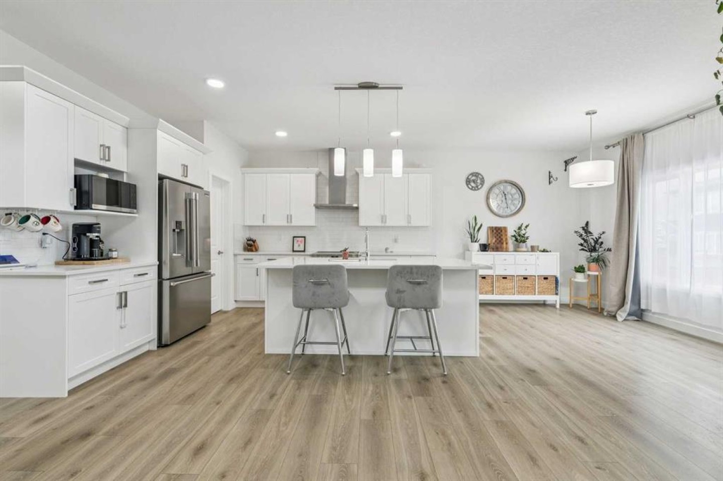Dishwasher, Dryer, Electric Stove, Microwave, Range Hood, Refrigerator, Washer, Window Coverings