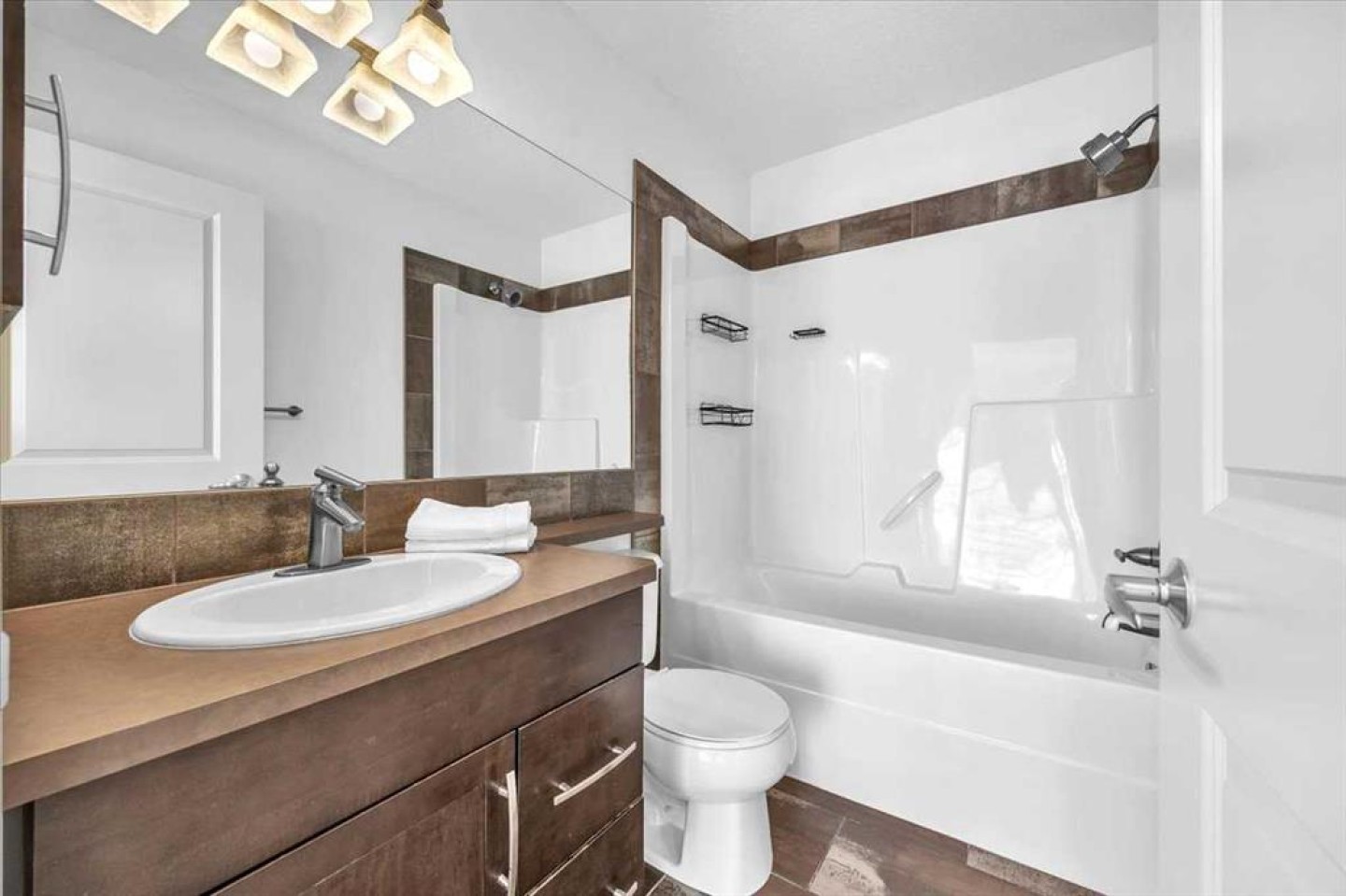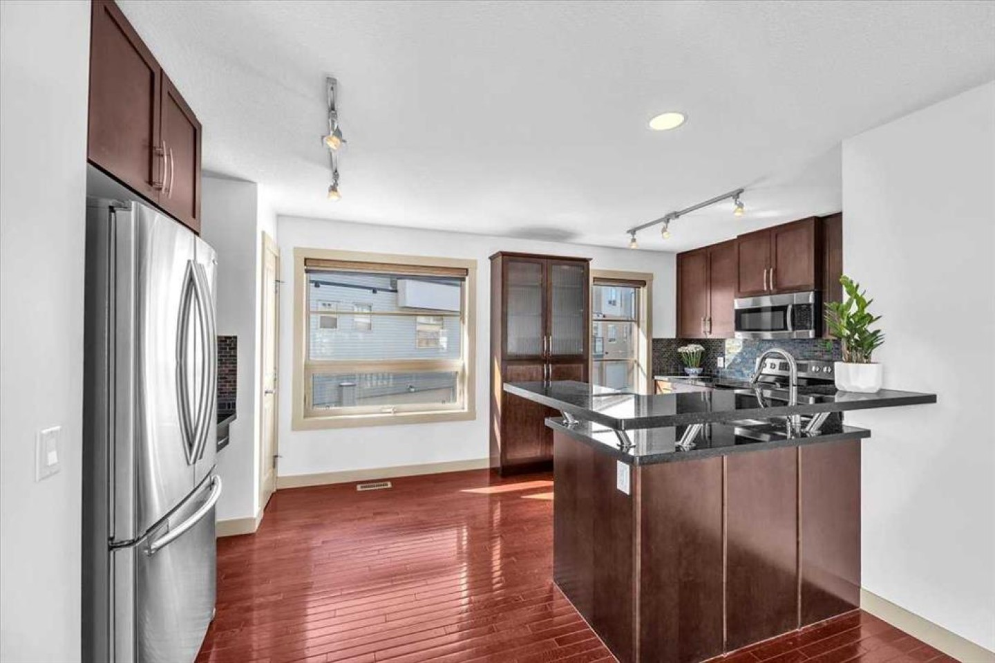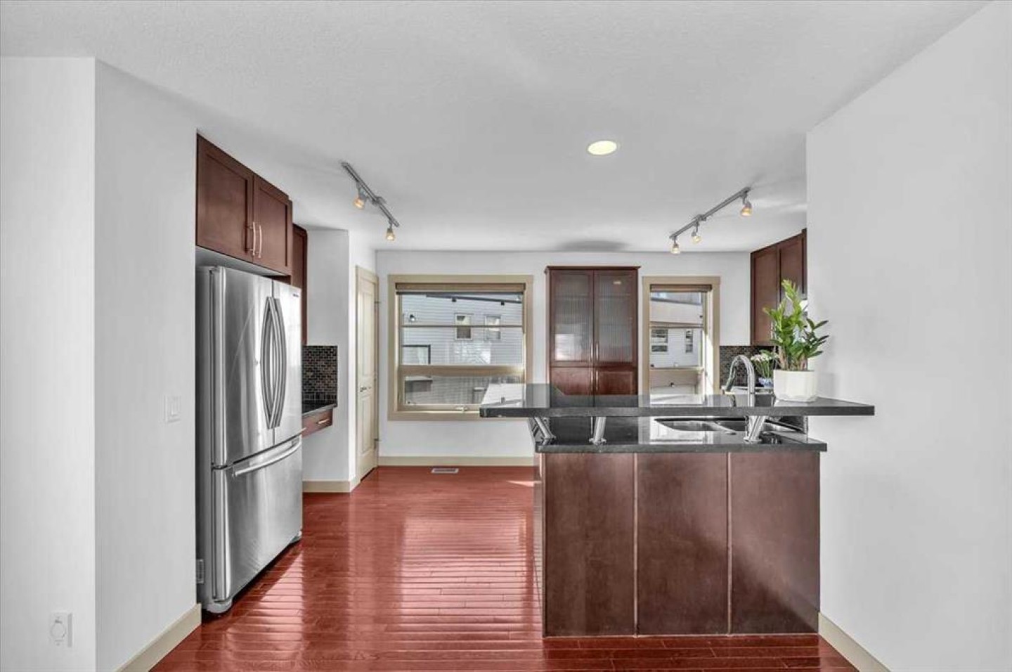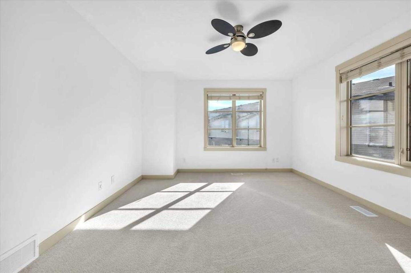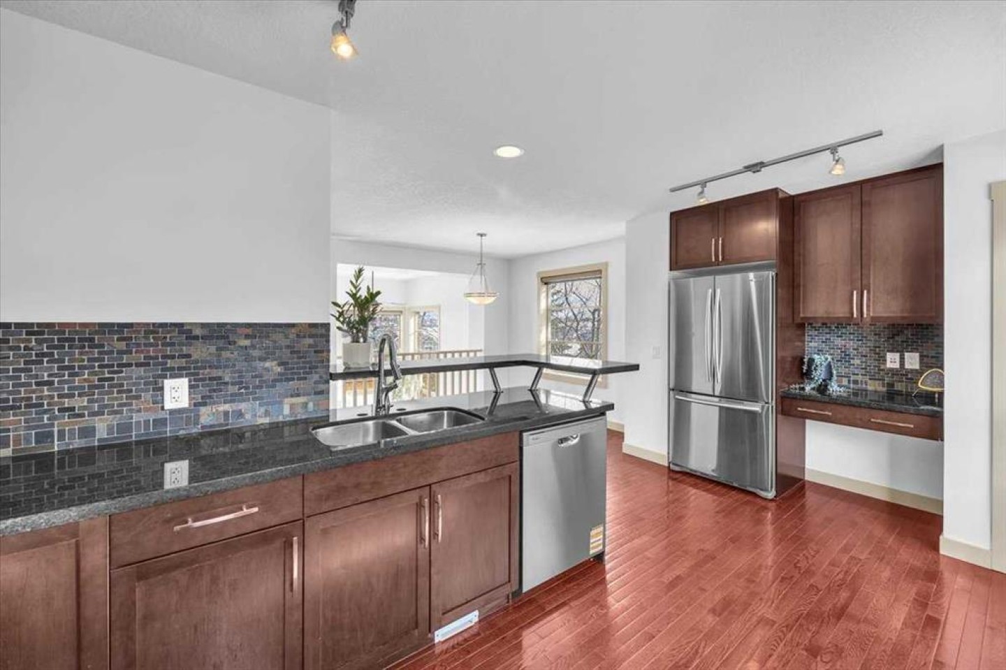 Welcome to Mosaic of Aspen Hills, an upscale townhome community nestled in the highly sought-after Aspen Woods. This bright and beautifully refreshed townhome offers an ideal layout, exceptional natural light, and an unbeatable west Calgary location. The open-concept main floor is highlighted by dramatic two-storey windows that flood the home with natural light. The spacious kitchen features granite countertops, stainless steel appliances, a pantry, ample cabinetry, desk area, and a large eat-up island perfect for casual dining or entertaining. The adjacent dining area provides flexible space for hosting or everyday living. Hardwood flooring runs throughout the main and second level, adding warmth and elegance. Upstairs you’ll find two generously sized primary suites, each complete with full ensuite bathrooms and walk-in closets—a rare and highly functional layout. The upper-level laundry and oversized landing area add everyday convenience. Additional features include an attached double garage and an unfinished basement offering excellent storage or future development potential. This home has been professionally cleaned, freshly painted, and features brand new carpet, making it completely move-in ready. Enjoy living just minutes from boutique shopping and dining at Aspen Landing Shopping Centre, recreation at Westside Recreation Centre, top-rated private and public schools, scenic pathways, playgrounds, and quick access to 17th Avenue, Stoney Trail and the CTrain. Turnkey living in one of Calgary’s most desirable west-side communities. Book your showing today!