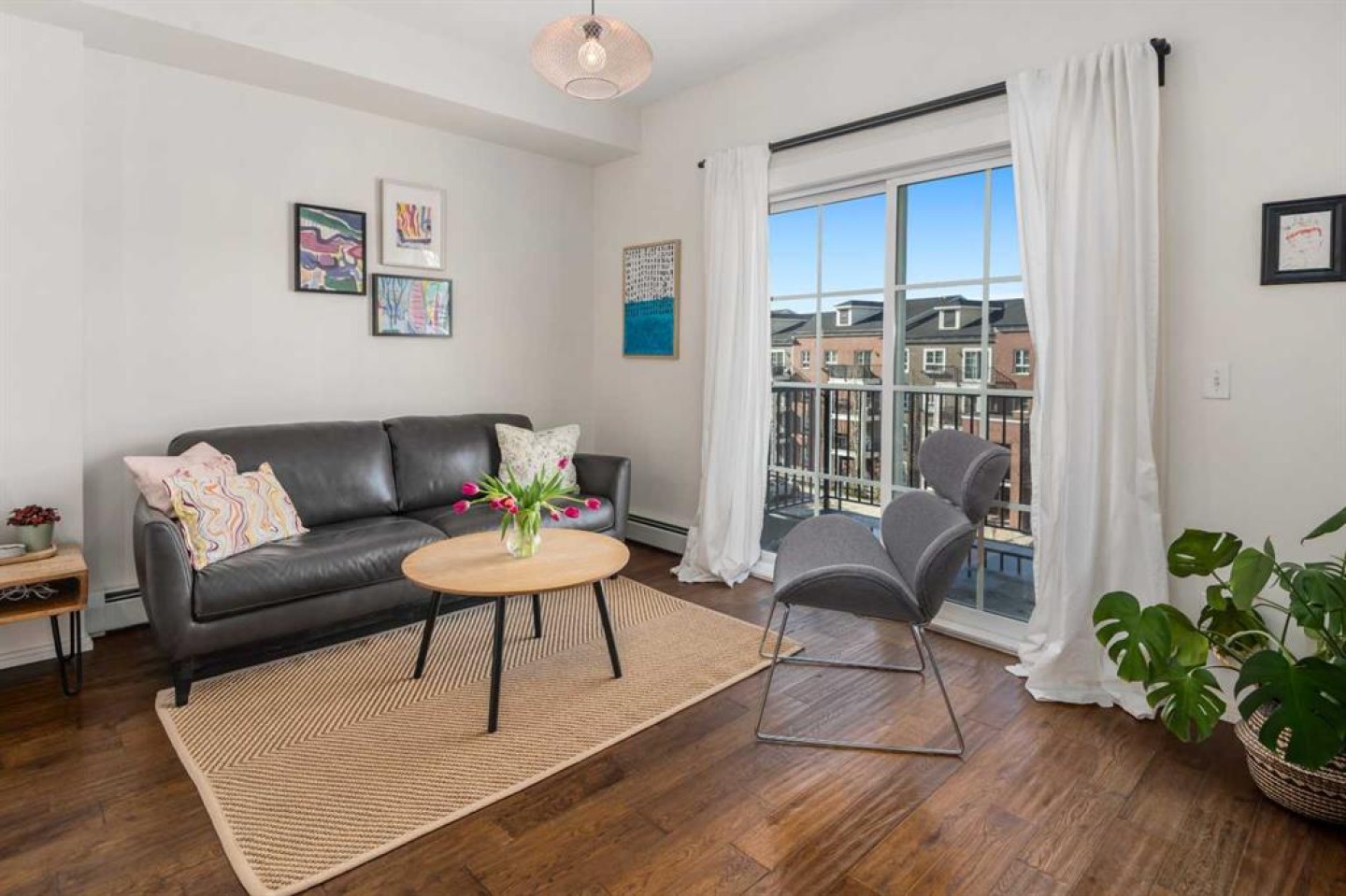 Welcome to 1403, 279 Copperpond Common SE – a beautifully updated two-bedroom, one-bathroom apartment in the desirable community of Copperfield. Offering 552 square feet of comfortable and contemporary living space with the low condo fee of $317.30. this condo is the perfect stylish, well kept, move-in-ready home. Upon entering, you'll immediately notice the fresh feel created by marble tile in the foyer, 9ft ceilings, premium engineered hardwood flooring, beautiful views and lighting. The open-concept design seamlessly connects the living, dining, and kitchen areas, providing an ideal space for entertaining and everyday meals. The kitchen features all stainless steel appliances, ample counter space, and abundant cabinetry. Adjacent to the kitchen, the dining area flows naturally into the spacious living room, bathed in natural light from large windows. The primary bedroom is spacious and shares the large NW facing windows. The second bedroom is equally spacious and versatile, perfect for a guest room, home office, or additional living space. The 4-piece bathroom is conveniently located next to the entrance and out of the way. The in-suite laundry adds an extra layer of convenience to your daily routine. Step outside onto the Northwest-facing balcony, where you'll find a gas hook-up perfect for BBQ enthusiasts, making it an ideal spot for outdoor dining and relaxation. Additionally, there is one titled parking surface stall and a storage locker in the parkade for even more convenience. Located just minutes from shopping, restaurants, public transportation, and many other amenities, with quick access to the South Health Campus, this condo offers both comfort and convenience in a prime location.