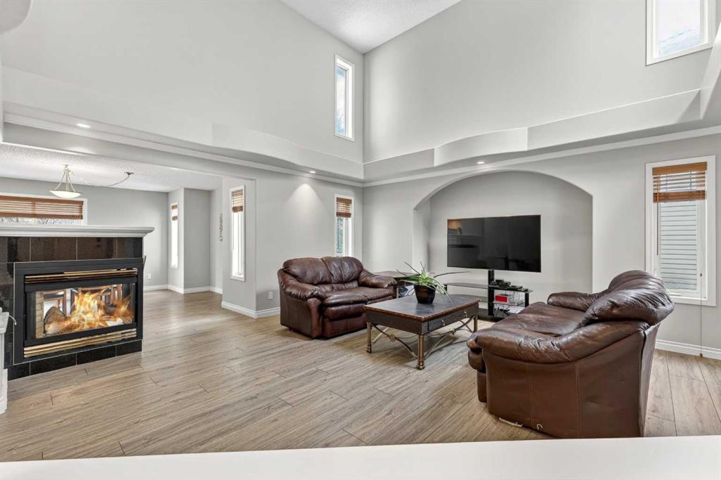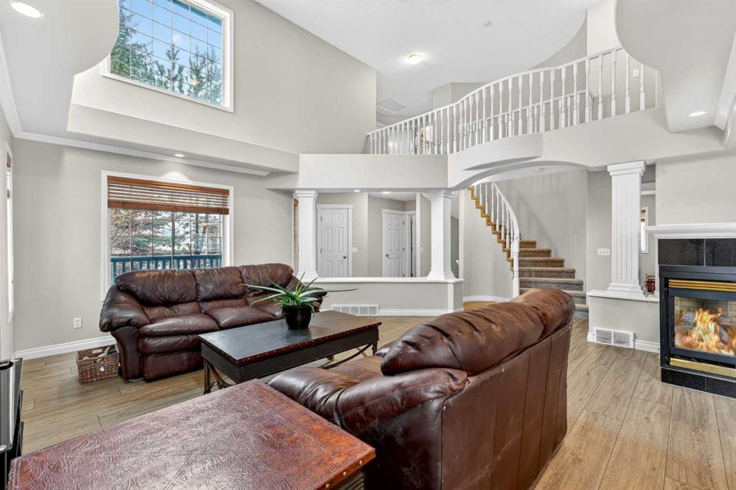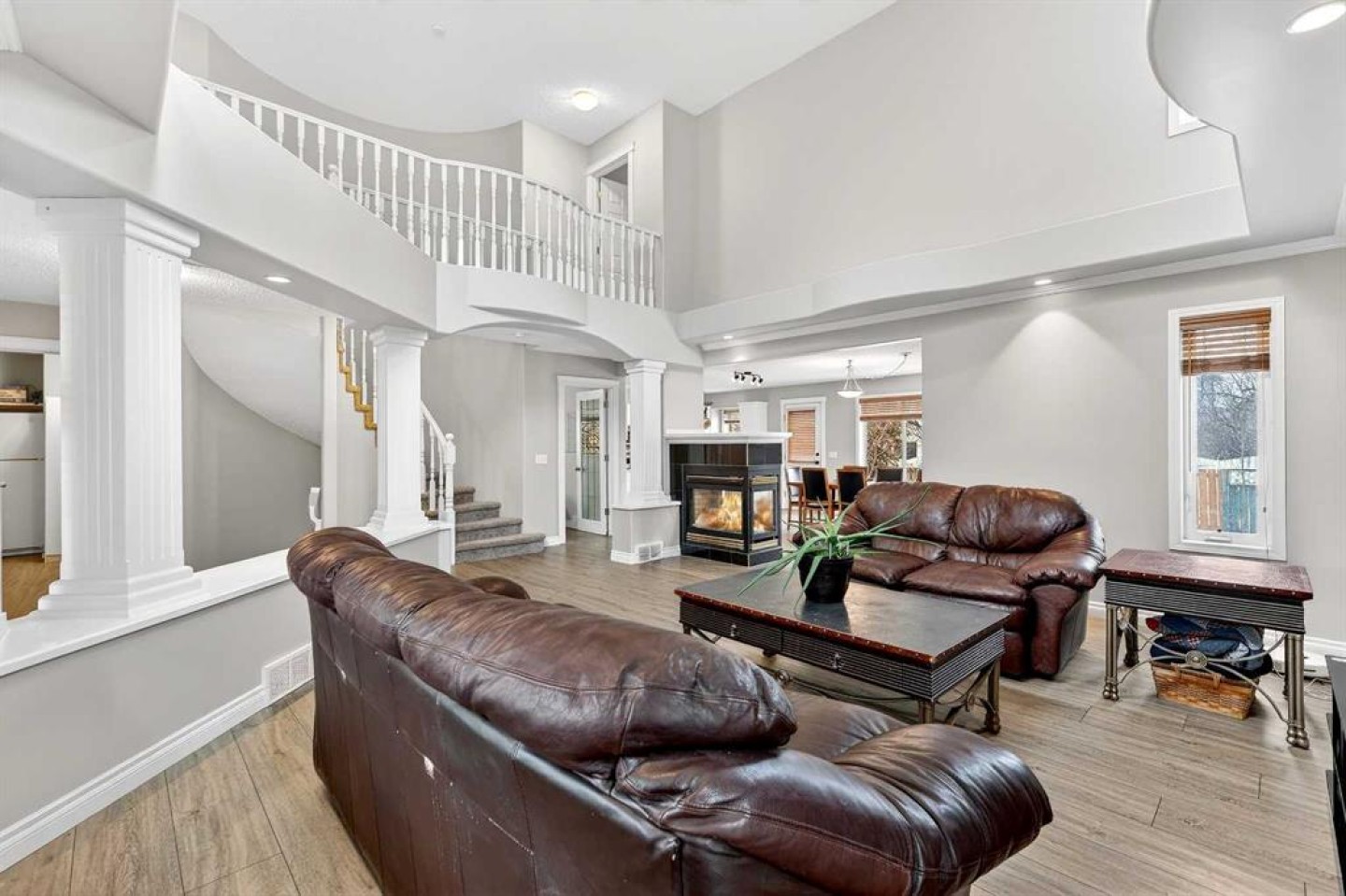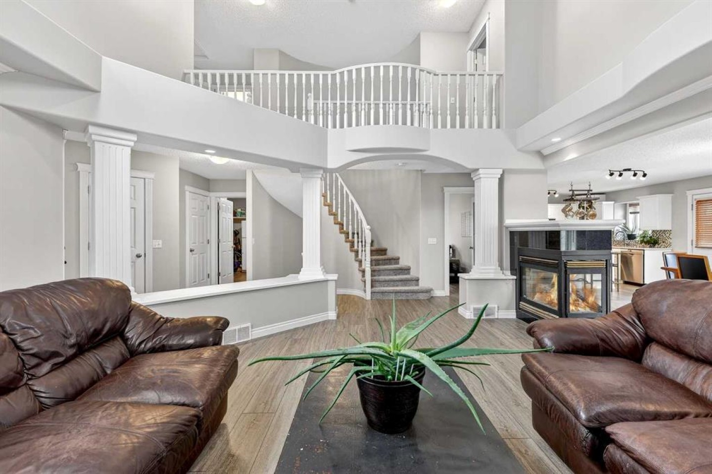 Welcome to 125 Crystalridge Drive, nestled in the highly sought-after community of Crystal Ridge in Okotoks—a postcard-perfect town where small-town charm meets modern convenience. Known for its historic Old Towne, scenic pathways, and wonderful walkability to quaint coffee shops and locally loved restaurants, Okotoks offers a lifestyle that is both vibrant and relaxed. From ball games and community events to everyday amenities just minutes away, it’s easy to see why this is considered one of the most desirable places to raise a family. Presenting over 3,300 square feet of newly refreshed developed living space, this beautifully updated home offers an abundance of room for both everyday living and entertaining. From the moment you step inside, you are welcomed by a stunning open great room with soaring 17-foot ceilings and expansive windows that fill the space with natural light. Brand new luxury vinyl plank flooring flows throughout the main level, creating warmth and cohesion, while a three-sided feature fireplace provides an elegant focal point enjoyed from both the living and dining areas. The spacious dining room seamlessly connects to the refreshed kitchen, where thoughtful updates include brand new quartz countertops, central island, stylish backsplash, refinished cabinetry, corner pantry & new fridge and stove—perfectly designed for both family living and entertaining. Completing the main level is a dedicated office or den, a convenient powder room, and a large laundry area. A graceful curved staircase leads to the upper level where thoughtful design continues. Two secondary bedrooms and a full main bathroom are situated on one side, while an open catwalk with banister leads to the impressive primary retreat. This expansive bedroom offers ample space for a full suite of furnishings and features a beautiful walk-in closet accessed through double French doors. The five-piece ensuite is a relaxing sanctuary with dual vanities, a deep soaker tub, standalone shower, and a skylight that fills the space with natural light. The fully finished basement expands the home’s versatility with two additional bedrooms, a large recreation room, a flexible bonus space, a full bathroom, and a wet bar—ideal for entertaining guests or creating the ultimate family gathering area. Brand new carpet throughout the upper level and basement adds comfort and a fresh finishing touch. Situated on a large lot with convenient back lane access, the property offers excellent potential for RV accessibility to the backyard. The location is equally impressive—walking distance to schools and the beloved Crystal Shores Lake, Okotoks’ only lake community. Here, residents enjoy four seasons of recreation, from summer days spent swimming, fishing, and playing beach volleyball to hockey games and skating in the winter. With the warmth of a small-town community and quick access to Calgary, Okotoks truly offers the best of both worlds-where families grow, memories are made and community truly matters.