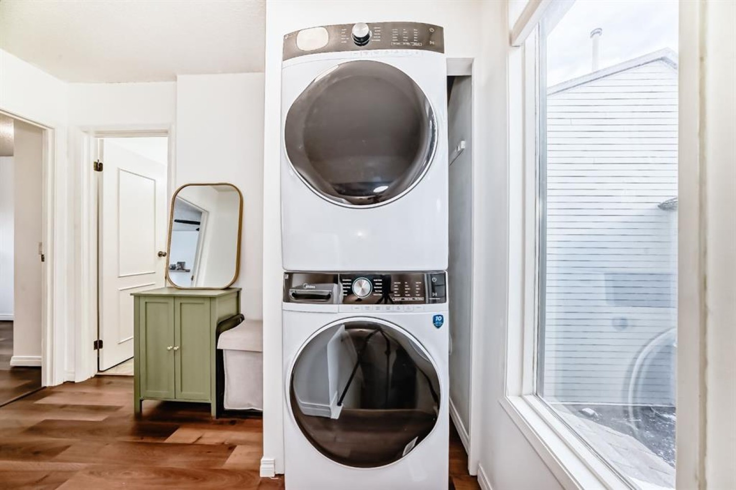 Experience this delightful inner-city townhouse in Greenview, ideally located on a corner lot with low condo fees. Recently refreshed with new paint and flooring, this well-maintained residence offers 2 bedrooms and 1 full bathroom upstairs, perfect for a small or growing family. The bright living room features 8-foot ceilings and opens to a versatile den, ideal for a home office. Additional storage includes a dedicated room and space under the stairs. Updated appliances include a washer, dryer, and dishwasher. Flexible condo’s pet policy allows for up to two large dogs without any weight restrictions. Enjoy convenient access to Deerfoot Trail, McKnight Boulevard, downtown, and the airport, with public transit just steps away. Nearby, you’ll find walking and biking trails, dog parks, and a variety of restaurants within walking distance or a quick 5-minute drive. Don’t miss out—book your showing today