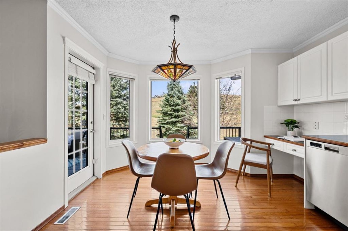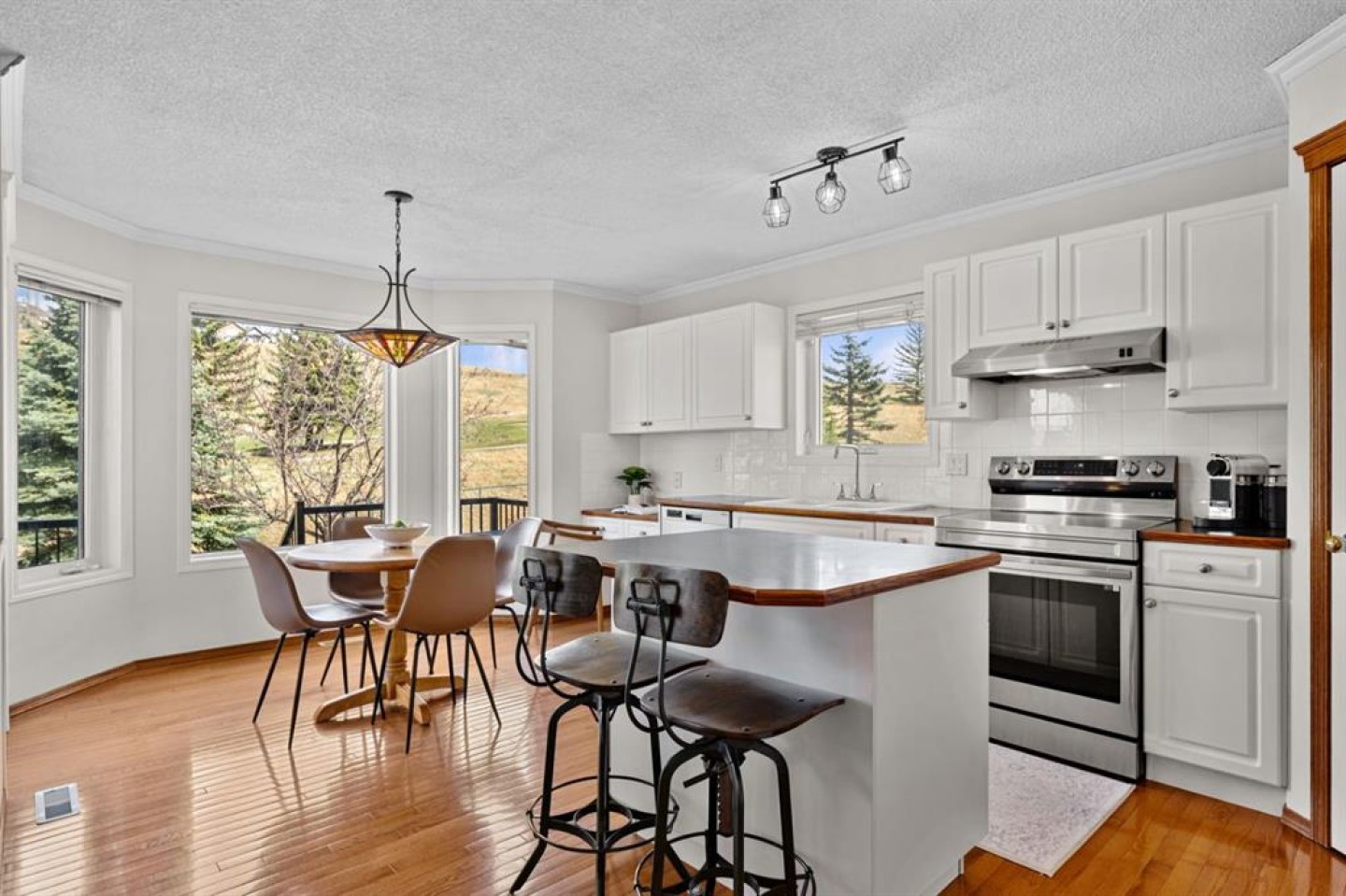 Welcome to this BEAUTIFUL HOME offering OVER 2000 sq. ft of finished living space and FIVE bedrooms, perfectly located in the sought after community of Gleneagles. Backing directly onto the FAIRWAYS OF THE GLENEAGLES GOLF COURSE. This property offers peaceful views, and a backyard retreat surrounded by beautifully landscaped grounds and no neighbours directly behind you. Step inside to a grand entrance with soaring VAULTED ceilings, creating an immediate sense of space and allowing an abundance of natural light to fill the home. The main floor features a formal living room and dining area perfect for entertaining family and friends. Towards the back of the home, you'll find a warm and inviting family room with a beautiful FIREPLACE, seamlessly connected to the kitchen. The kitchen features NEW STAINLESS STEEL APPLIANCES, ample storage and a convenient built-in desk space. The cozy kitchen nook offers the perfect vantage point to enjoy your morning coffee/tea while overlooking the meticulously maintained backyard oasis, featuring mature trees, garden boxes and a cozy fire pit seating area to enjoy those relaxing evenings. Upstairs the primary bedroom features a walk-in closet and a 5 piece ensuite bathroom along with two more spacious bedrooms and a full bathroom. From the second level. you can even enjoy the Breathtaking MOUNTAIN VIEWS. The Lower level offers a large sound proofed bedroom plus a newly upgraded 2nd bedroom/office space. Recent Upgrades include - a NEW ROOF (4 years), Hot Water Tank (3 years), Stainless Steel Appliances including washer/dryer (3 years), fireplace (1 year). Gleneagles offers quick access to Calgary while maintaining the quiet scenic charm that Cochrane is known for. Residents enjoy access to the towns extensive pathway system, with GLENBOW RANCH Provincial Park just minutes away, featuring breathtaking biking and walking trails overlooking the Bow River. Privacy and Tranquility await. Book your showing today and let this exceptional property speak for itself.