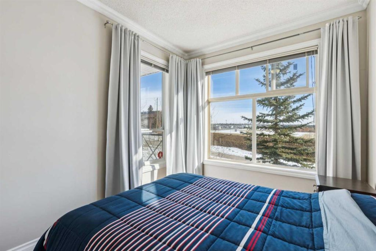 Welcome to this absolutely stunning and incredibly affordable 1-bedroom + den apartment in the highly sought-after lake community of Arbour Lake in NW Calgary. Perfectly positioned facing a peaceful green space with beautiful downtown views, this bright and inviting unit offers an ideal combination of comfort, functionality, and lifestyle. As you enter the home, you’re welcomed into a spacious foyer that immediately showcases the open-concept design and natural flow of the unit. To your right, you’ll find a large den enclosed with elegant French doors, complete with a built-in desk and shelving—an ideal space for a home office, reading room, or even a comfortable guest bedroom. To the left is a thoughtfully designed kitchen featuring plenty of cabinetry, and a full-height tile backsplash that adds a stylish touch. Just off the kitchen is a convenient pantry/laundry room, offering extra functionality and storage while keeping everything neatly tucked away. The kitchen opens seamlessly into the bright and spacious living room, where large windows flood the space with natural light, creating a warm and inviting atmosphere. Step through the glass patio door onto your private balcony, complete with a gas BBQ line—perfect for outdoor dining or relaxing while taking in the stunning views and peaceful surroundings. The primary bedroom is generously sized and features a walk-in closet, providing ample storage space. Nearby, the four-piece bathroom offers a deep tub with full-height tile surround, plenty of counter space, and a clean, functional layout. This well-managed building offers a fantastic sense of community and an impressive list of amenities including inviting resident lounges with kitchens and fireplaces, a guest suite for visitors, bike storage, a workshop, and a beautifully landscaped courtyard with an ornamental fountain. Your titled underground parking stall (#53) is conveniently located with the storage locker (#81) directly in front, making everyday living even more convenient. Living in Arbour Lake means enjoying year-round lake privileges, including swimming, fishing, boating, skating, tennis courts, beaches, playgrounds, and scenic walking paths. You’re also just minutes from shopping, restaurants, transit, and major roadways. This beautifully maintained, bright, and move-in ready home offers exceptional value in one of Calgary’s most desirable lake communities. Don’t miss your opportunity to view this fantastic property!