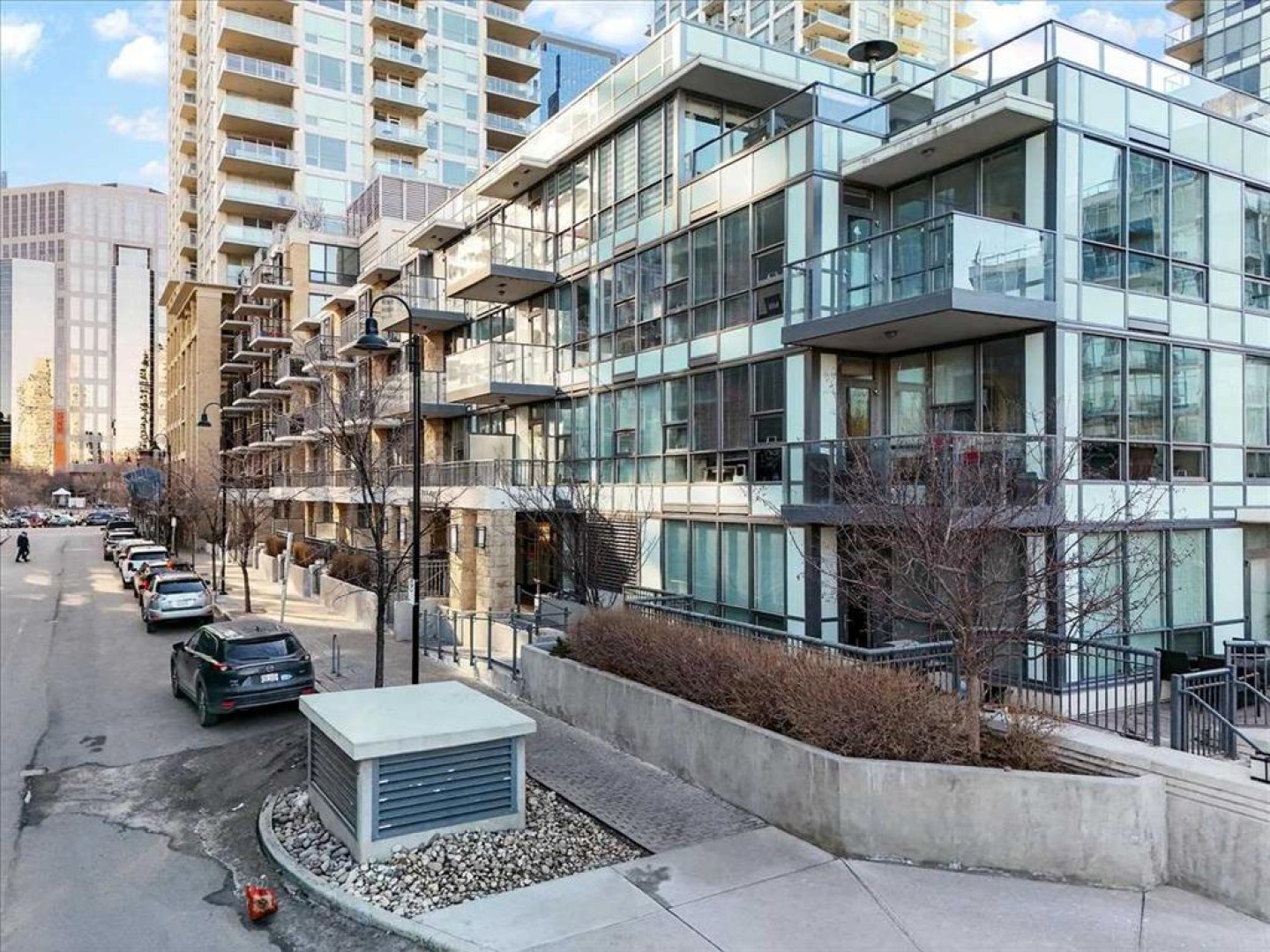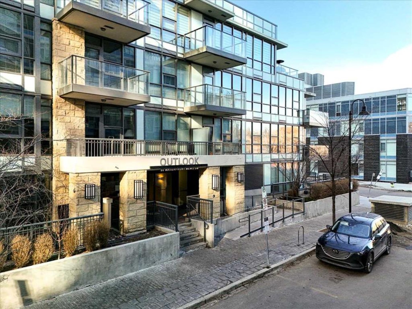 Experience refined urban living in this stylish riverfront residence offering approximately 601 sqft of thoughtfully designed living space in one of Calgary’s most desirable waterfront communities. This elegant 1-bedroom, 1-bathroom condo features a bright open-concept layout where the contemporary kitchen flows seamlessly into the inviting living area, creating an ideal space for both relaxing and entertaining. The spacious bedroom provides a comfortable retreat, while the well-appointed 4-piece bathroom and convenient in-suite laundry add everyday practicality. Step outside to your private balcony to enjoy fresh air and the vibrant urban surroundings. This exceptional home also includes underground heated parking and assigned storage, offering comfort and convenience year-round. Residents enjoy premium building amenities including a fitness center, hot tub, and party room, all while being just steps from scenic river pathways, parks, restaurants, cafes, and downtown amenities—perfectly blending luxury, lifestyle, and location.