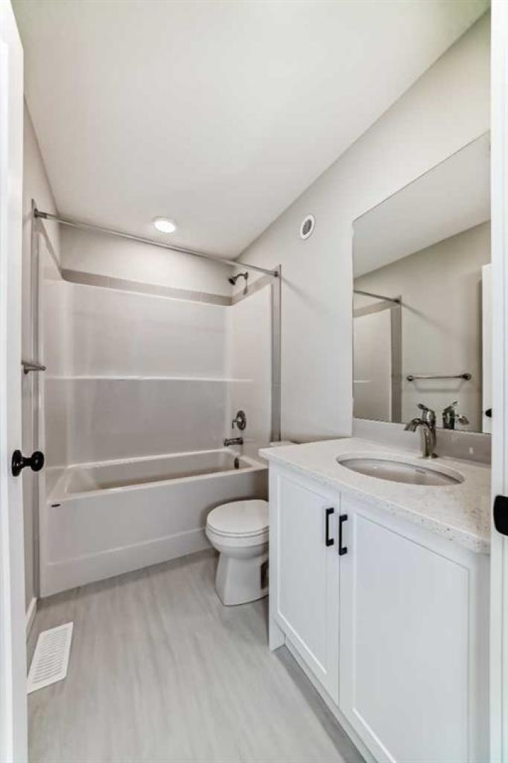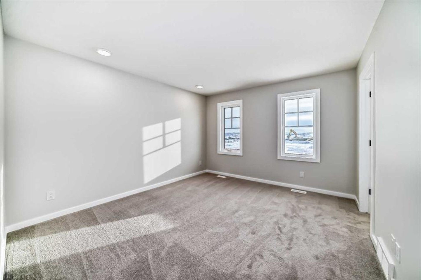 The kitchen understands real life. QUARTZ SURFACES, taller cabinetry, a proper CHIMNEY HOODFAN, and a BUILT-IN MICROWAVE integrated into the cabinetry keep the counters clear for the things that actually belong there—coffee in the morning, groceries spread out after work, a cutting board when dinner becomes a little more ambitious than originally planned. The island is extended for exactly the reason islands exist: people gather here whether you planned for it or not. Upstairs, the layout gives everyone a little breathing room. A CENTRAL BONUS ROOM becomes the natural landing spot for movie nights, gaming marathons, homework sessions, or the quiet moment when the house finally settles down for the evening. The primary bedroom offers its own walk-in closet and ensuite, with two additional bedrooms nearby and UPPER LAUNDRY exactly where it belongs—because carrying baskets up and down stairs was never a good idea in the first place. The basement has already been set up properly: 9-FOOT CEILINGS, a SEPARATE EXTERIOR ENTRY, and ROUGH-INS FOR A FUTURE BATHROOM, BAR SINK, AND WASHER/DRYER are already in place. The mechanical side of the home carries the same long-view thinking with 200-AMP ELECTRICAL SERVICE, EV CHARGER ROUGH-IN, a SOLAR CONDUIT running from attic to mechanical, and TANKLESS HOT WATER—in other words, when the time comes to finish it, the heavy lifting is already done. The space has real flexibility and the kind of infrastructure decisions that quietly make a home far more capable over time. Outside, a REAR DECK AND LANE-ACCESS parking pad keep everyday living simple while still leaving yard space to enjoy. And all of it sits in Rangeview Springs, a new southeast Calgary community designed around CONNECTED PATHWAYS, WIDE BOULEVARDS, AND GREENSPACES that link neighbours and daily life together. A house with this many smart decisions deserves more than a quick scroll—come see how it all comes together in person. Ready to call home in late April! • PLEASE NOTE: Photos are of a DIFFERENT Spec Home of the same model – fit and finish may differ. Interior selections and floorplans shown in photos.