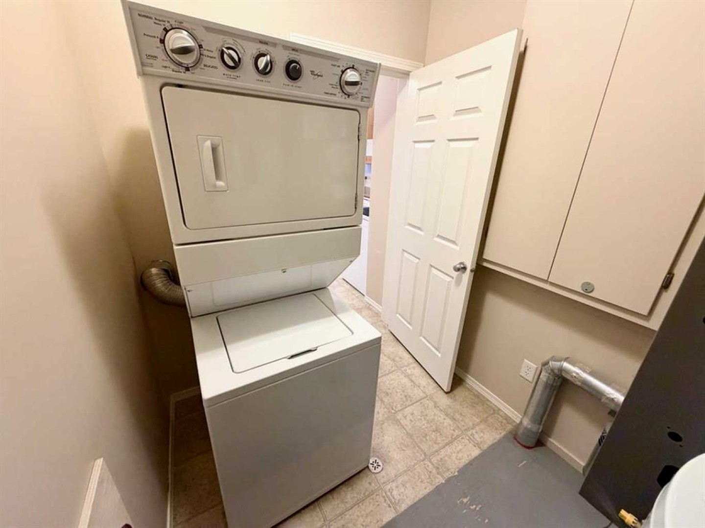 Dishwasher, Electric Stove, Microwave, Refrigerator, Washer/Dryer Stacked, Window Coverings