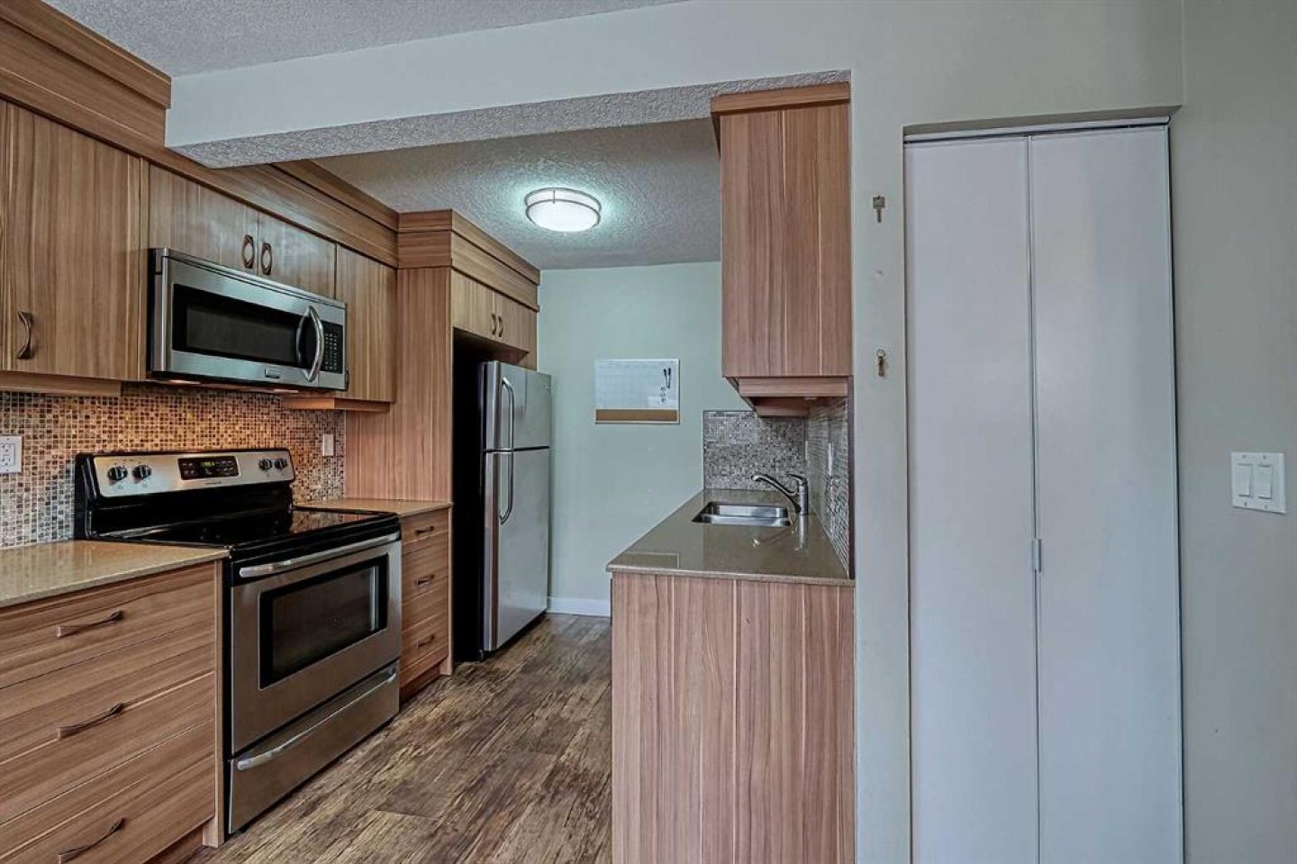 Welcome to a gorgeous UPDATED 3 bedroom townhome located in the sought after Madigan Village. Your future home offers a RENOVATED kitchen with GRANITE countertops, BEAUTIFUL cupboards, FANCY backsplash, STAINLESS STEEL APPLIANCES and laminate flooring; a living room with access to a private backyard; UPDATED 4PC bathroom and 3 spacious bedrooms. Furnace was replaced with a mid-efficiency furnace in 2014. Basement is wide open for future development. 2 PARKING STALLS right in front of the unit for your convenience! Well run complex and excellent location with walking distance (LITERALLY!) to 3 schools - St. Martha's (K9), Dr. Gladys McKelvie Egbert (7-9), and Roland Michener (K-6). PLUS the complex backs onto the vast BIG MARLBOROUGH PARK. Come view it today and get ready to move in!