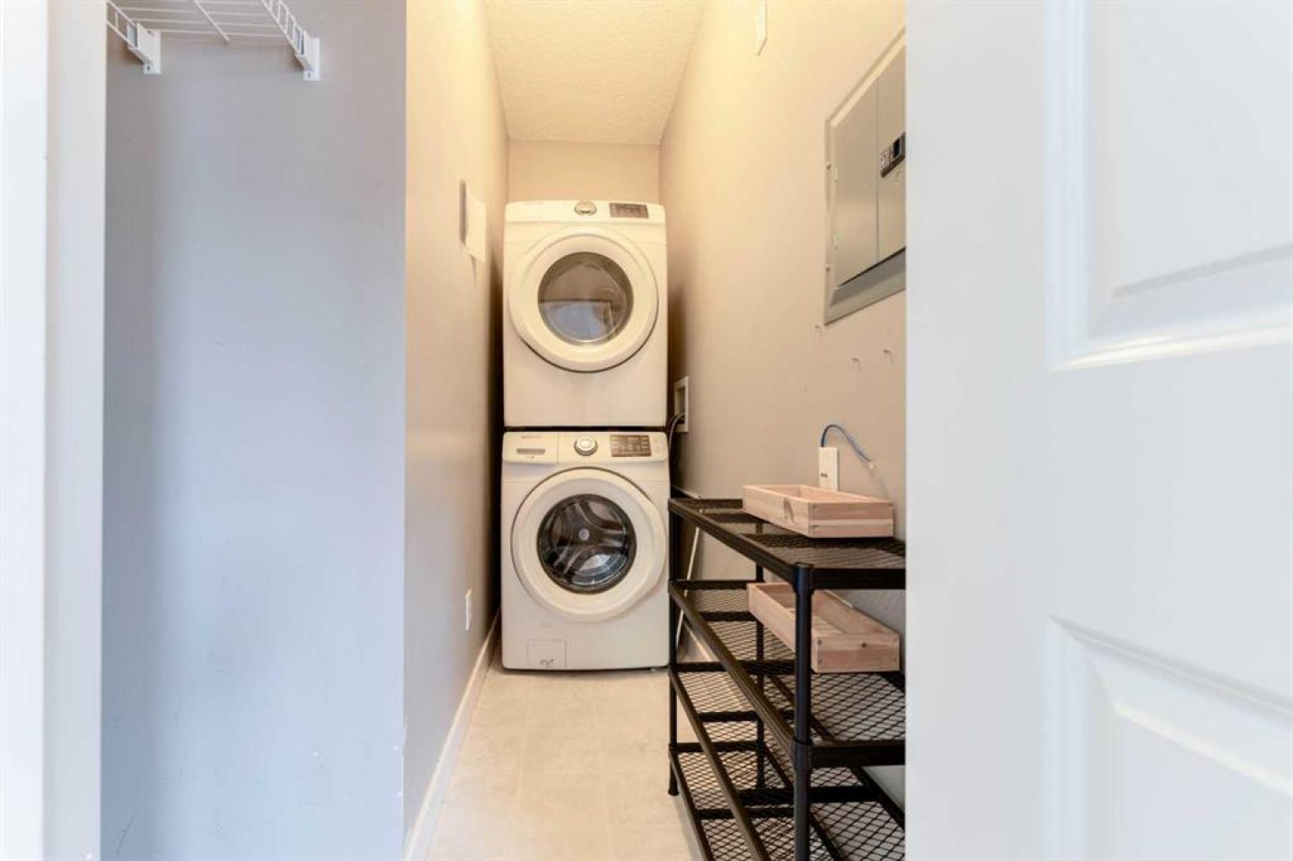 Electric Stove, Microwave Hood Fan, Refrigerator, Washer/Dryer Stacked
