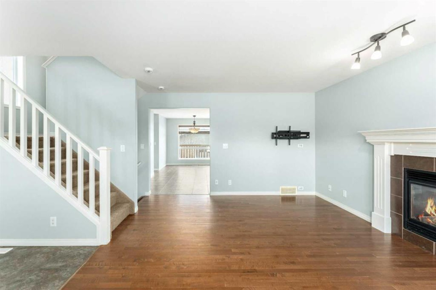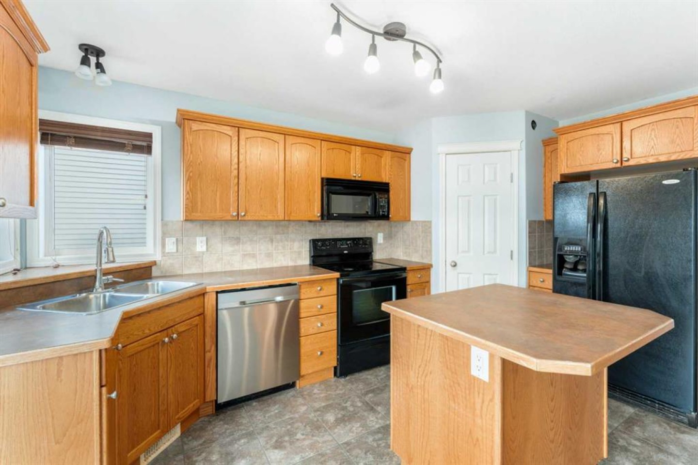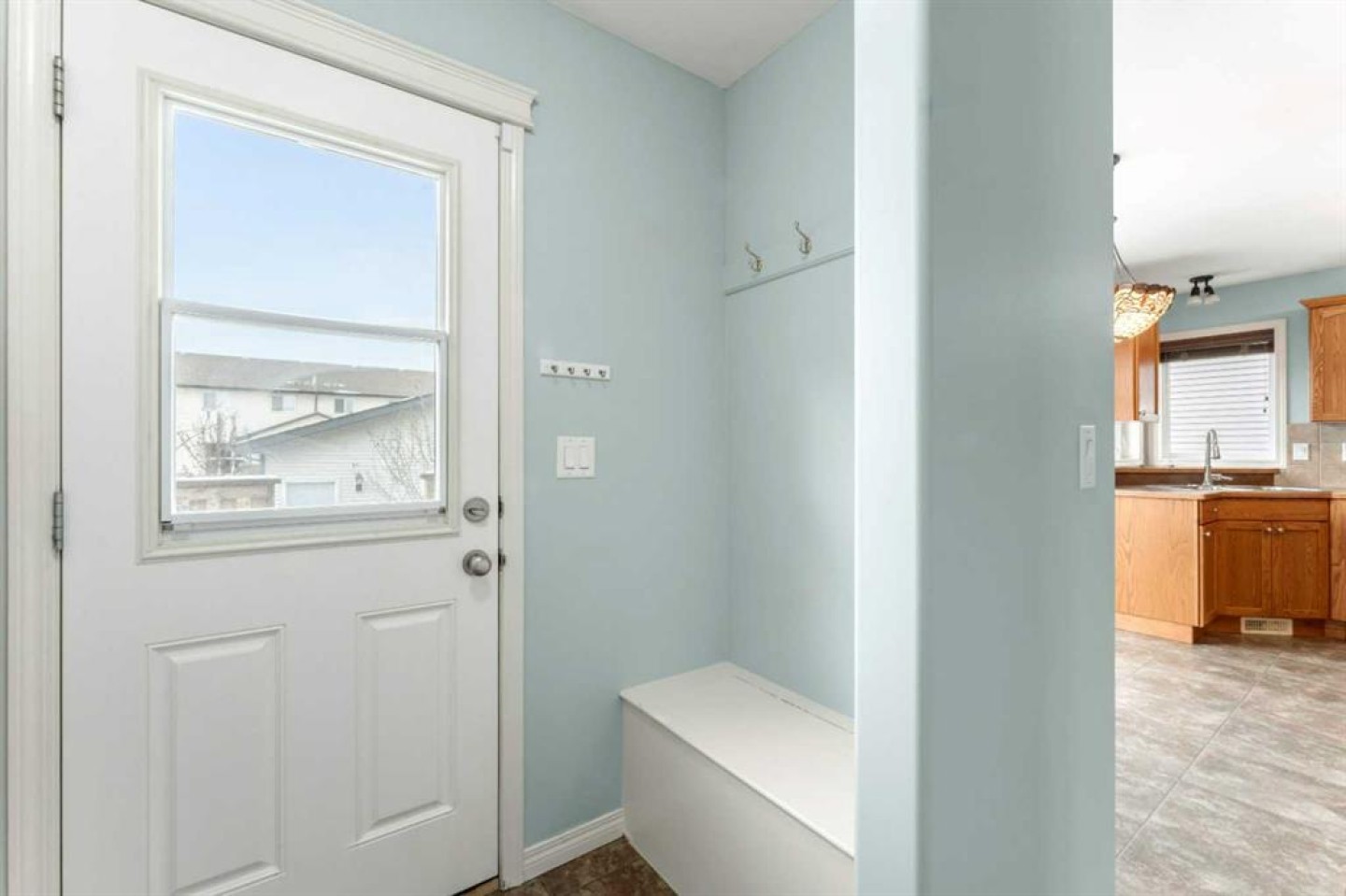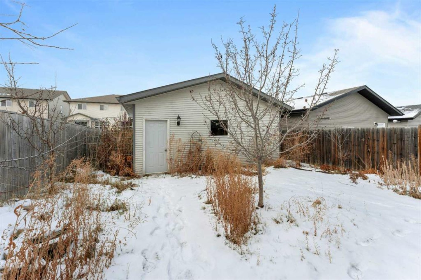 Charming Two-Storey Home in Lakeway Landing on a Quiet Cul-de-Sac with a double detached garage! Welcome to this warm and inviting 2-storey home perfectly located near a park. Offering 1,437 sq. ft. of finished living space is freshly painted! This property is ideal for families and anyone seeking comfort, functionality, and room to grow. Enjoy the best of both worlds with a covered front veranda that captures the morning sun and a rear deck perfect for relaxing in the evening light. Both the front and back entrances include convenient built-in storage benches, adding charm and practicality. The main floor welcomes you with a comfortable living room with a cozy fireplace, a kitchen with island and walk in pantry, main-floor laundry, and a convenient half bath. The upper level features three bedrooms, including a spacious primary suite with a full ensuite and walk-in closet, plus an additional full bath. The undeveloped basement is ready for your ideas.  The landscaped yard offers a peaceful outdoor retreat with fruit trees, berries, grapes, and low-maintenance perennials. Completing the property is a double detached garage.