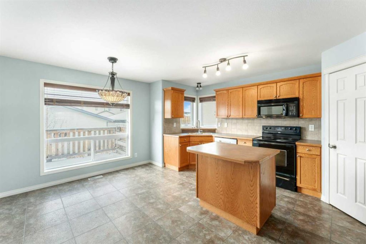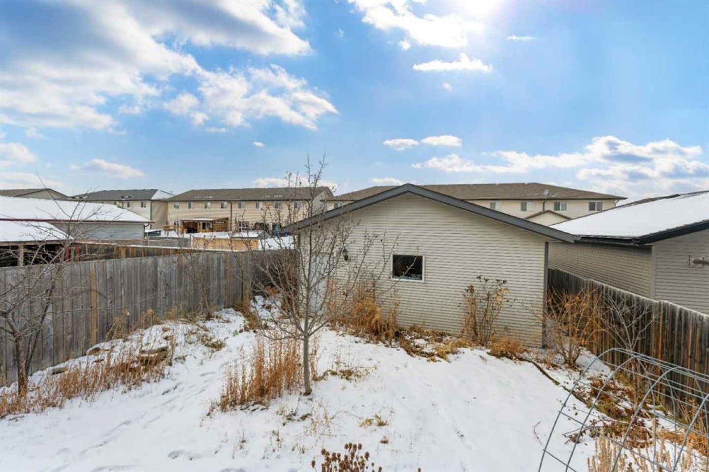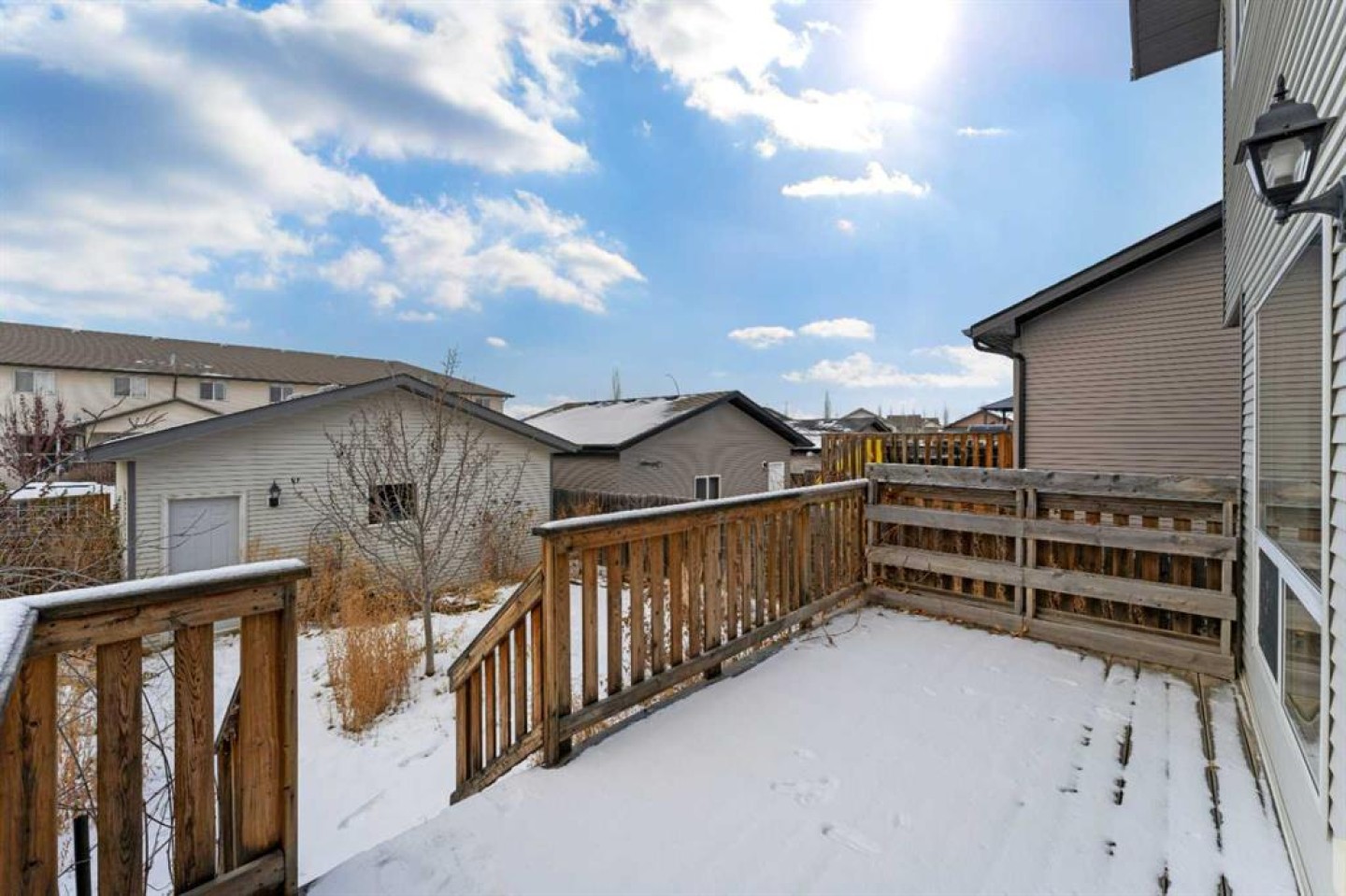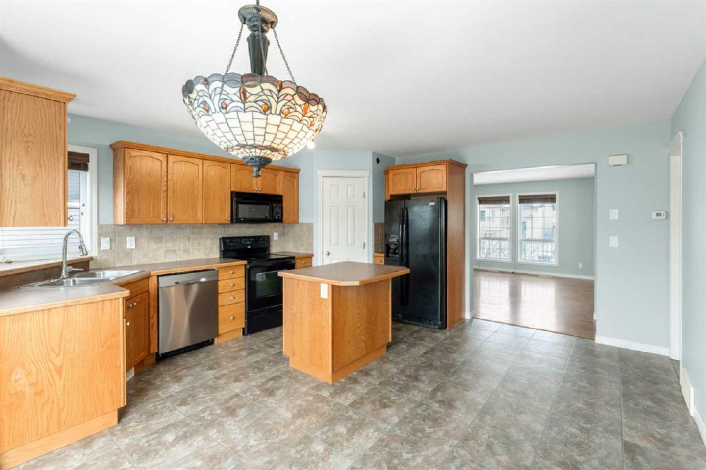 Charming Two-Storey Home in Lakeway Landing on a Quiet Cul-de-Sac with a double detached garage! Welcome to this warm and inviting 2-storey home perfectly located near a park. Offering 1,437 sq. ft. of finished living space is freshly painted! This property is ideal for families and anyone seeking comfort, functionality, and room to grow. Enjoy the best of both worlds with a covered front veranda that captures the morning sun and a rear deck perfect for relaxing in the evening light. Both the front and back entrances include convenient built-in storage benches, adding charm and practicality. The main floor welcomes you with a comfortable living room with a cozy fireplace, a kitchen with island and walk in pantry, main-floor laundry, and a convenient half bath. The upper level features three bedrooms, including a spacious primary suite with a full ensuite and walk-in closet, plus an additional full bath. The undeveloped basement is ready for your ideas.  The landscaped yard offers a peaceful outdoor retreat with fruit trees, berries, grapes, and low-maintenance perennials. Completing the property is a double detached garage.