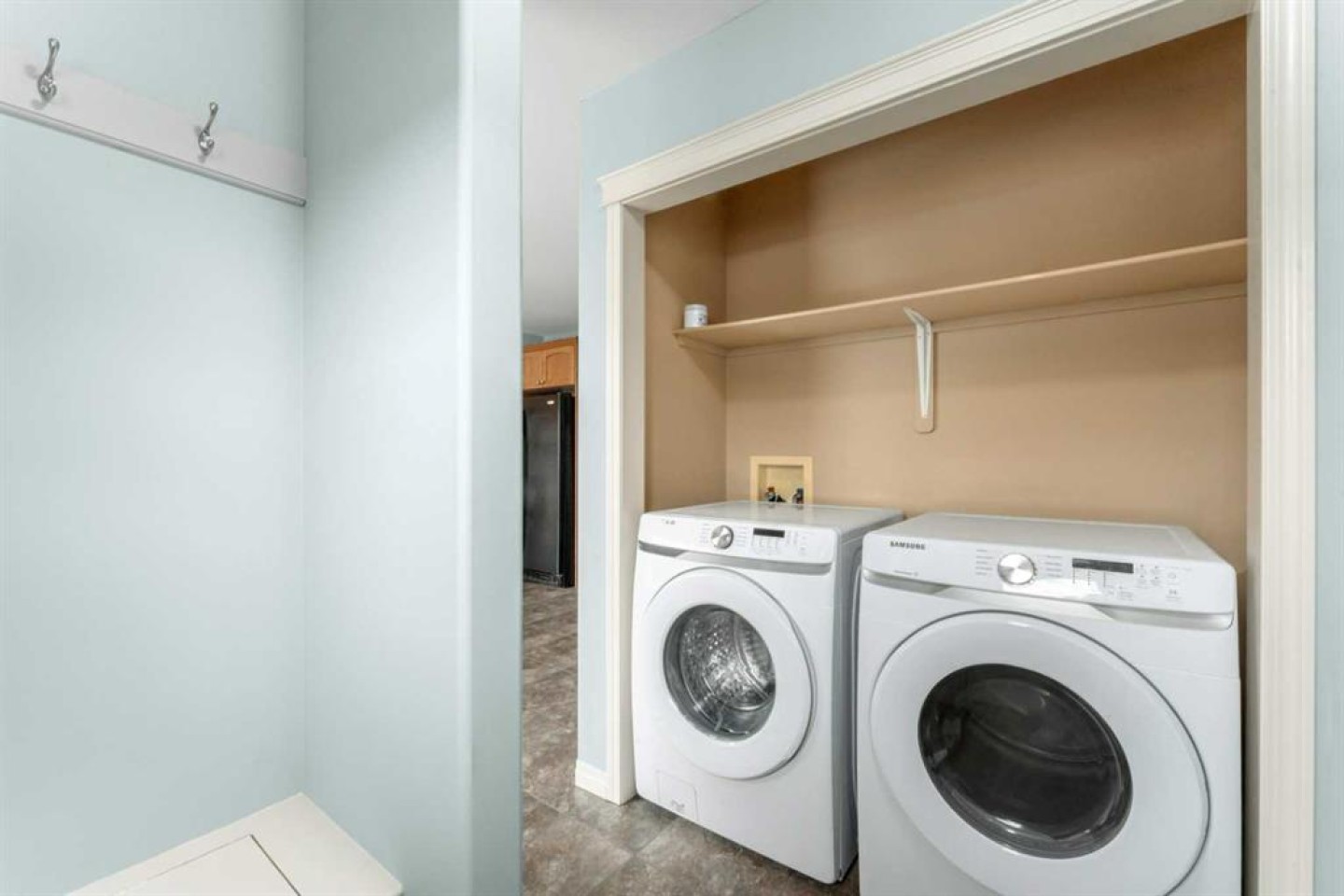 Fridge, stove, built in dishwasher & microwave, washer & dryer, all blinds, garage door opener