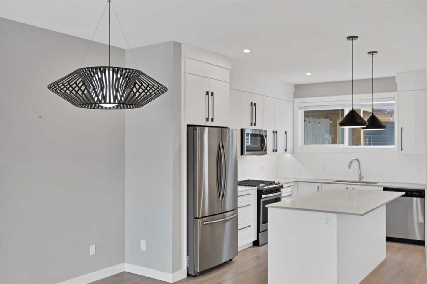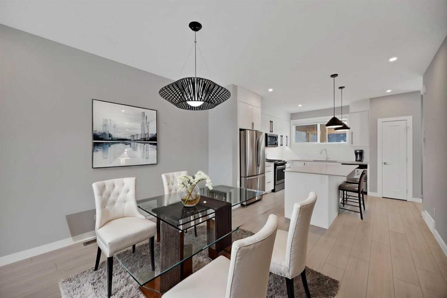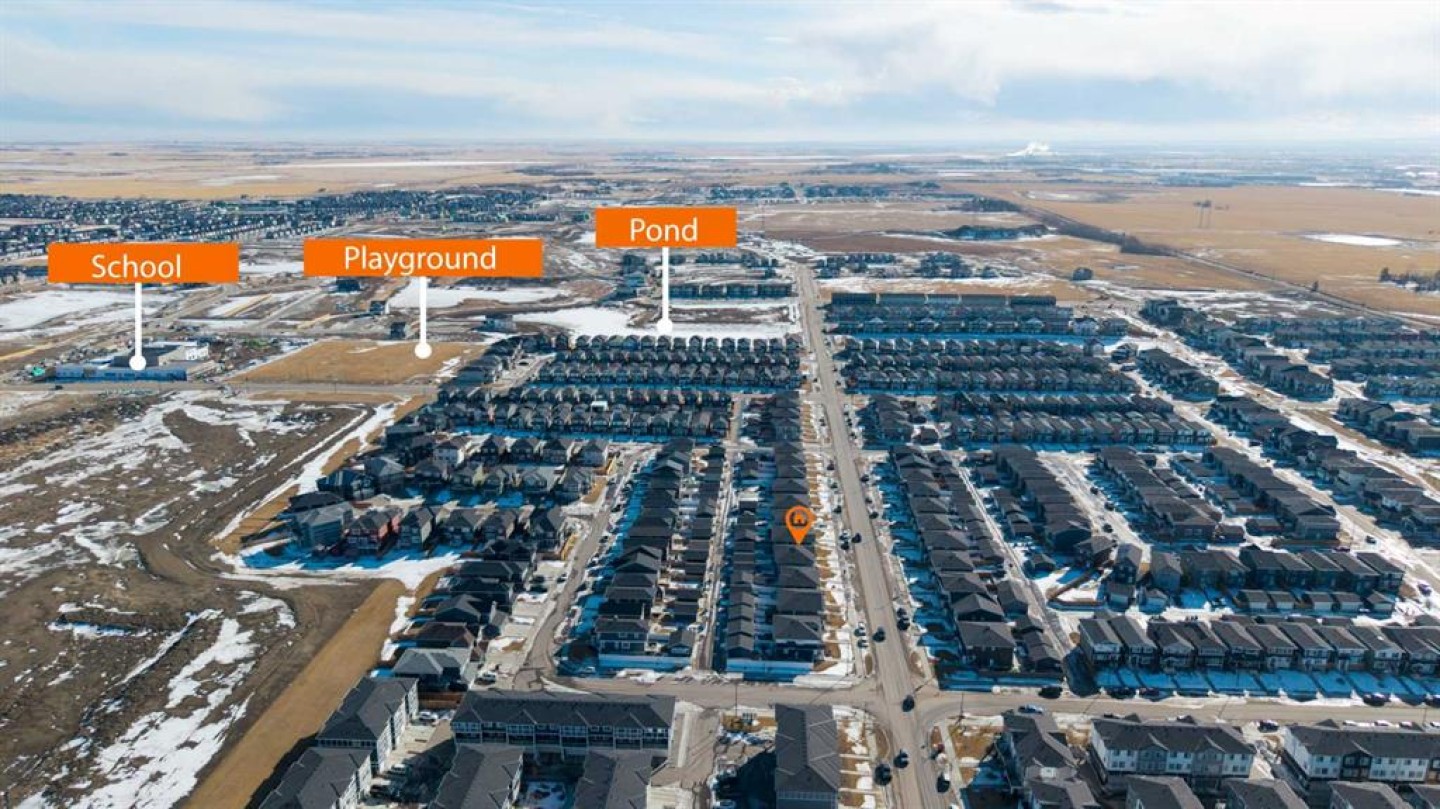 Welcome home to this stunning duplex with oversized detached GARAGE and covered large covered deck that perfectly blends modern elegance with functional design. This beautifully crafted home offers approximately 1,700 sq. ft. of living space perfectly blending comfort, style, and functionality. Built in 2022, this property is ideal for families looking for modern finishes and a thoughtfully designed layout. The main floor features an open-concept design with a spacious living and dining area. The stunning kitchen includes quartz countertops, a gas range, dual sink with a window, ample cabinetry, and a walk-in pantry. A custom-built bar adds a unique touch, making it perfect for entertaining. A convenient half bathroom completes the main level. Upstairs, you’ll find three bedrooms and two full bathrooms, including a luxurious primary suite featuring a tray ceiling, 5-piece ensuite with elegant ceramic tile and 10 mm glass shower. The bathrooms also include full-height mirrors for a sleek and modern look. Two additional bedrooms share another beautifully finished full bathroom with ceramic tile. A conveniently located laundry room, equipped with upgraded front-load washer and dryer, adds both comfort and practicality to your daily routine.Step outside to enjoy a large covered deck, a zero-maintenance backyard, and an oversized detached garage with convenient back alley access, offering plenty of space for parking and storage. The unfinished basement is ready for your creative ideas and features two windows, and a bathroom rough-in, providing excellent potential for future development. Some photos have been virtually staged. Conveniently located just minutes from major amenities, shopping, schools, green spaces, and Chestermere Lake, this home offers the perfect balance of suburban comfort and urban convenience. Book your private showing today...