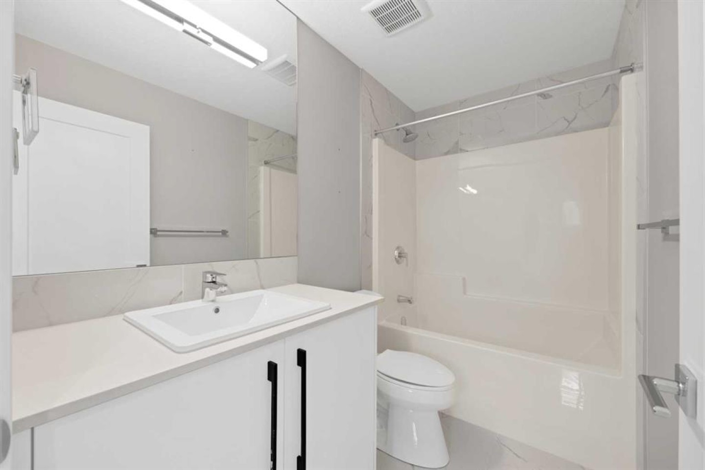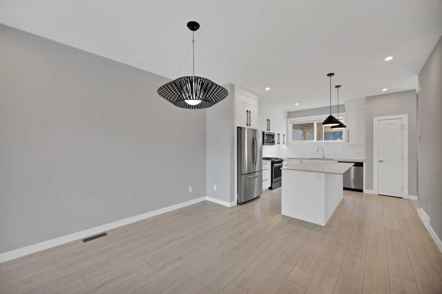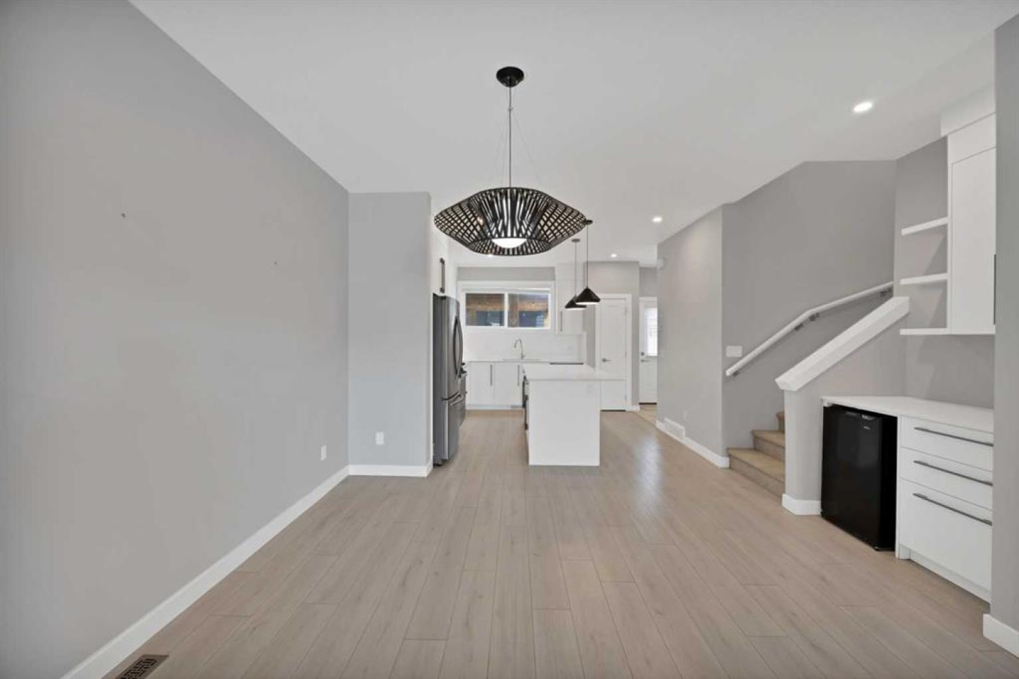Welcome home to this stunning duplex with oversized detached GARAGE and covered large covered deck that perfectly blends modern elegance with functional design. This beautifully crafted home offers approximately 1,700 sq. ft. of living space perfectly blending comfort, style, and functionality. Built in 2022, this property is ideal for families looking for modern finishes and a thoughtfully designed layout. The main floor features an open-concept design with a spacious living and dining area. The stunning kitchen includes quartz countertops, a gas range, dual sink with a window, ample cabinetry, and a walk-in pantry. A custom-built bar adds a unique touch, making it perfect for entertaining. A convenient half bathroom completes the main level. Upstairs, you’ll find three bedrooms and two full bathrooms, including a luxurious primary suite featuring a tray ceiling, 5-piece ensuite with elegant ceramic tile and 10 mm glass shower. The bathrooms also include full-height mirrors for a sleek and modern look. Two additional bedrooms share another beautifully finished full bathroom with ceramic tile. A conveniently located laundry room, equipped with upgraded front-load washer and dryer, adds both comfort and practicality to your daily routine.Step outside to enjoy a large covered deck, a zero-maintenance backyard, and an oversized detached garage with convenient back alley access, offering plenty of space for parking and storage. The unfinished basement is ready for your creative ideas and features two windows, and a bathroom rough-in, providing excellent potential for future development. Some photos have been virtually staged. Conveniently located just minutes from major amenities, shopping, schools, green spaces, and Chestermere Lake, this home offers the perfect balance of suburban comfort and urban convenience. Book your private showing today...
